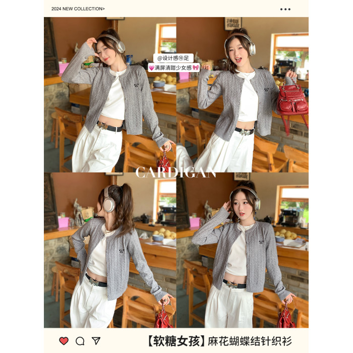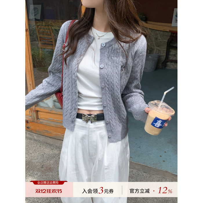 蘇三三 灰色麻花毛衣開衫外套女秋天穿搭2025新款早秋氛圍感上衣