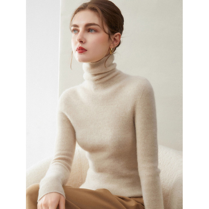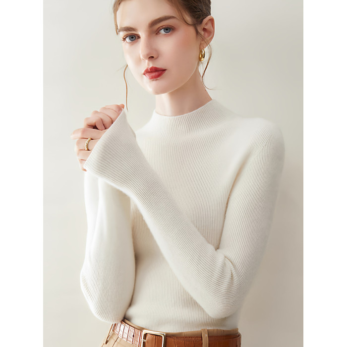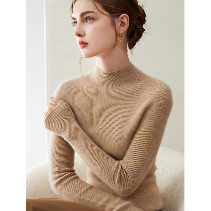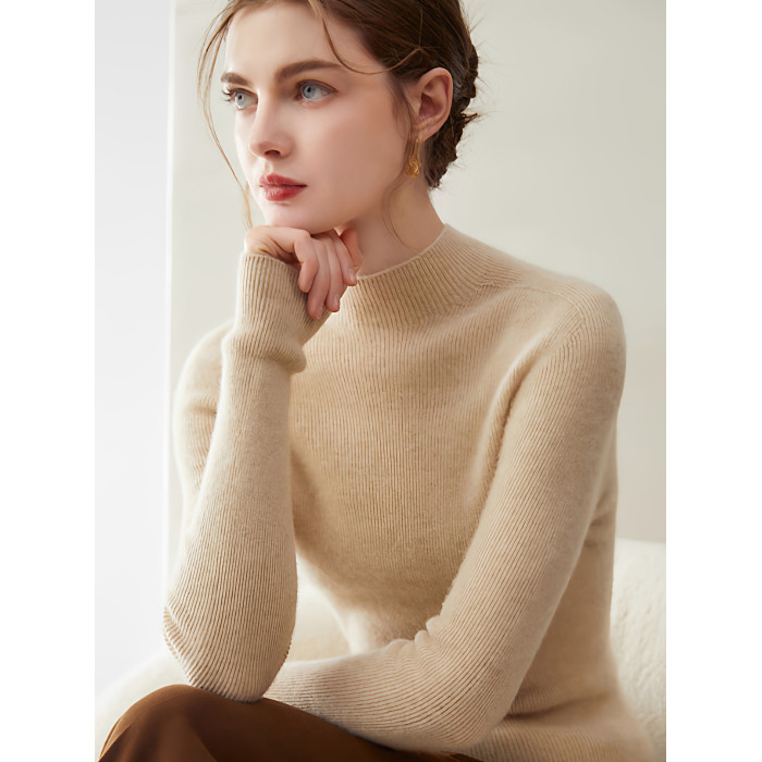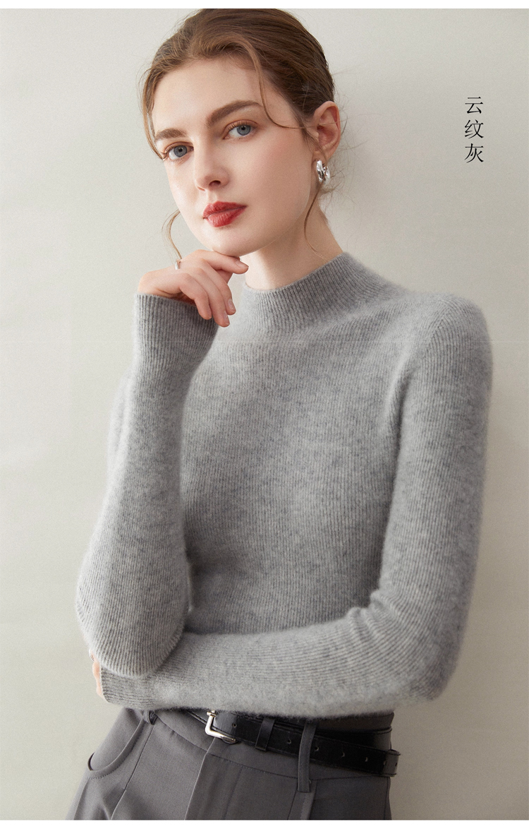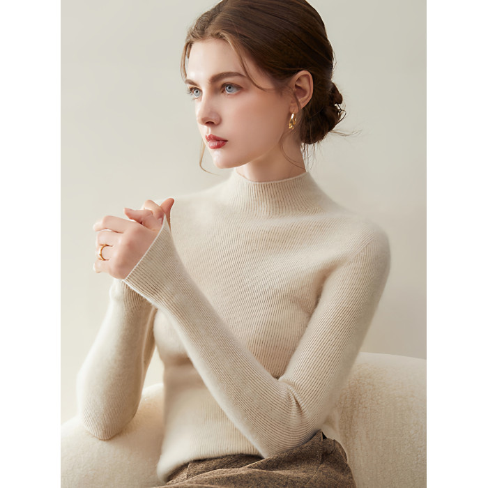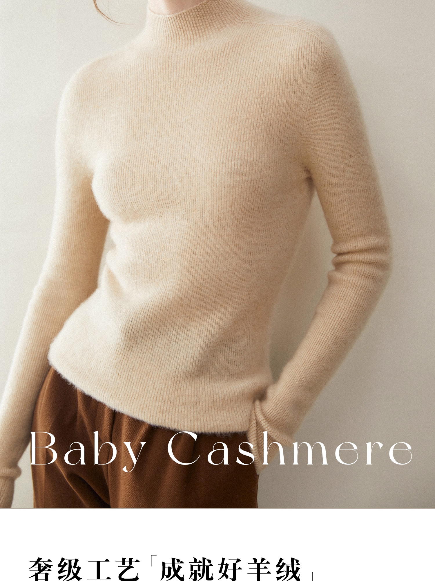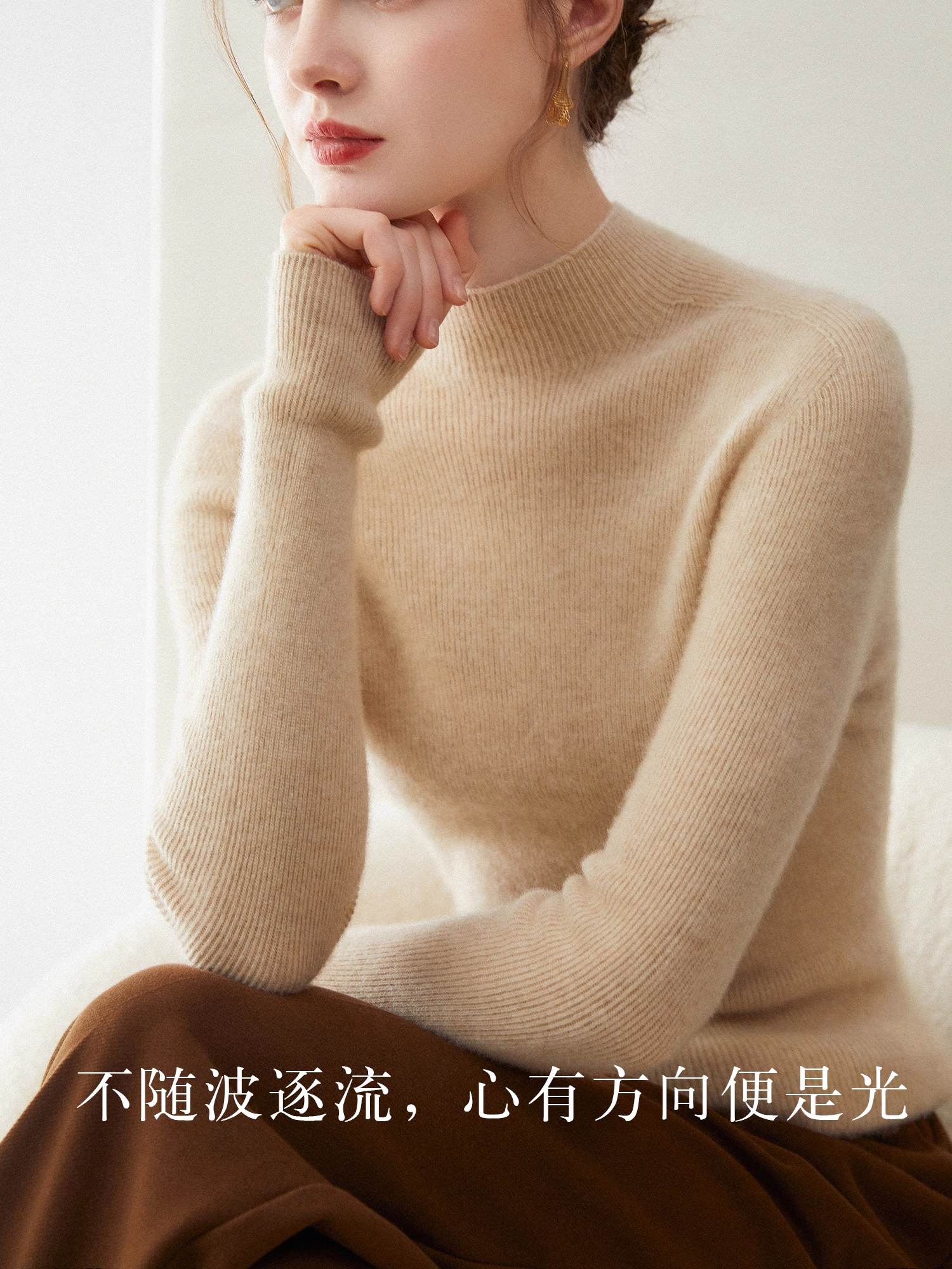 無縫一線成衣 100純山羊絨打底衫女半高領針織羊毛衫修身毛衣內搭