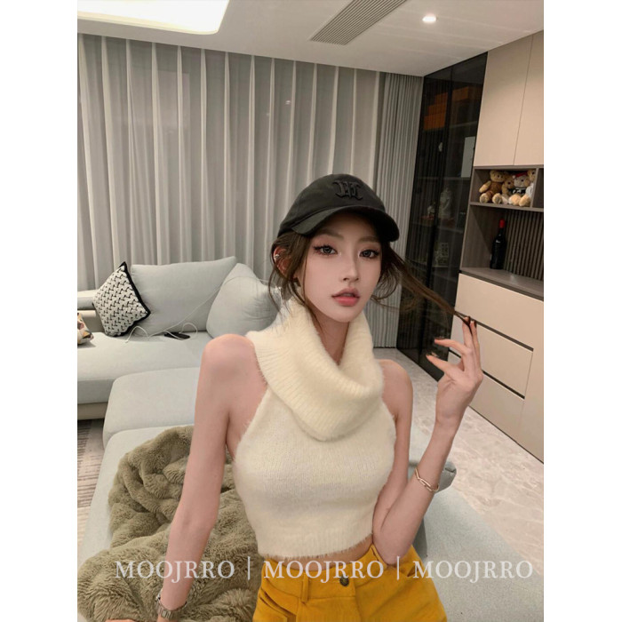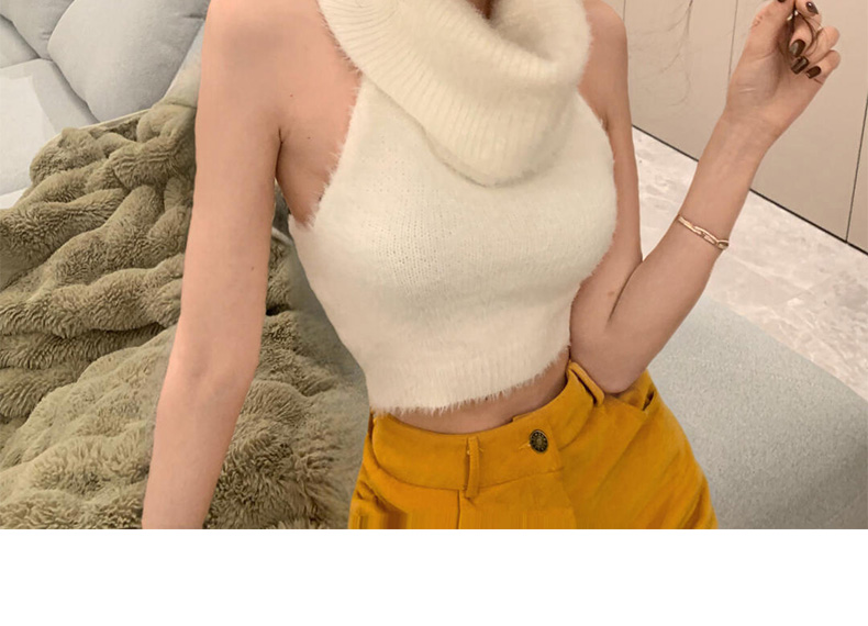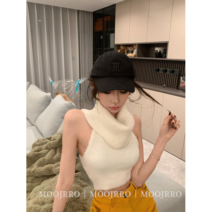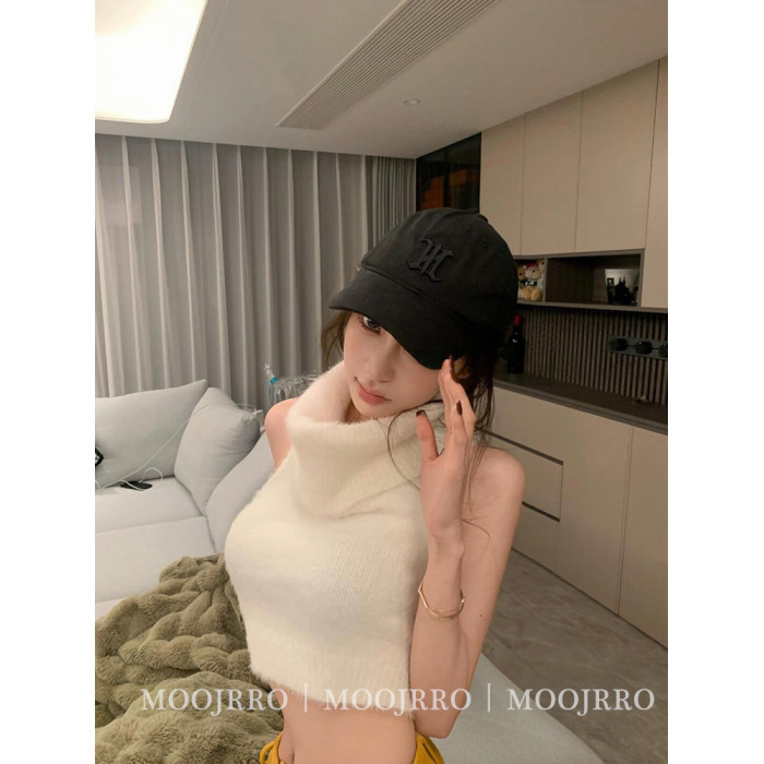 白色馬海毛高領無袖背心毛衣女秋冬季修身短款內搭打底套頭針織衫