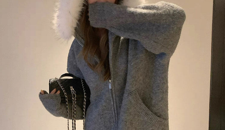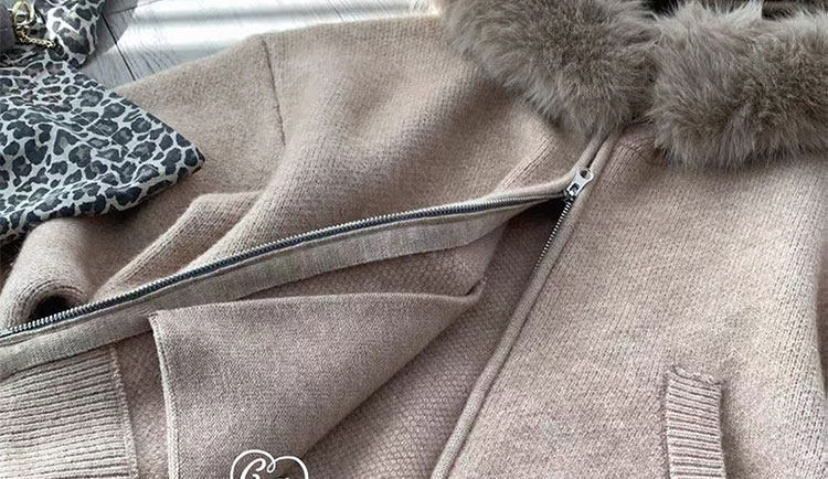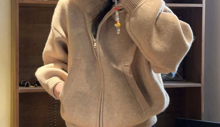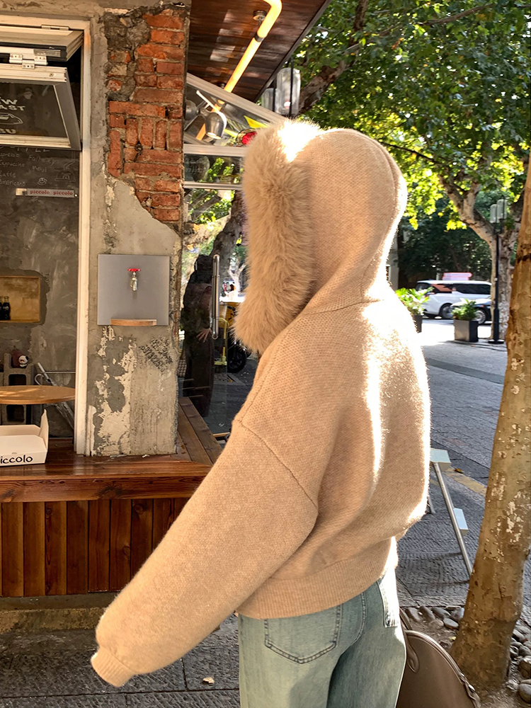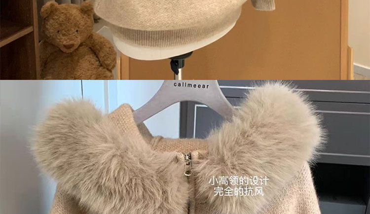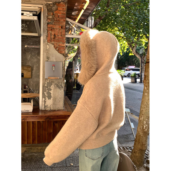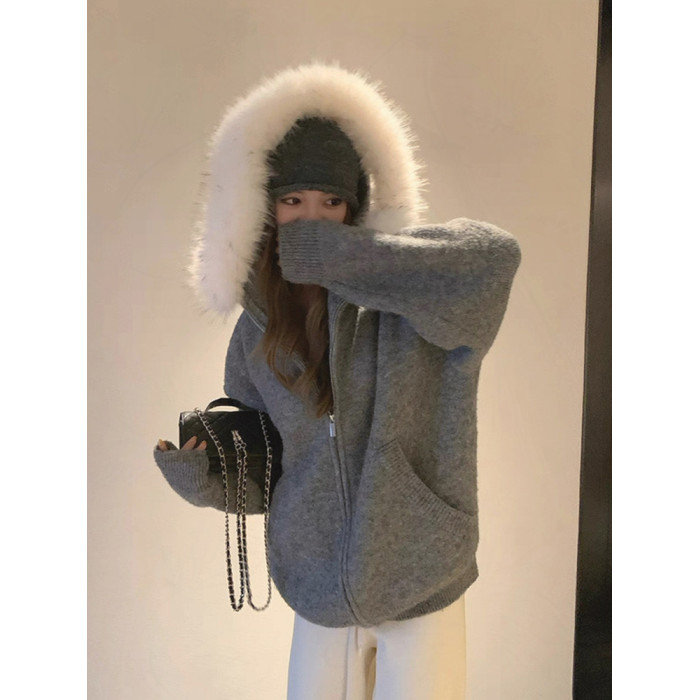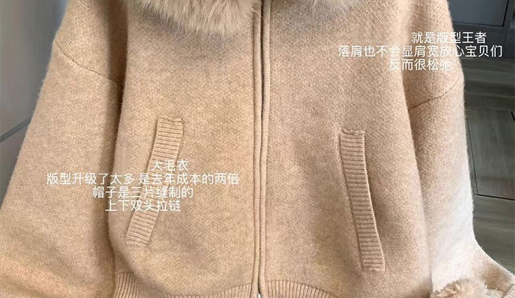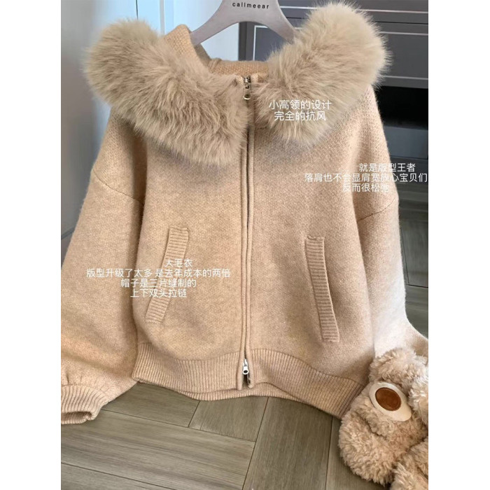 毛領寬松連帽針織開衫軟糯毛衣外套女秋冬可拆卸顯瘦韓系加厚上衣