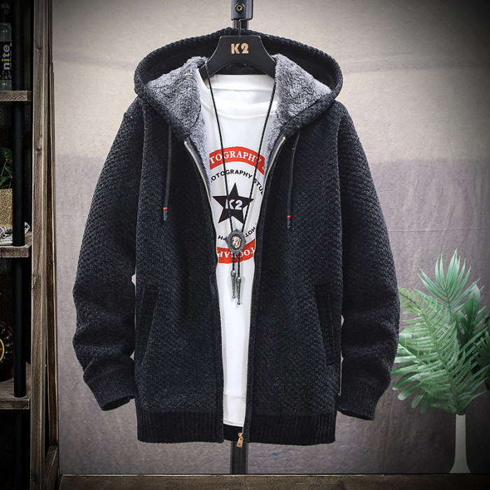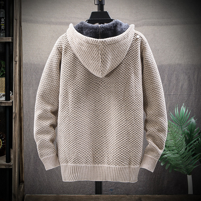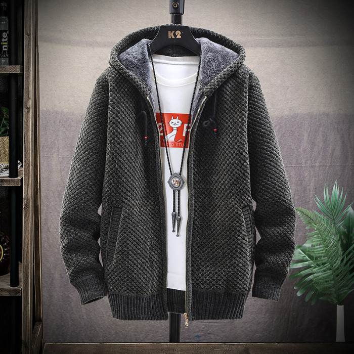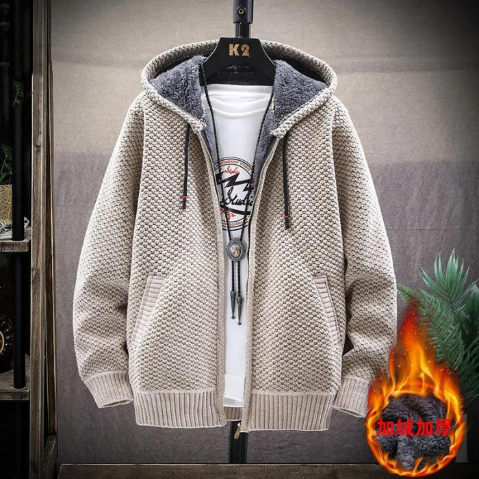 外套男士秋冬季保暖加絨加厚針織衫開衫毛衣潮流時尚線衫寬松大碼