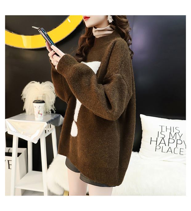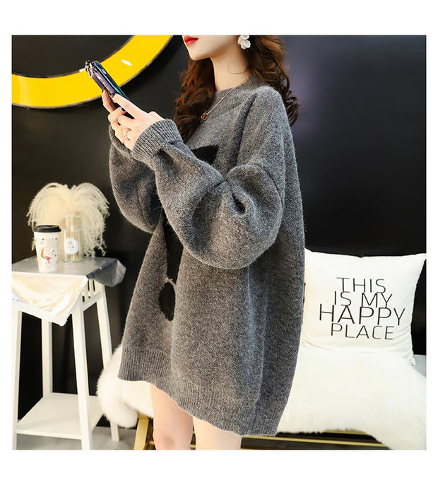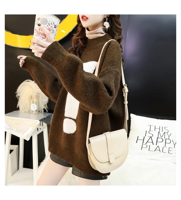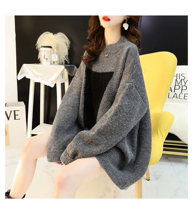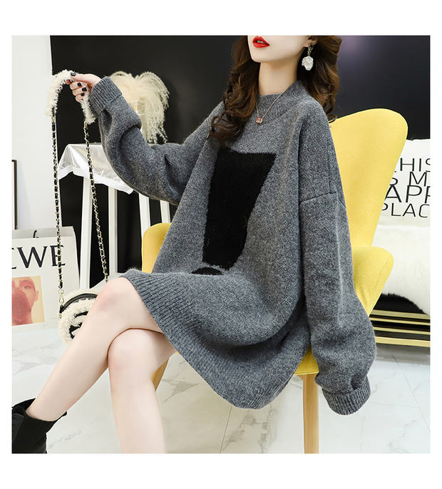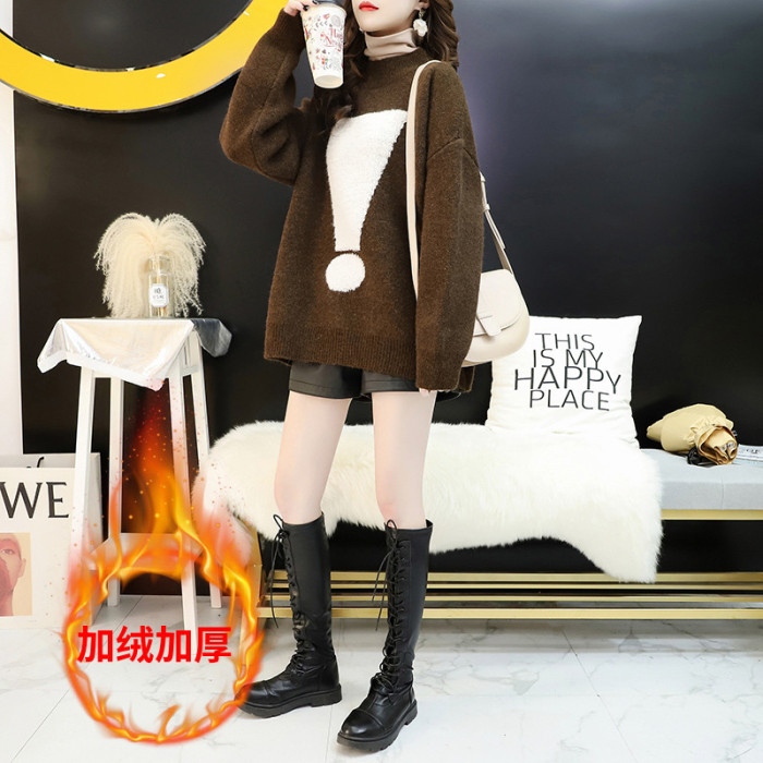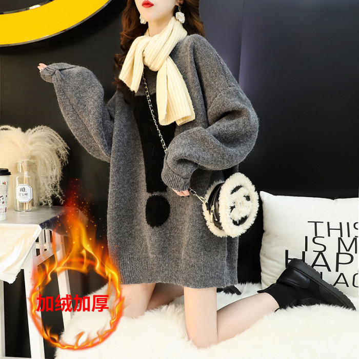 秋冬新款2025中長款毛衣女韓版寬松慵懶風加絨加厚針織衫打底上衣