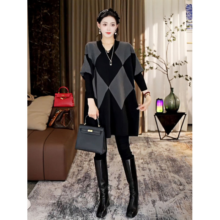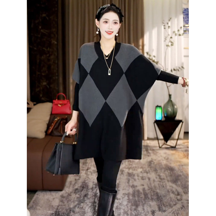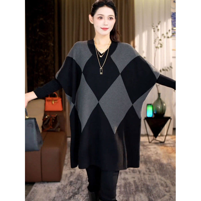 高級感寬松洋氣毛衣女2025秋冬新款時尚大碼中長款遮肉針織衫上衣