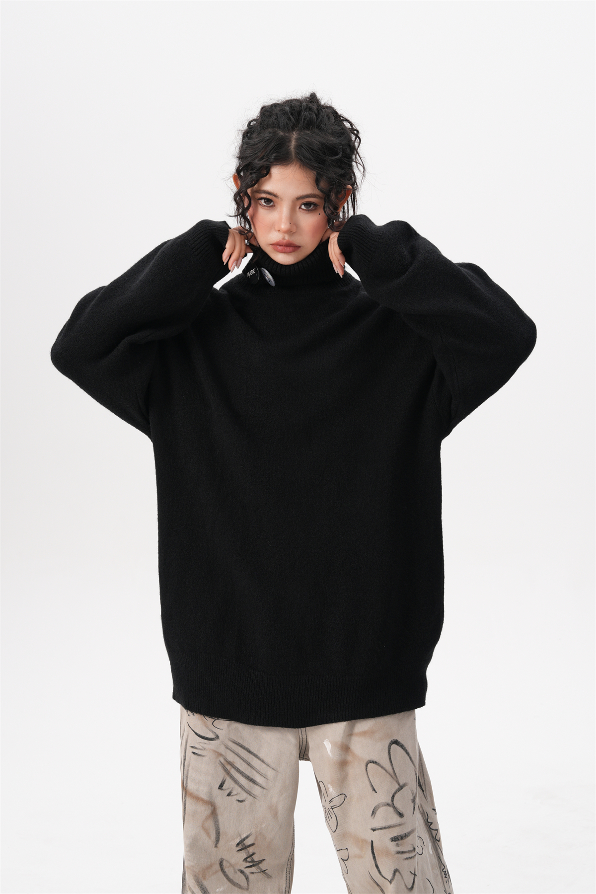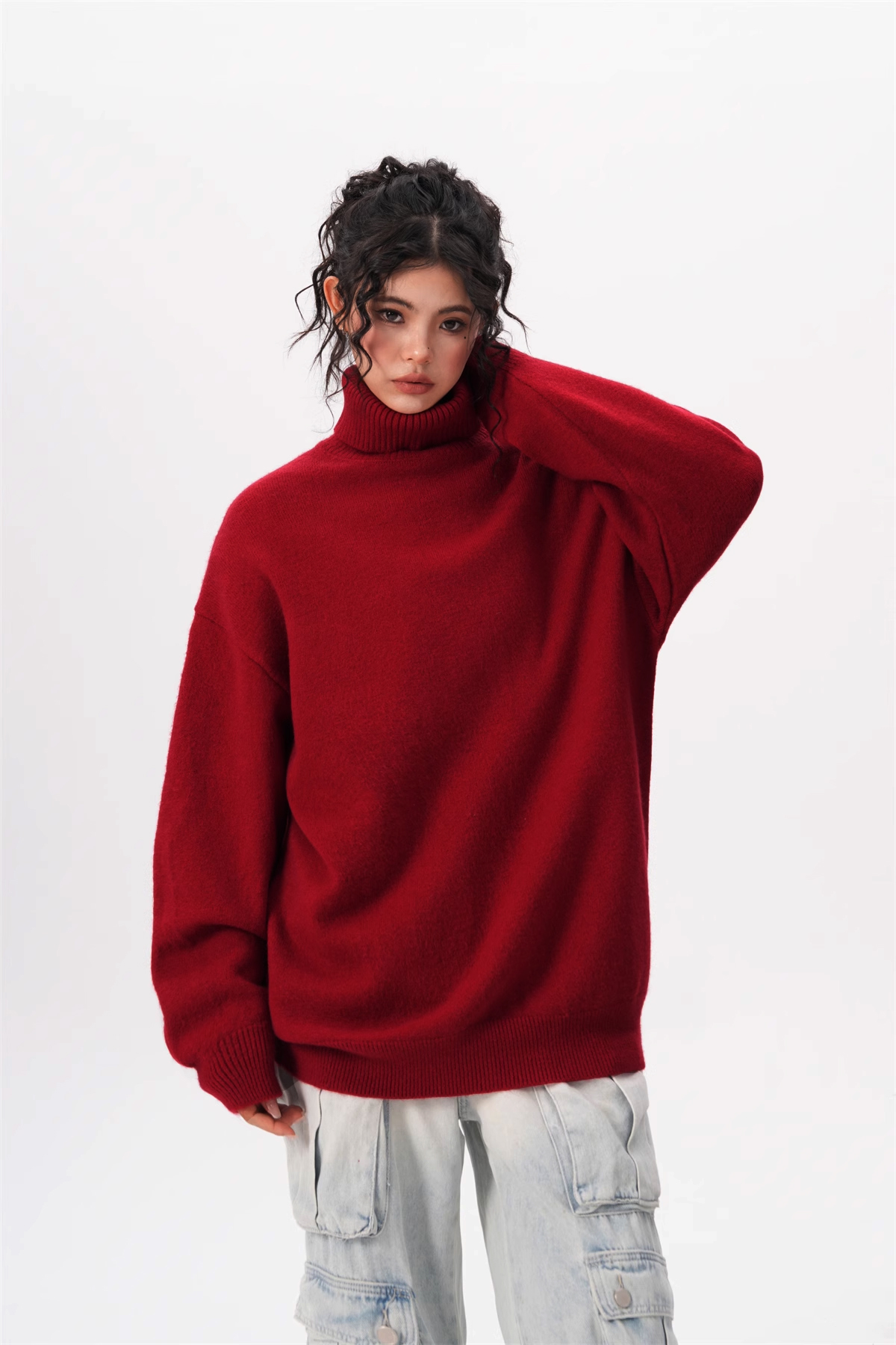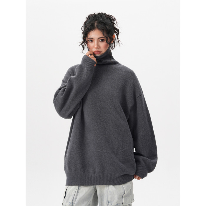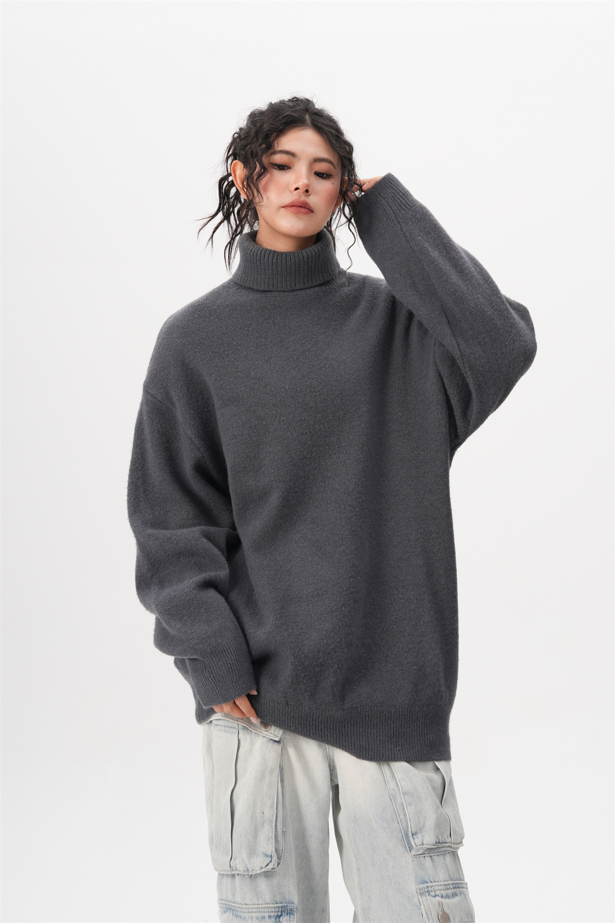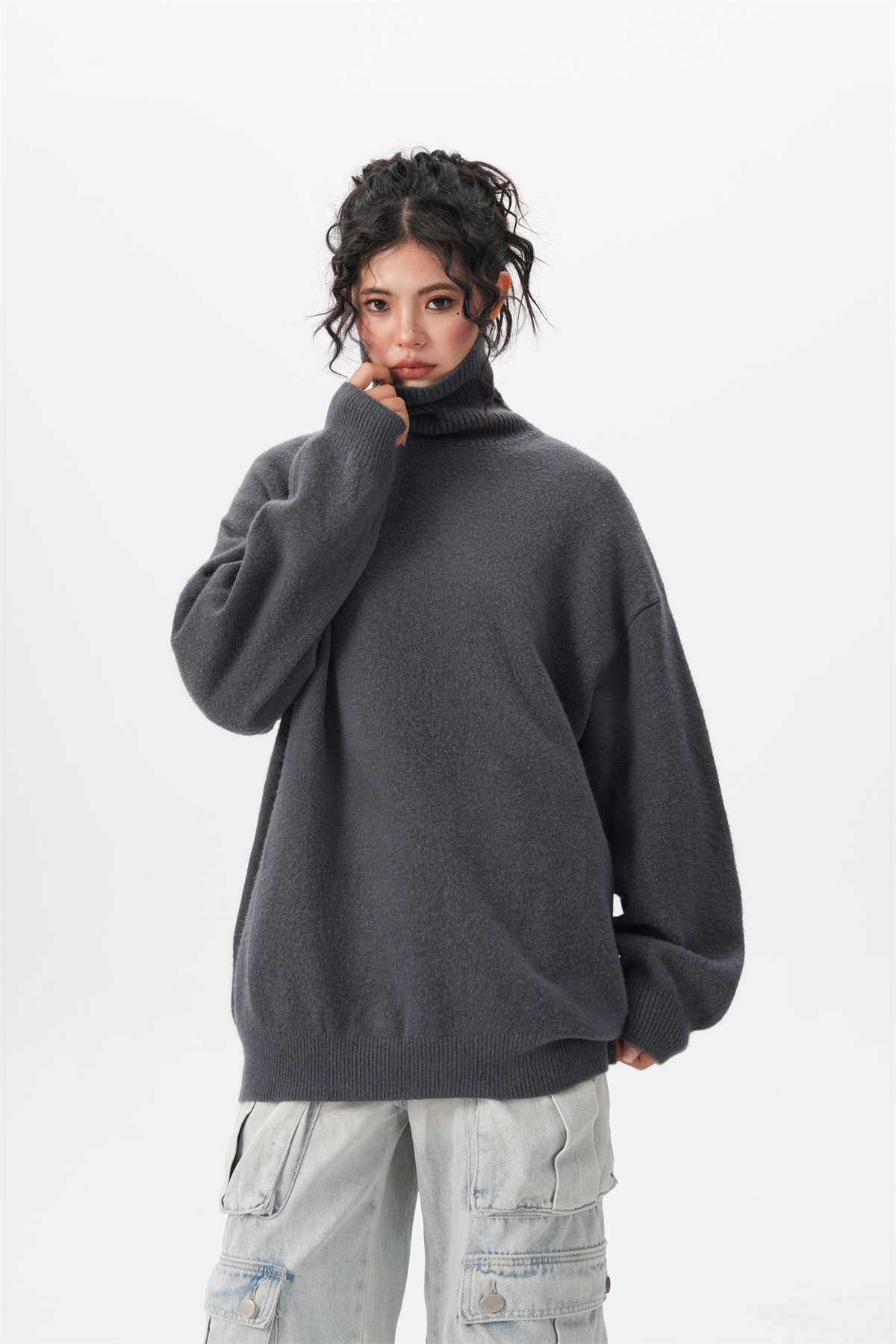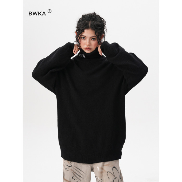 BWKA高領毛衣女男秋冬重磅潮牌寬松慵懶風針織衫加絨加厚內搭線衣