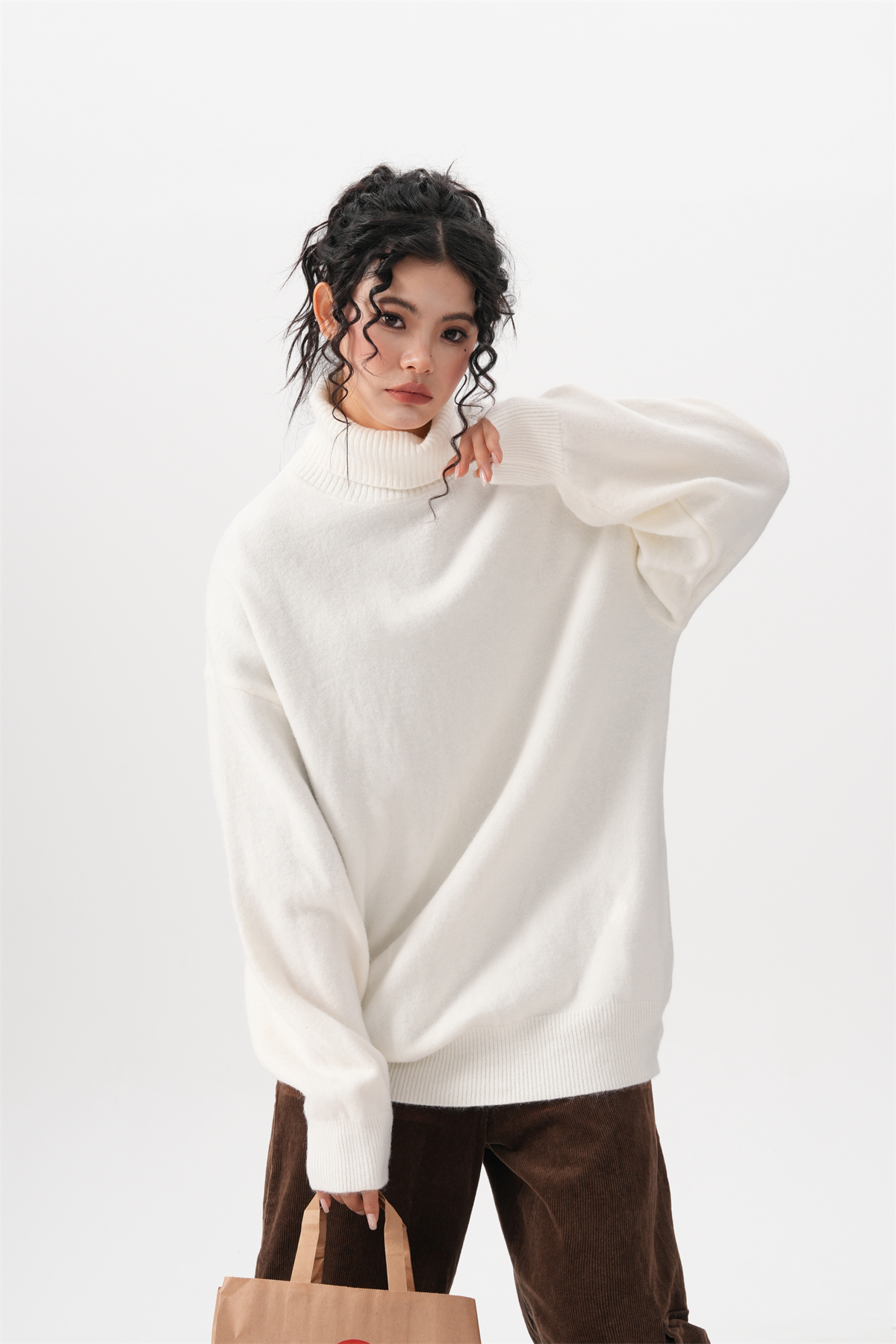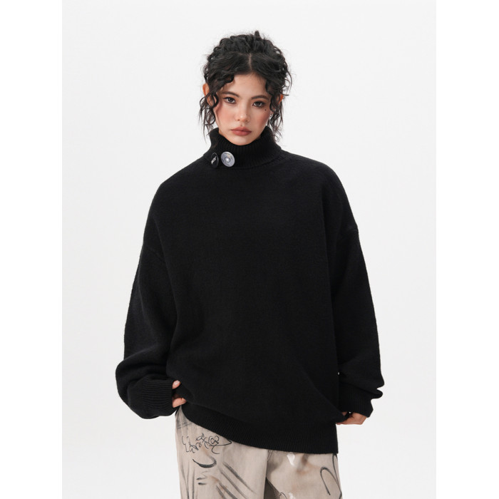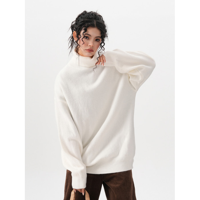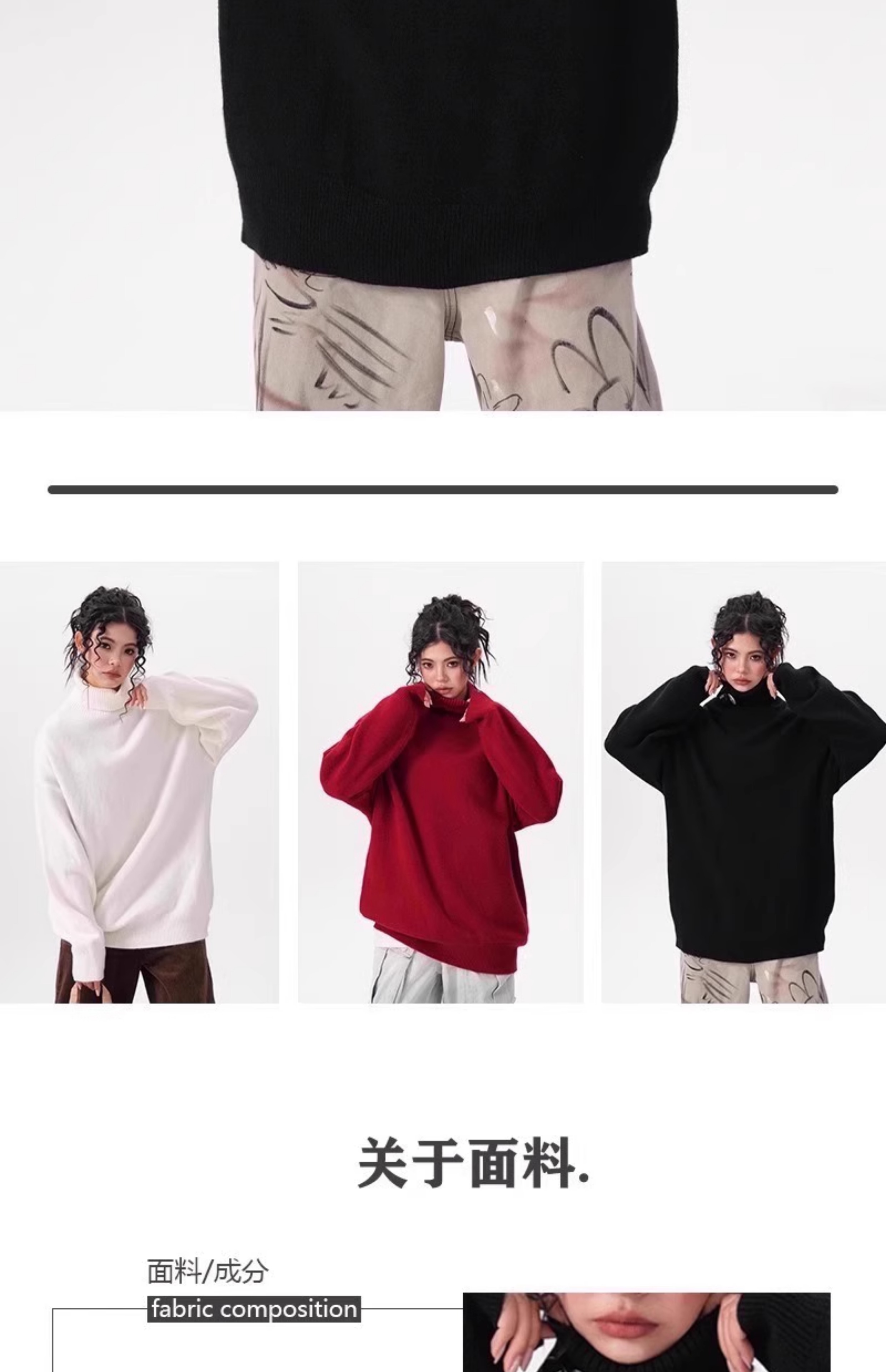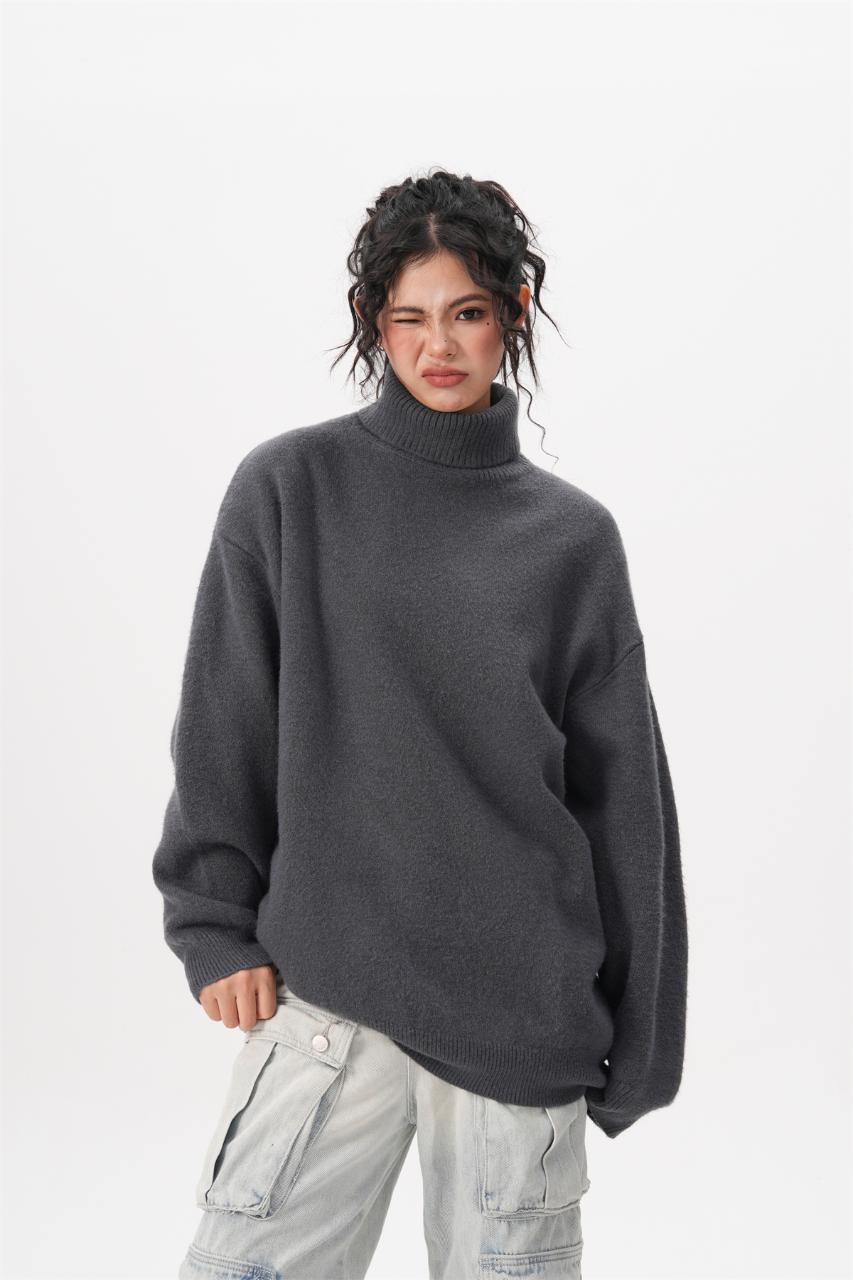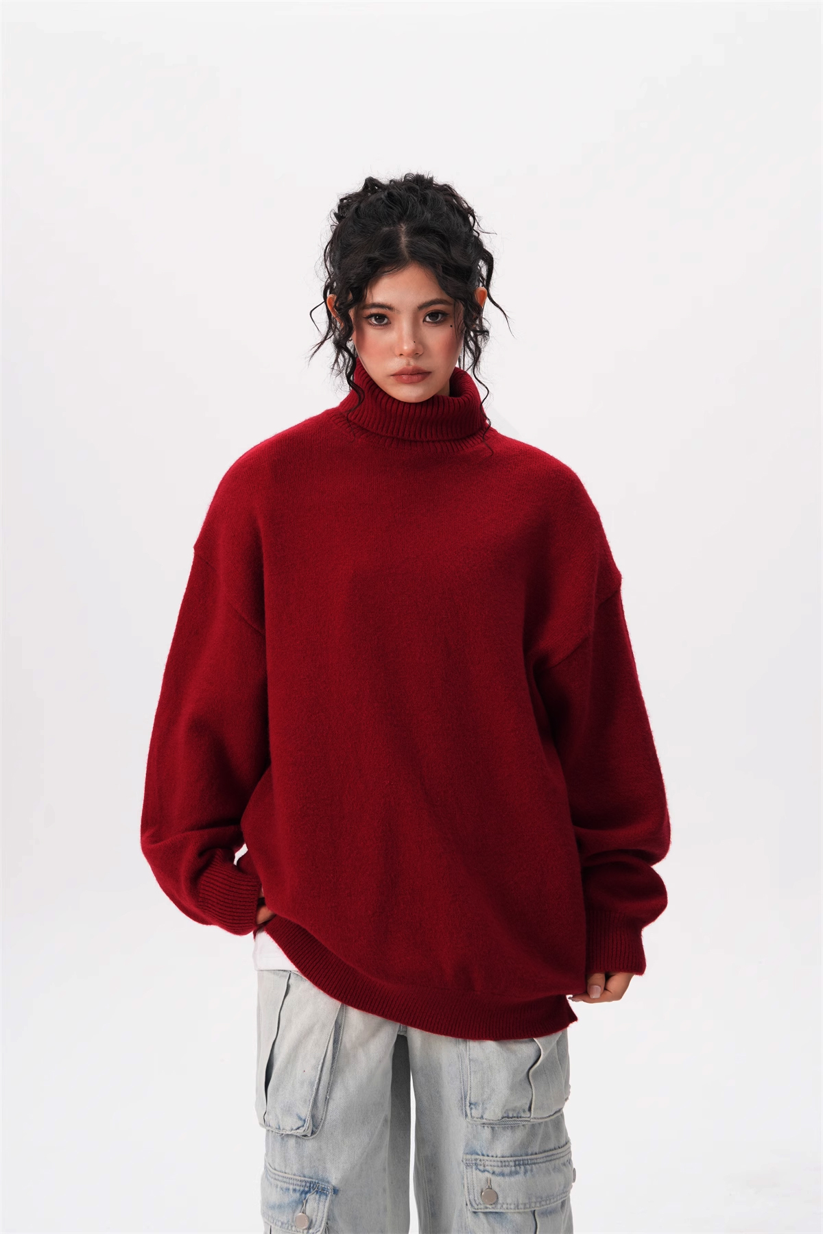 BWKA高領毛衣女男秋冬重磅潮牌寬松慵懶風針織衫加絨加厚內搭線衣