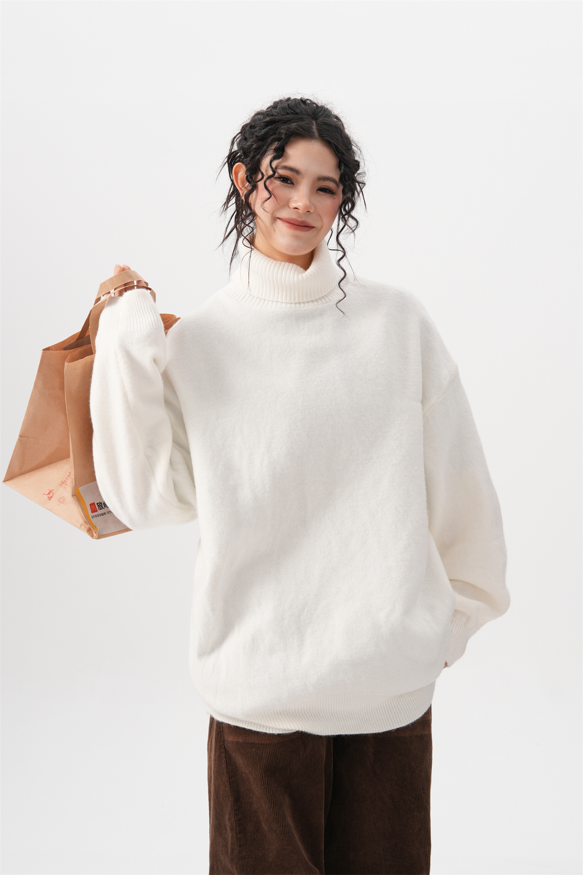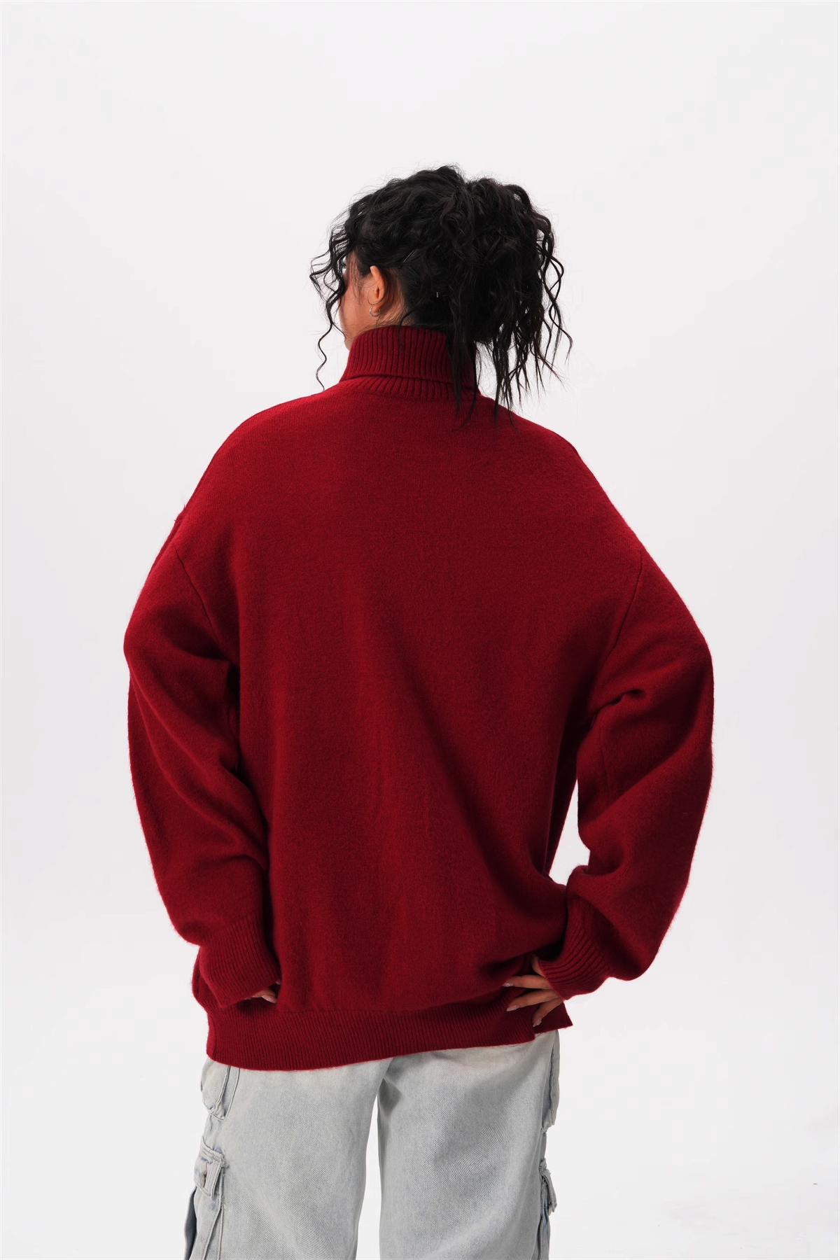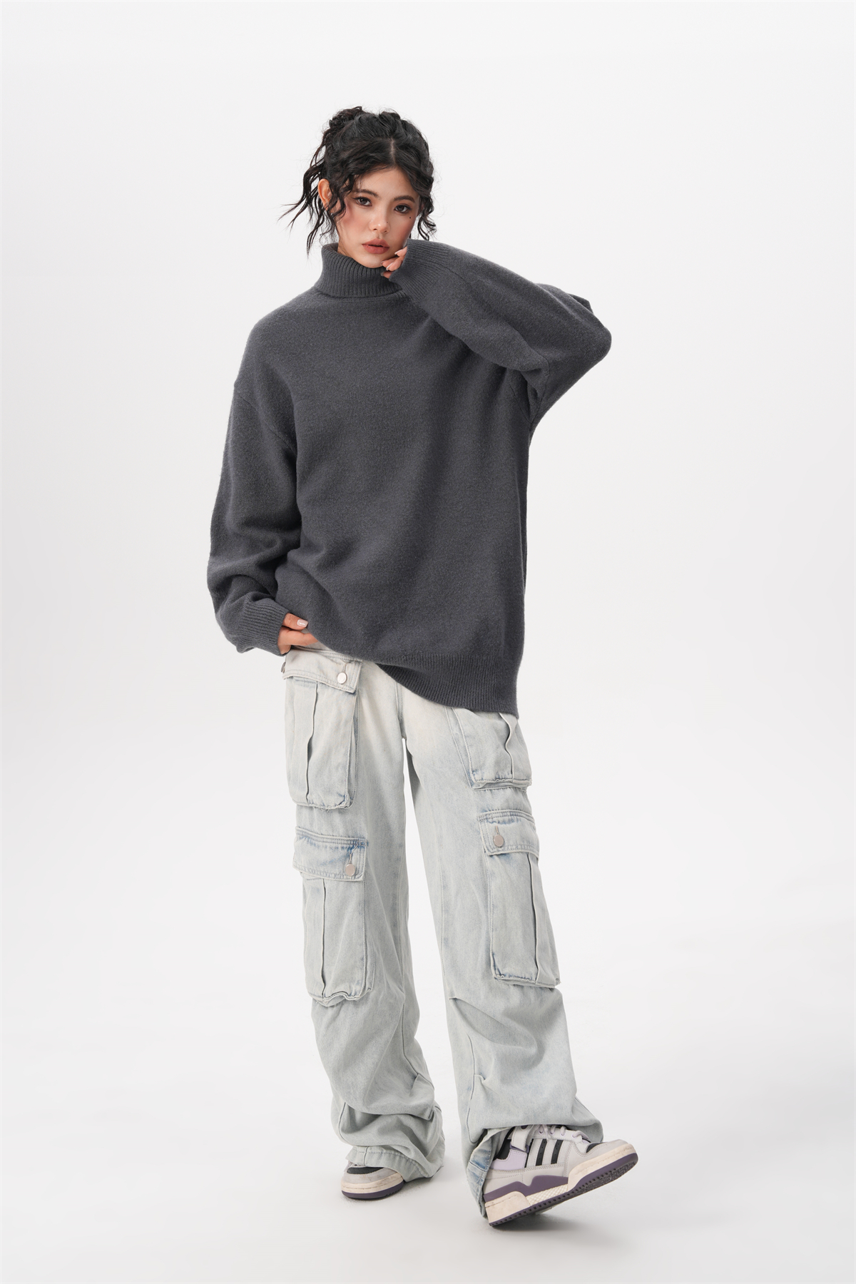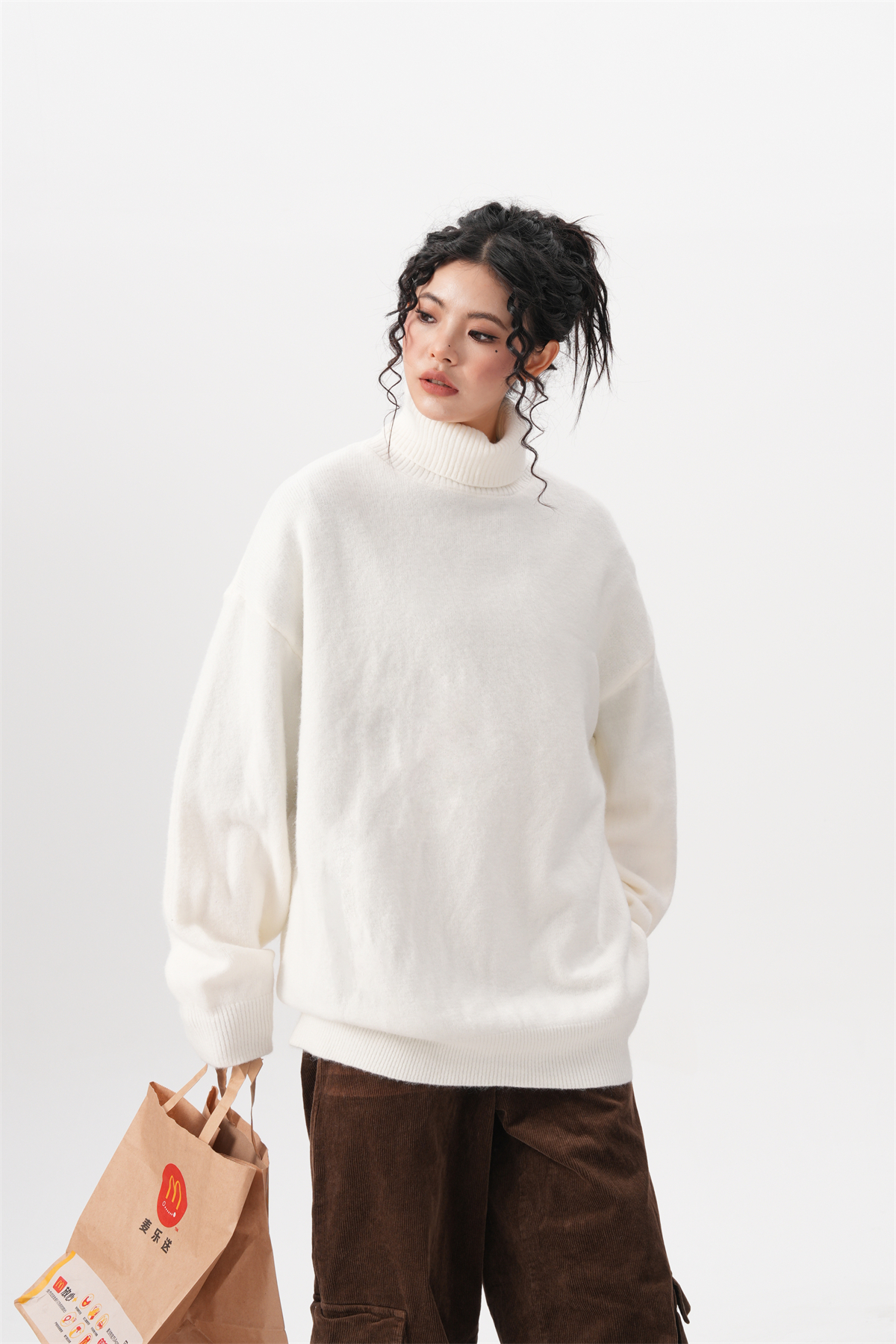 BWKA高領毛衣女男秋冬重磅潮牌寬松慵懶風針織衫加絨加厚內搭線衣