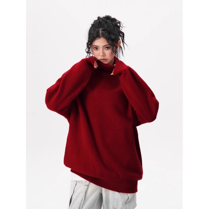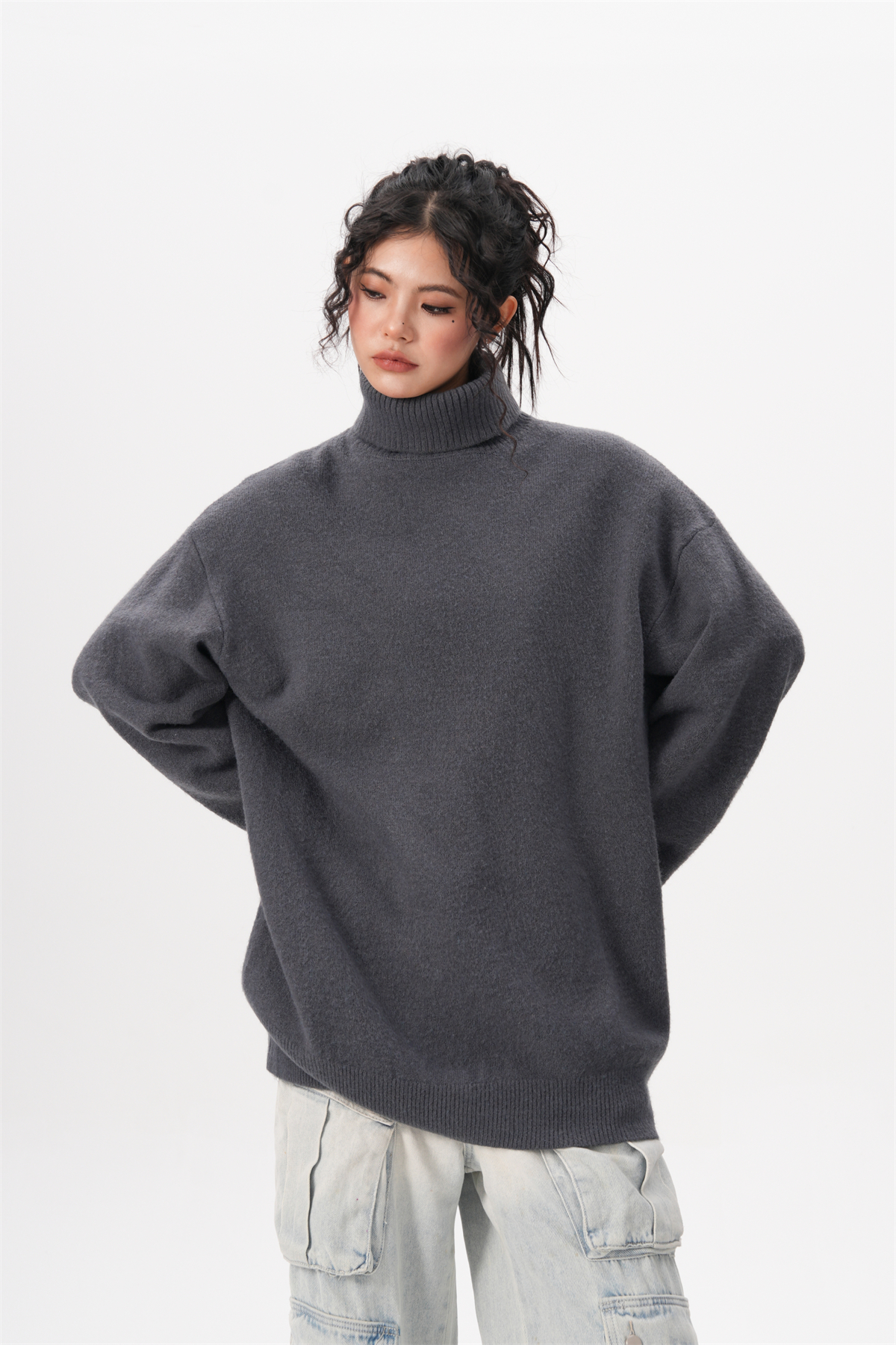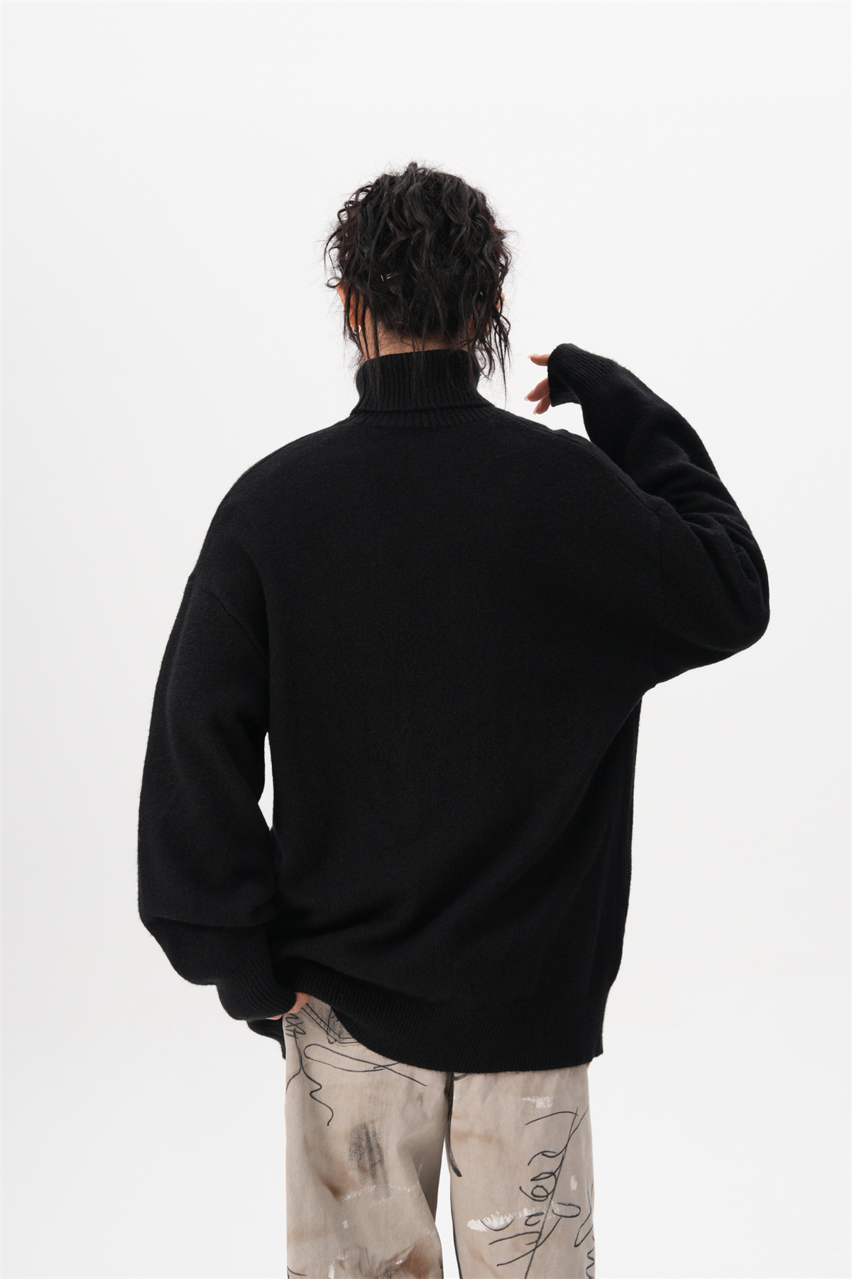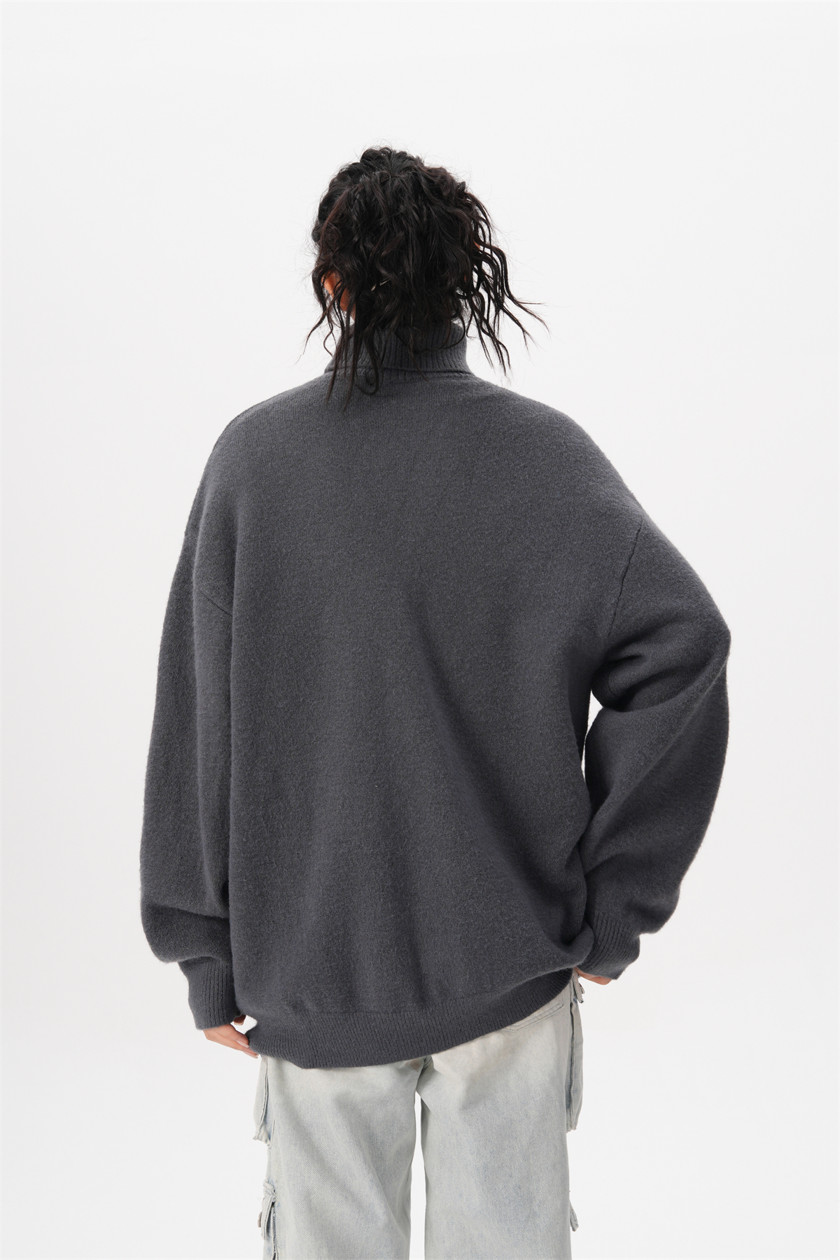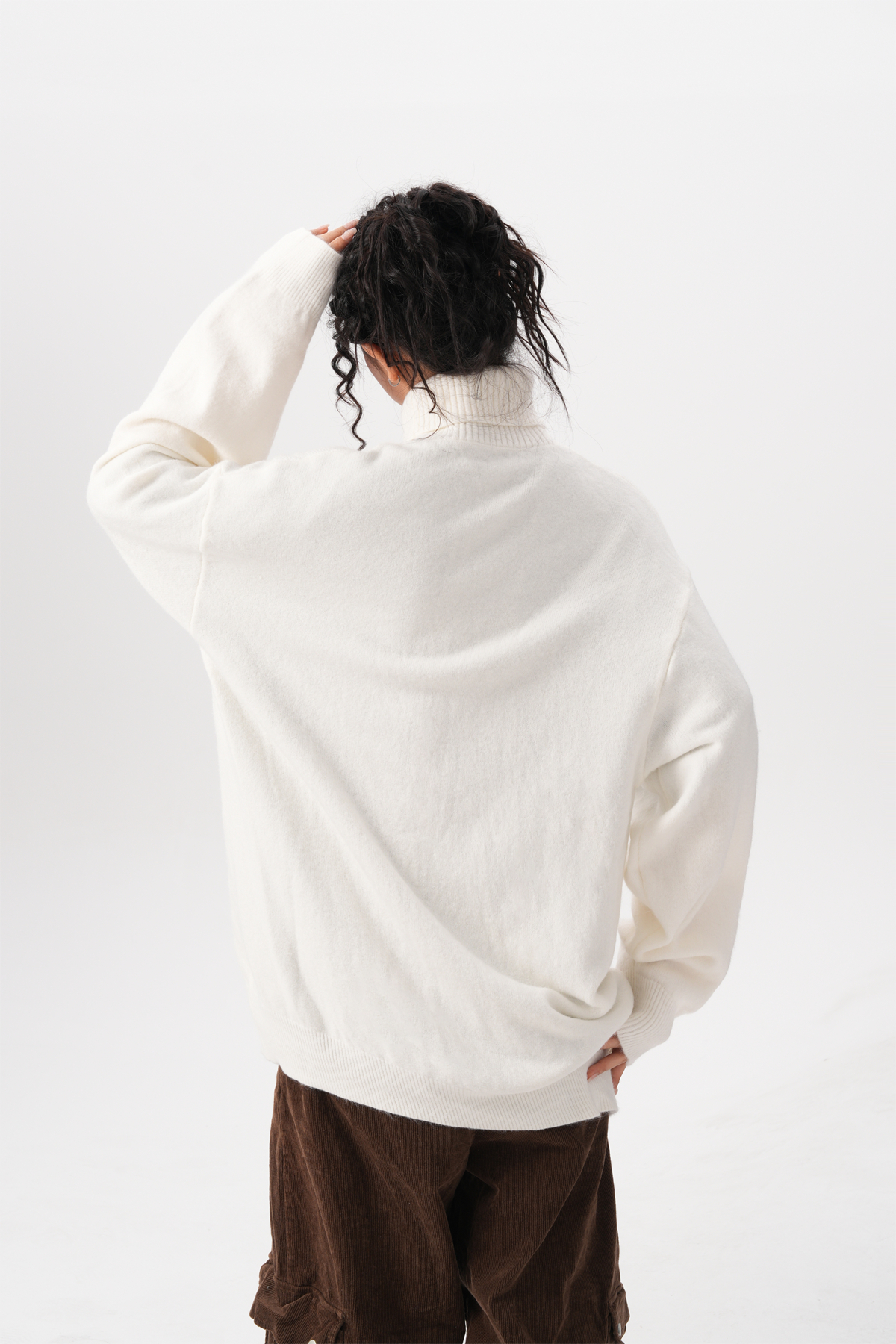 BWKA高領毛衣女男秋冬重磅潮牌寬松慵懶風針織衫加絨加厚內搭線衣