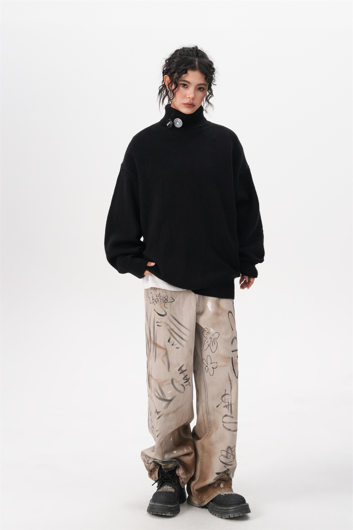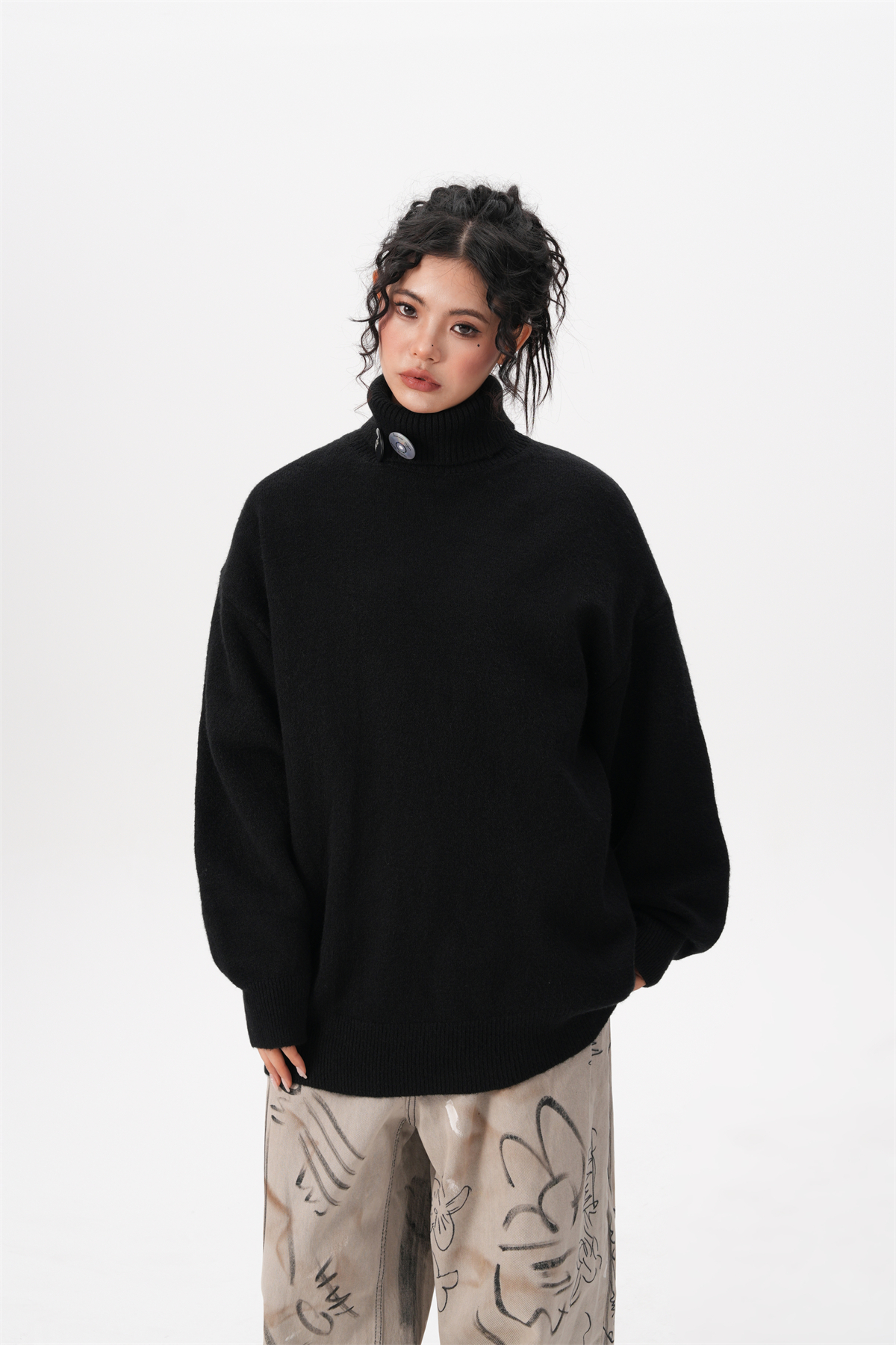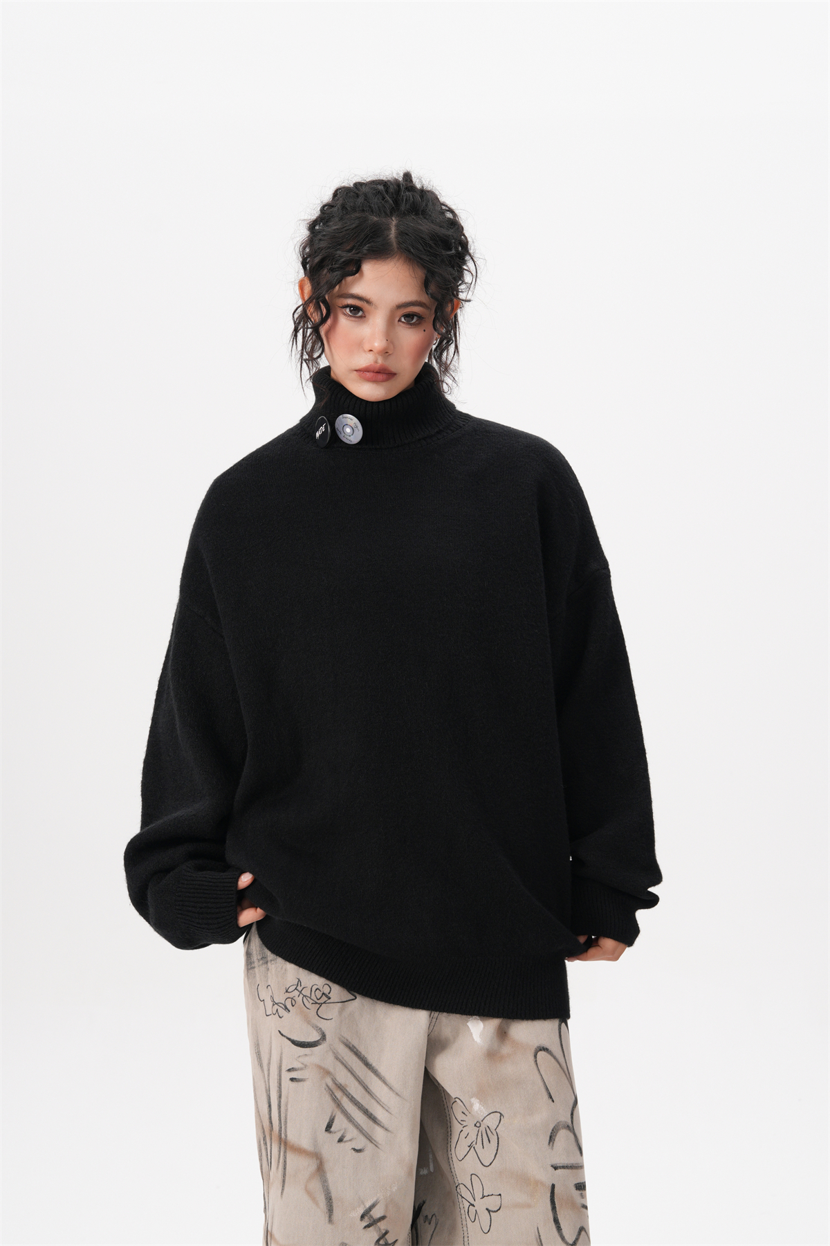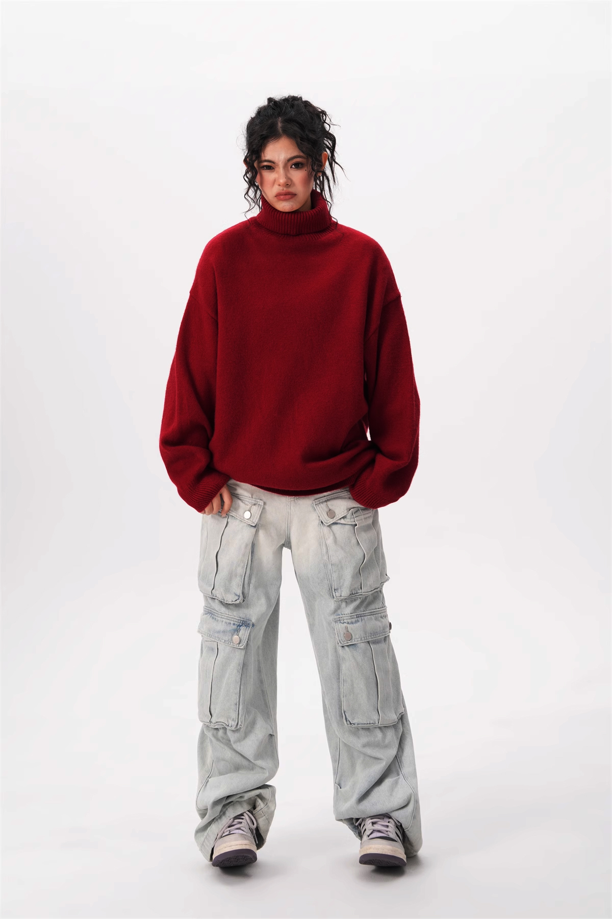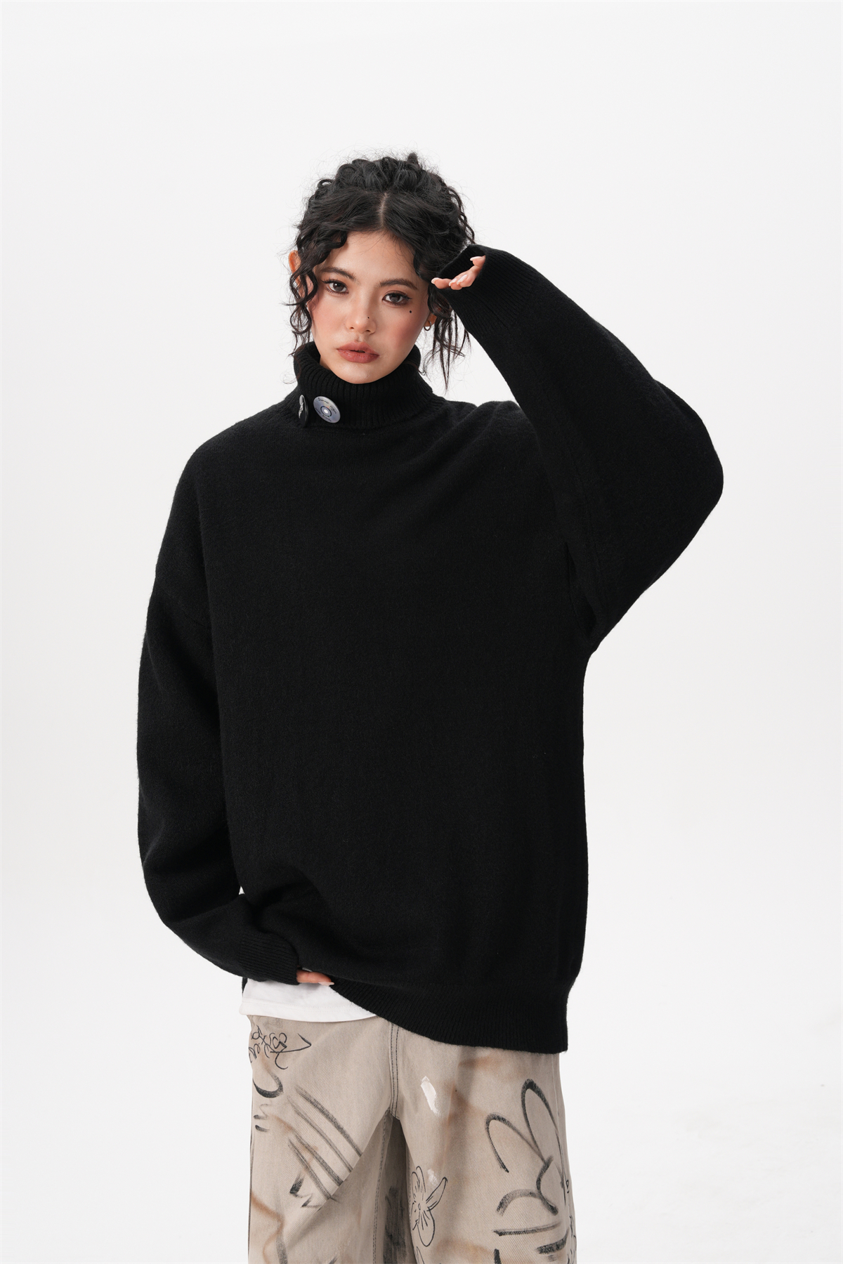 BWKA高領毛衣女男秋冬重磅潮牌寬松慵懶風針織衫加絨加厚內搭線衣