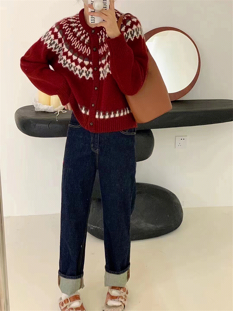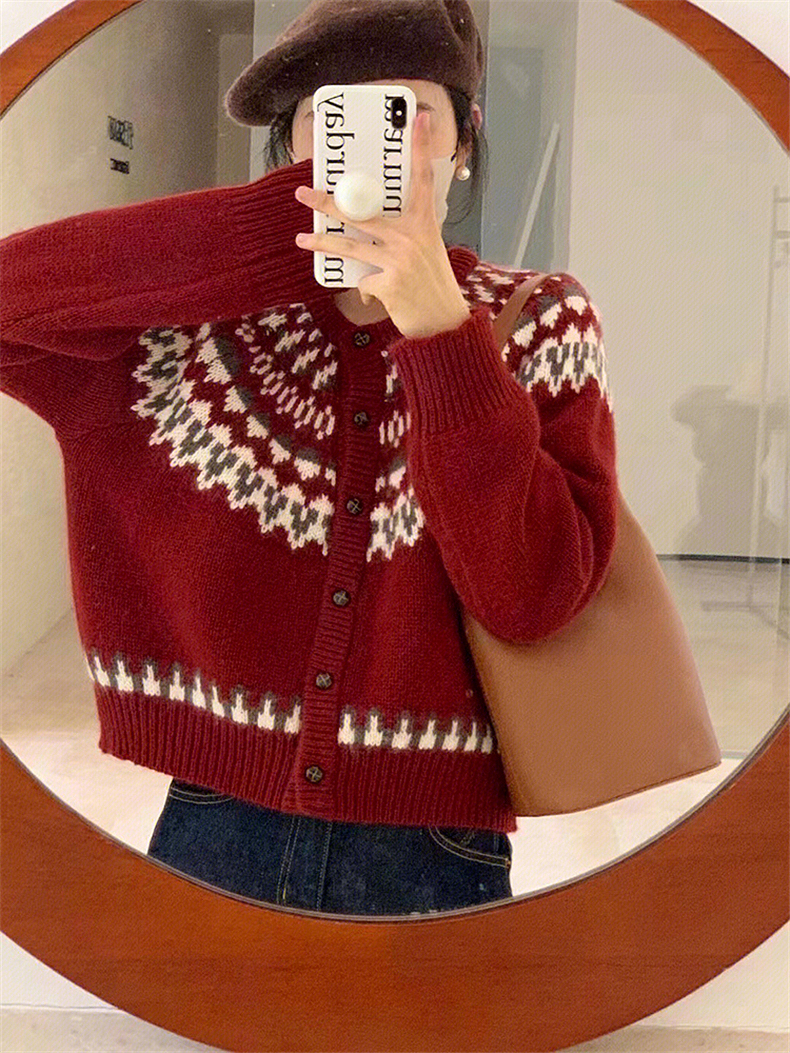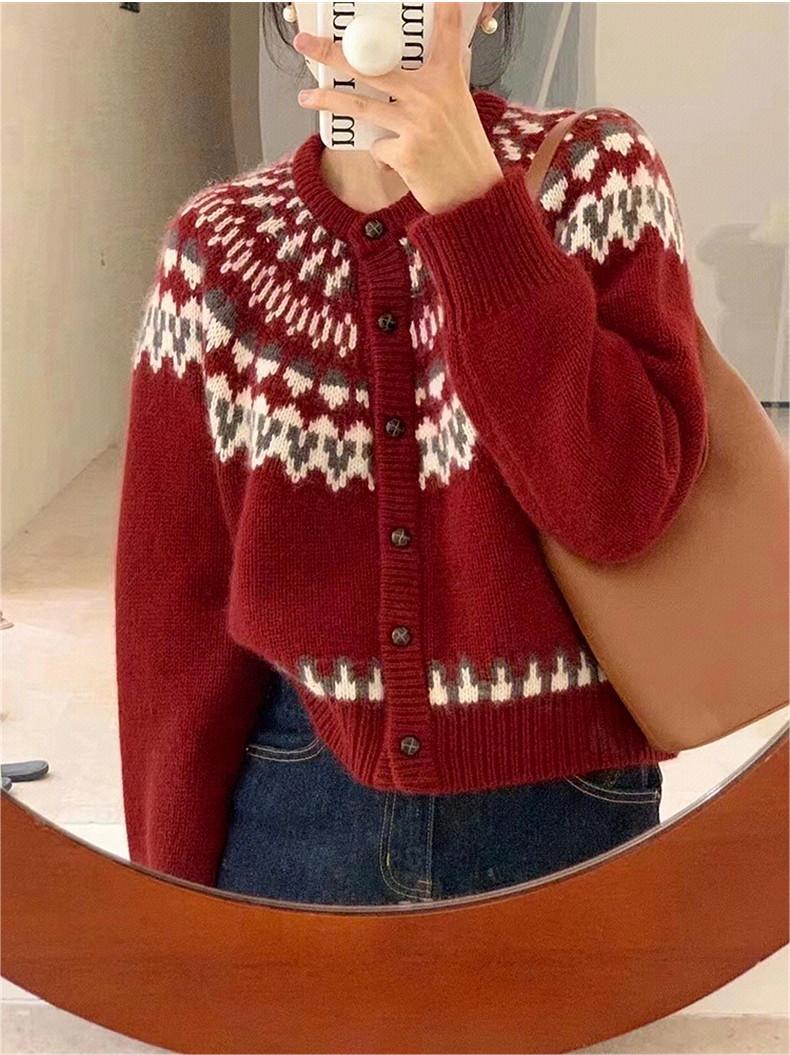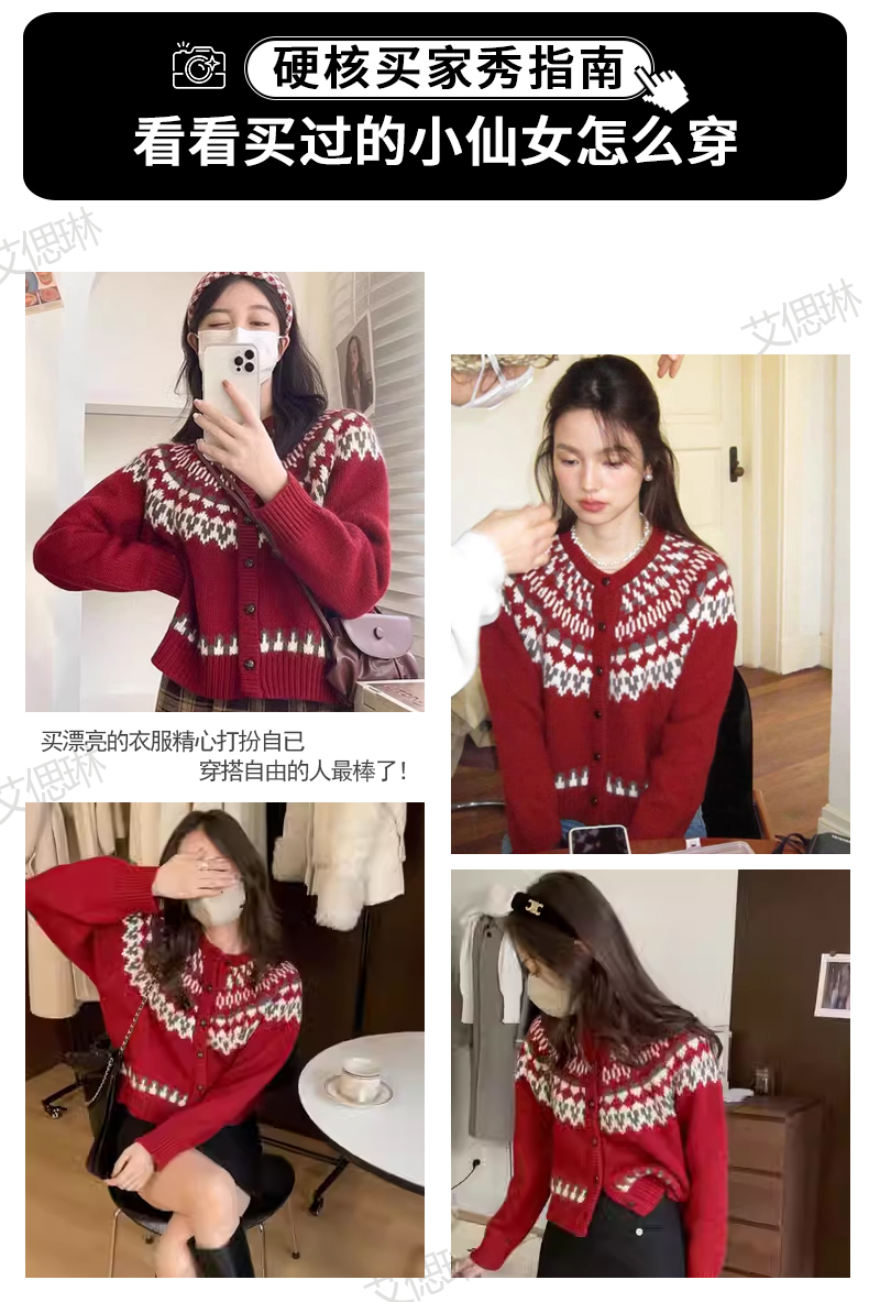 聖誕紅色費爾島毛衣女秋冬小個子慵懶風針織開衫外套2025新款上衣