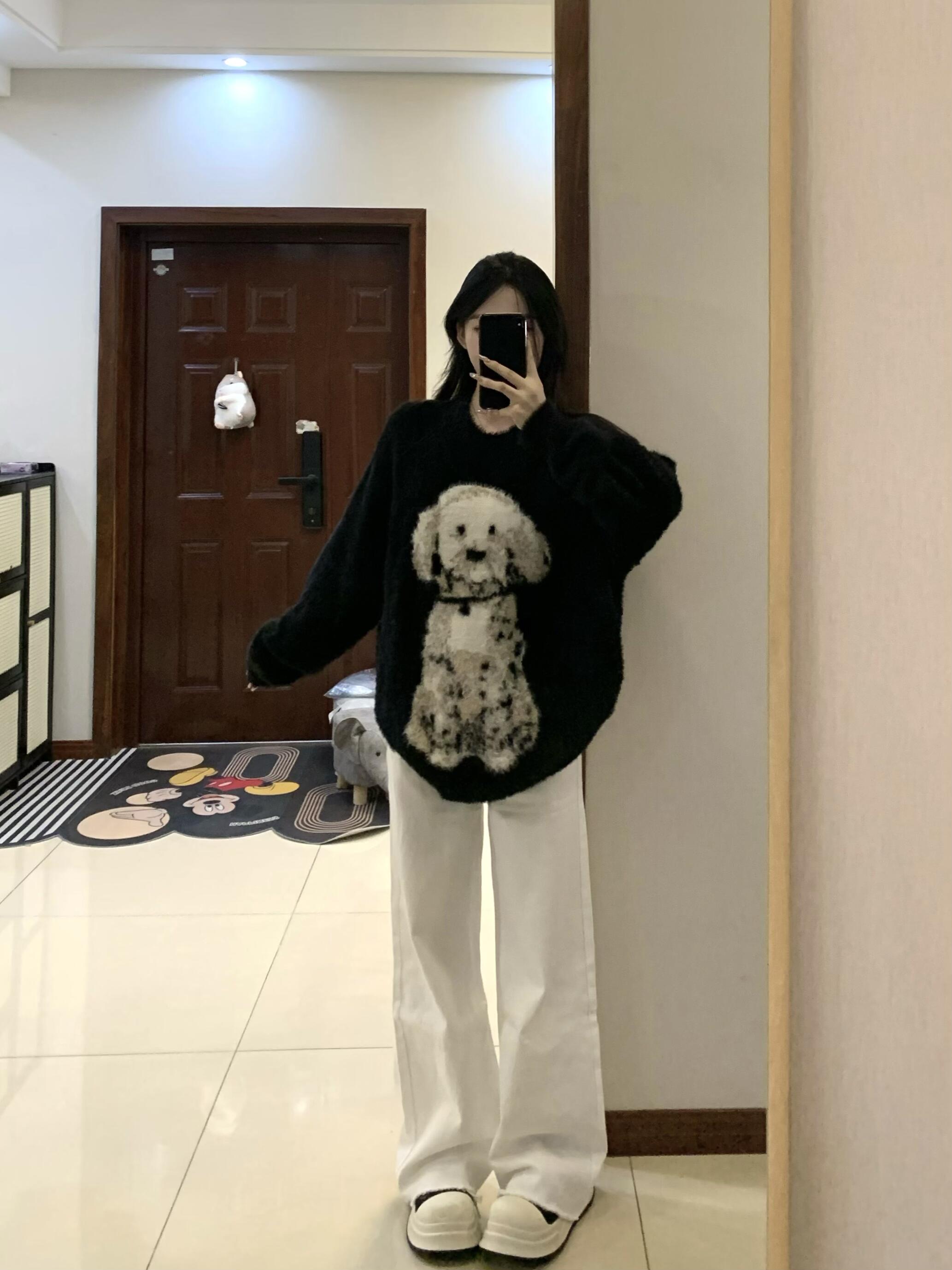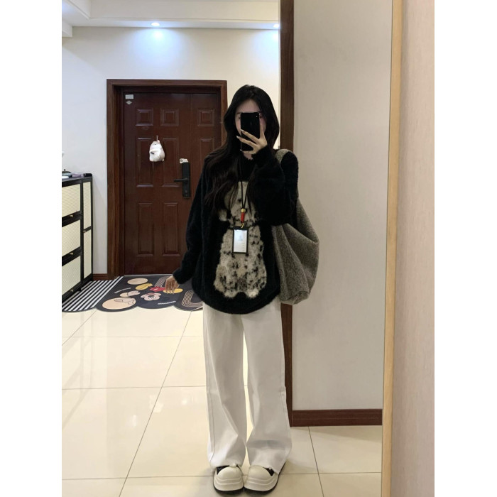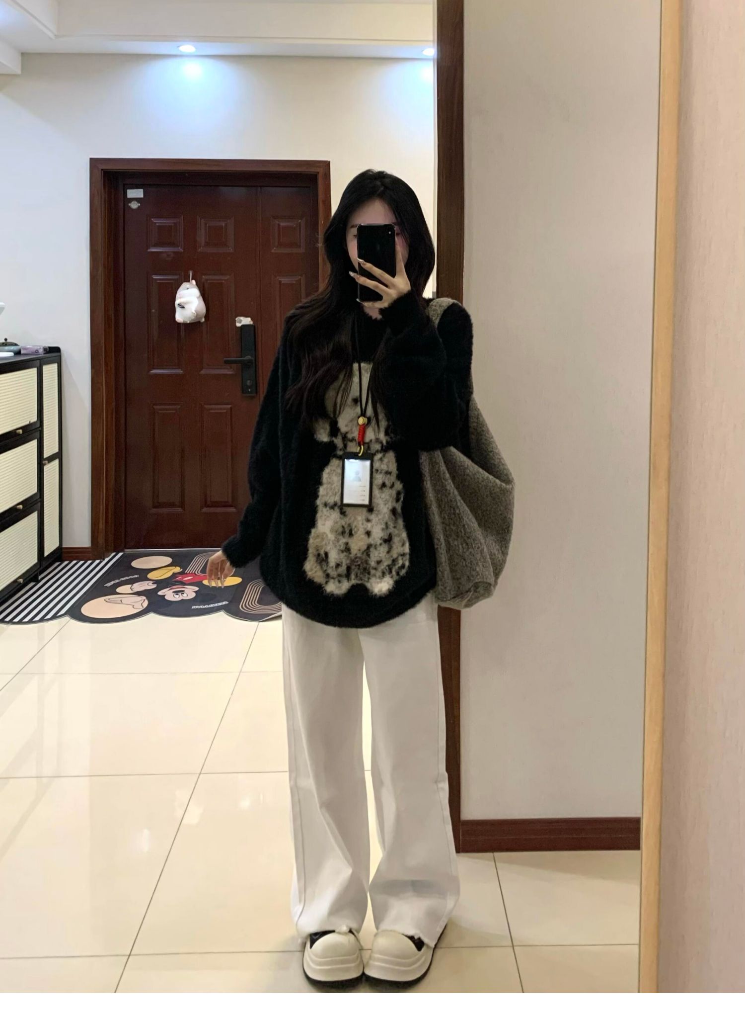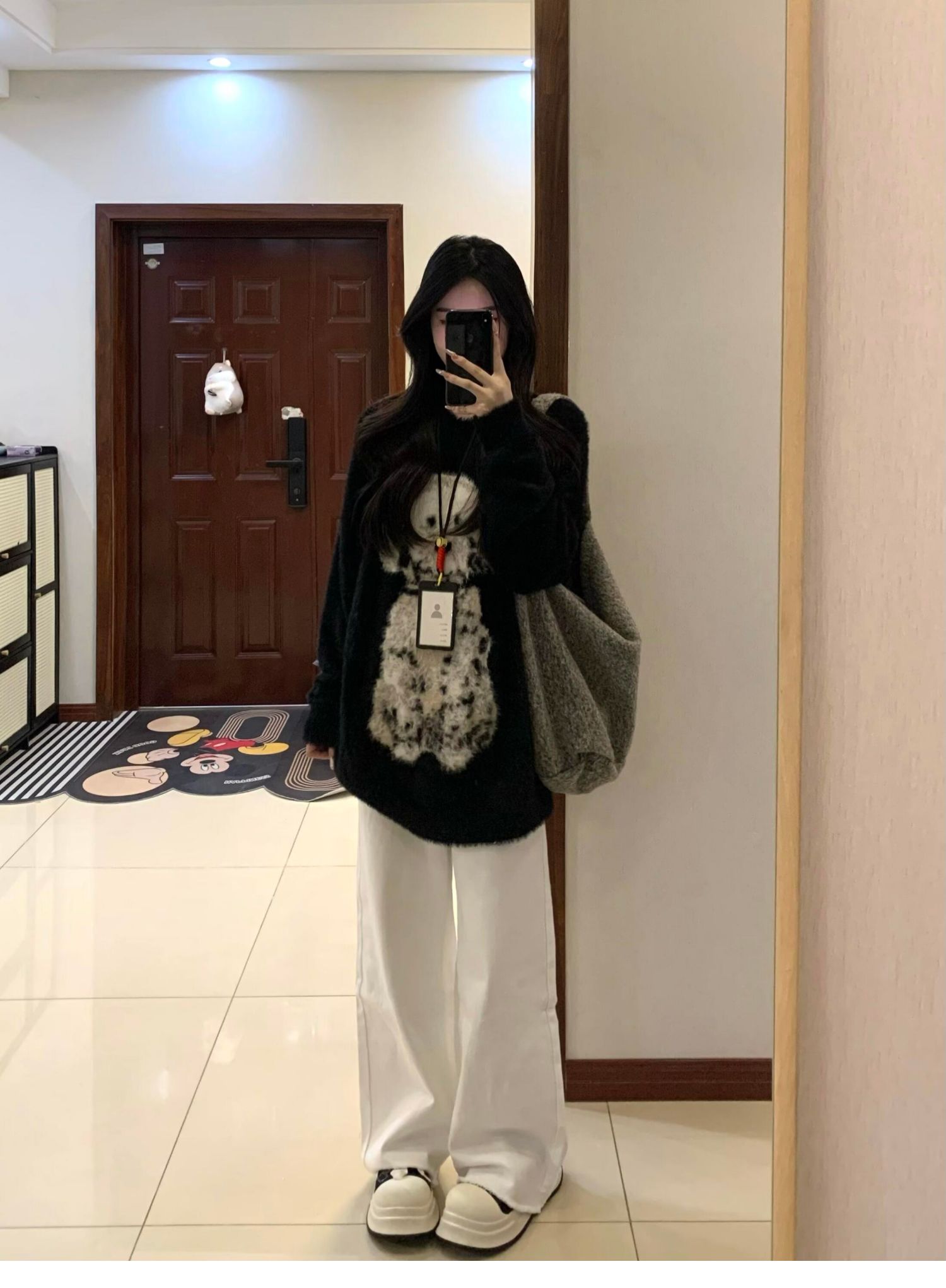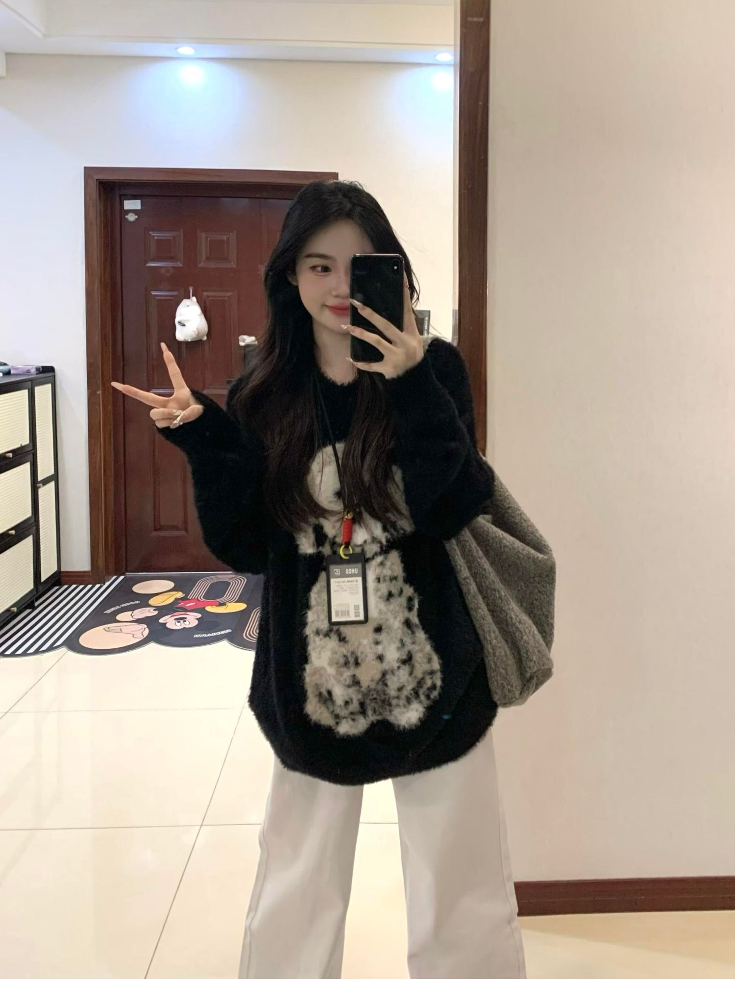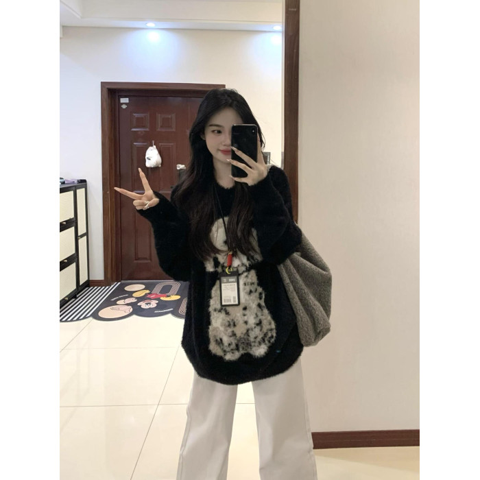 黑色毛衣女秋冬高級感水貂絨慵懶風寬松軟糯馬海毛內搭針織衫上衣