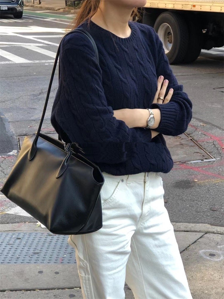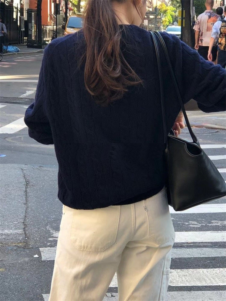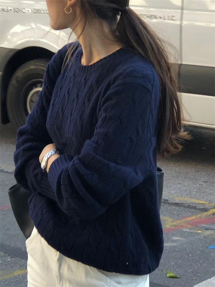 韓系復古圓領麻花毛衣女外穿秋冬新款寬松慵懶風軟糯打底針織上衣