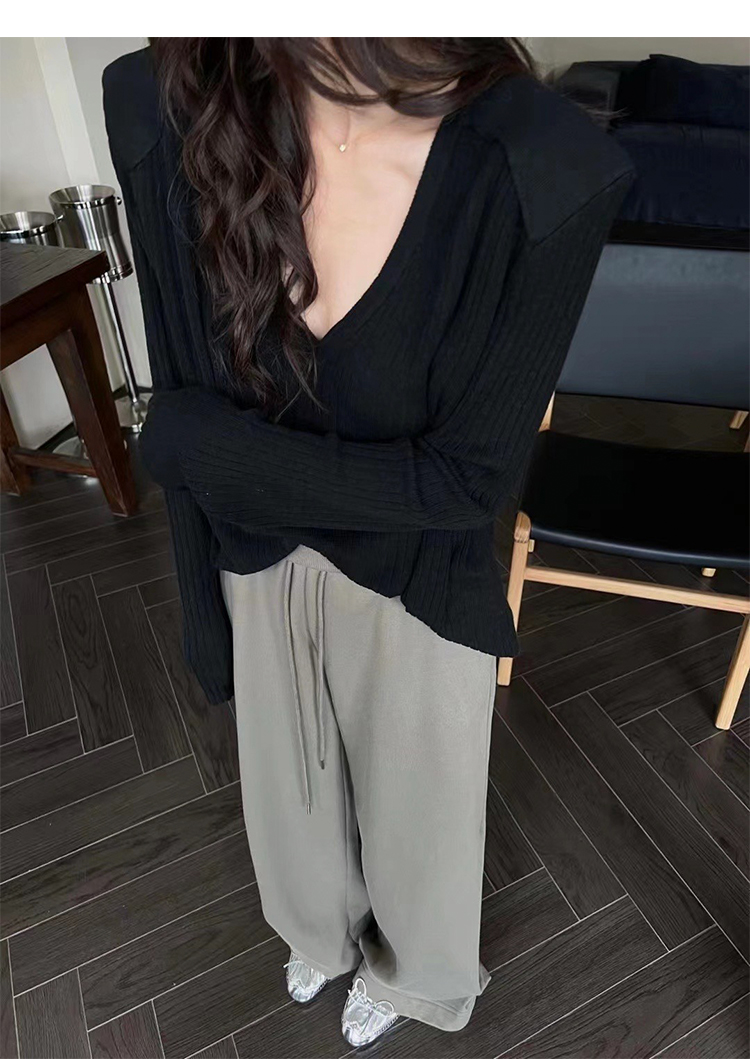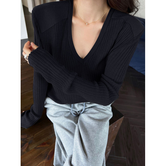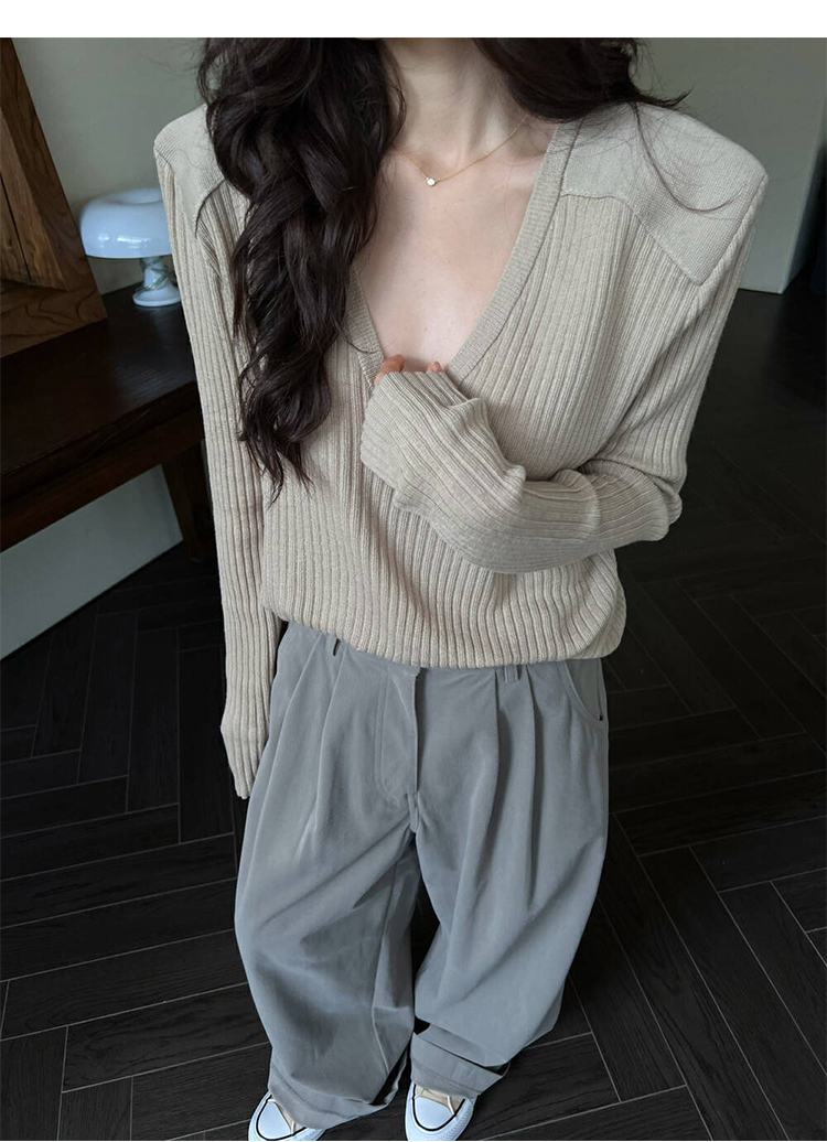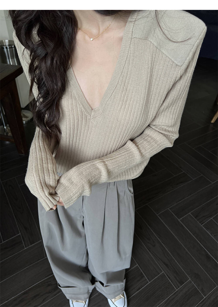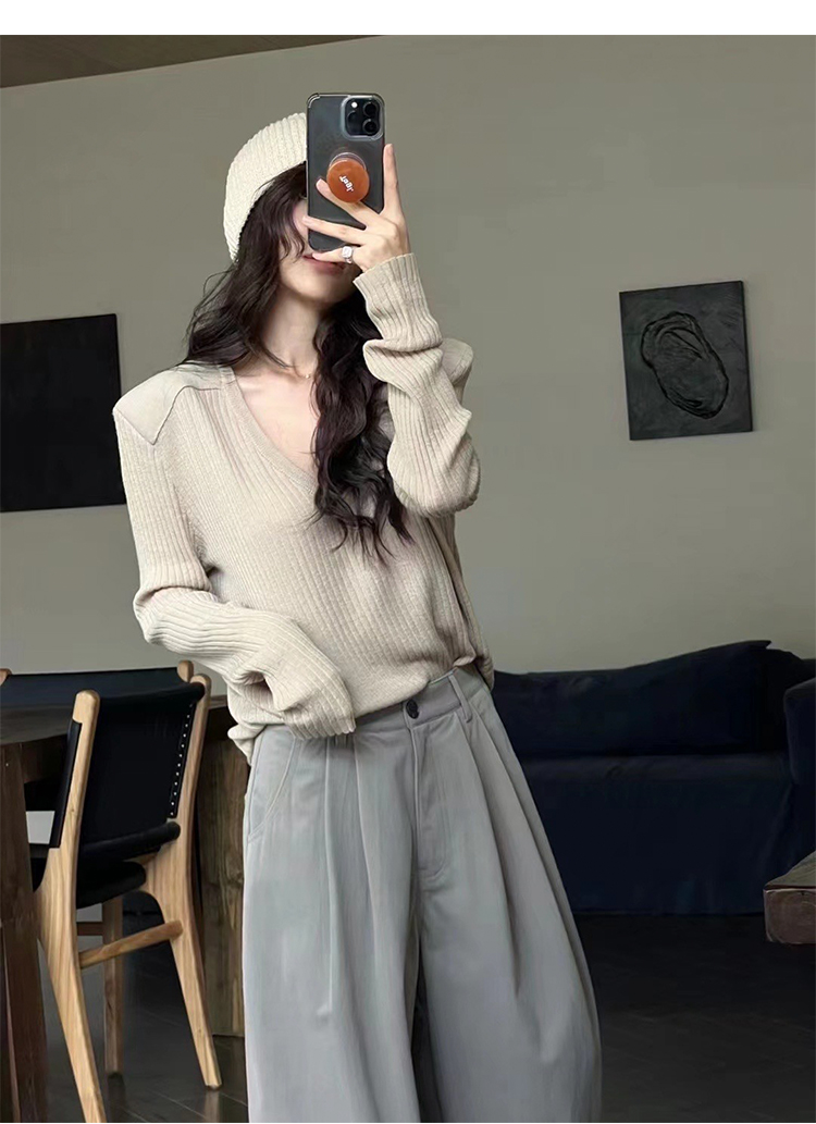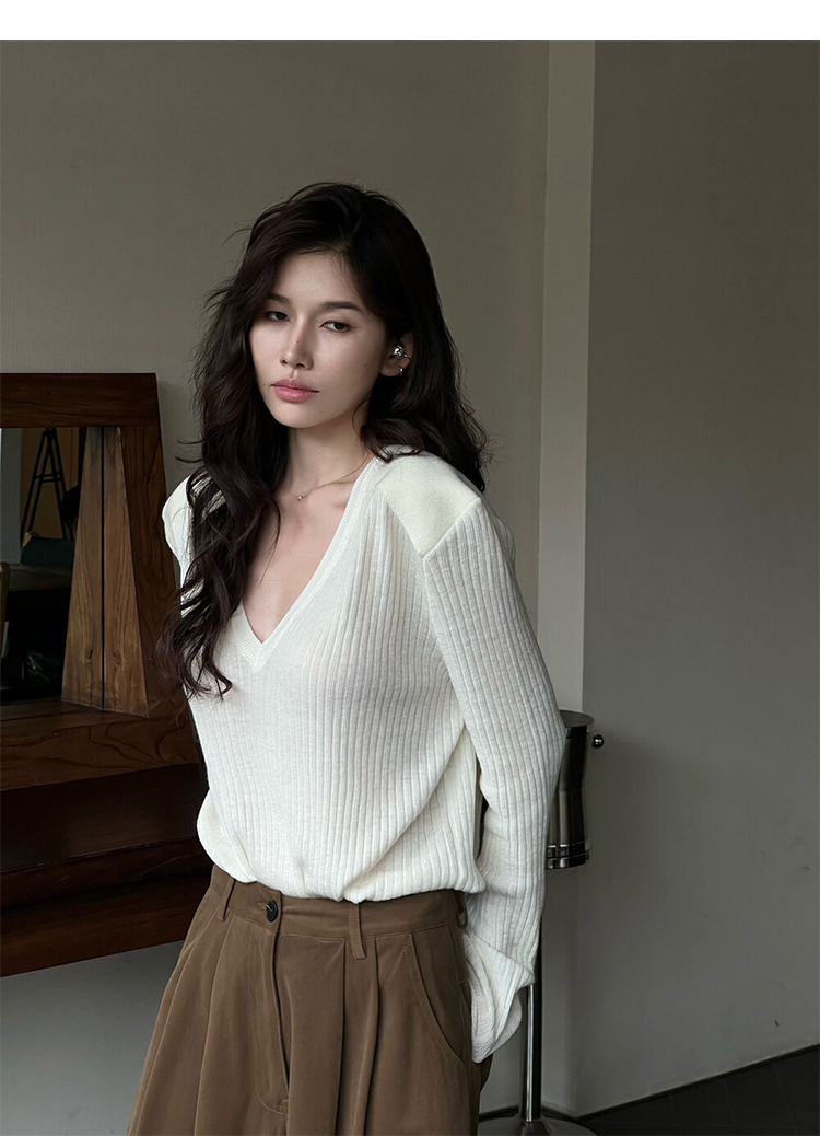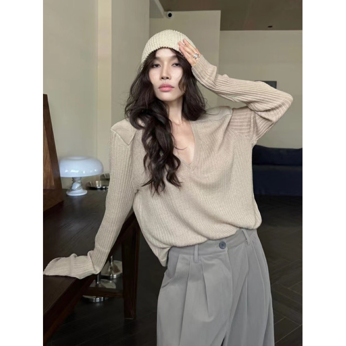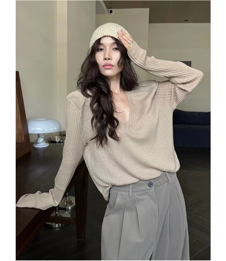 v領上衣女高級感2025新款韓版寬松慵懶風內搭正肩羊毛薄款打底衫