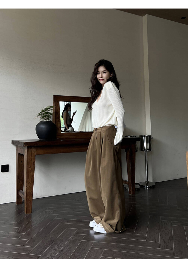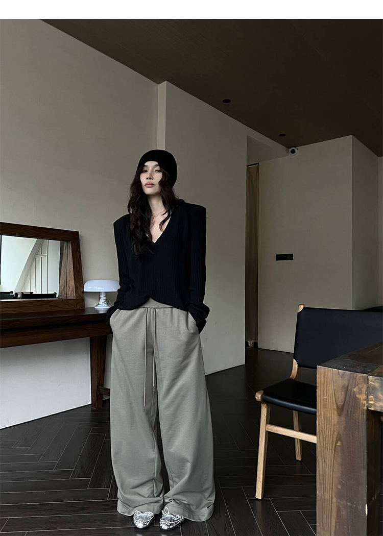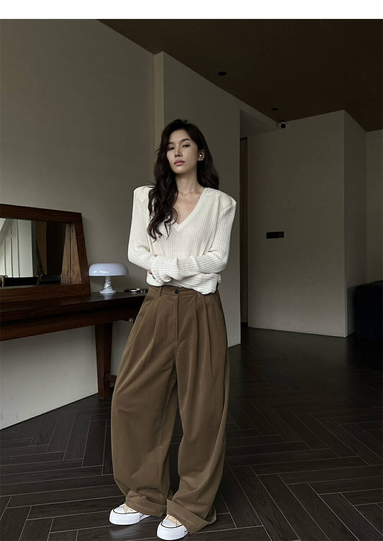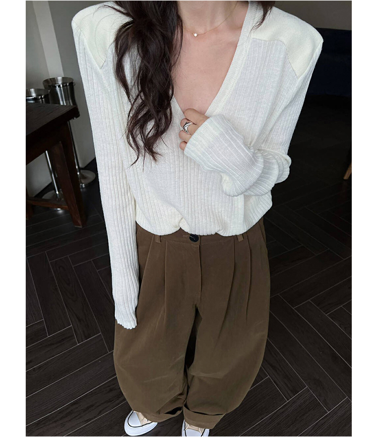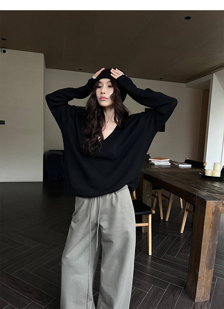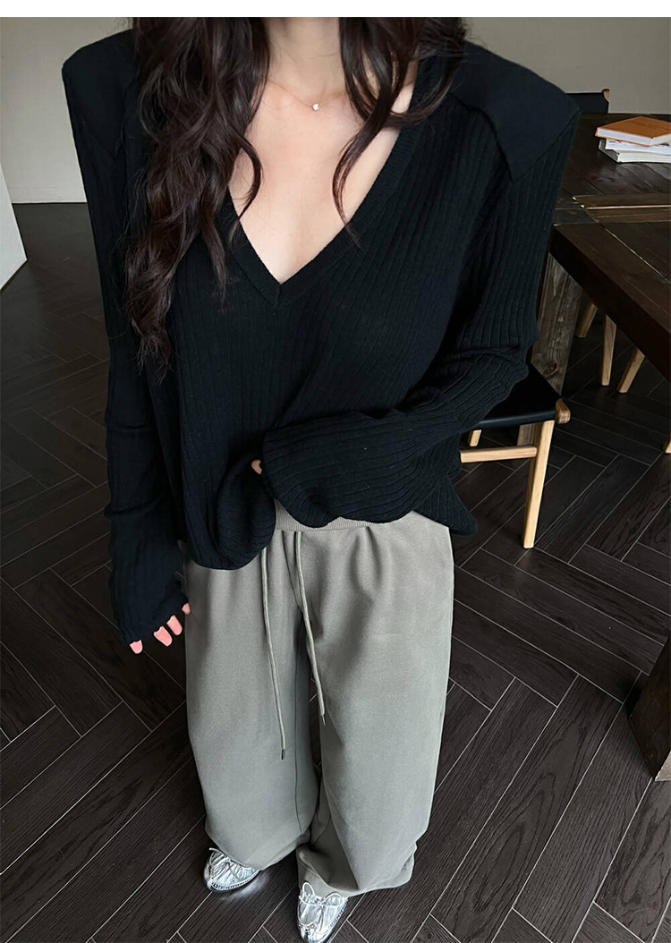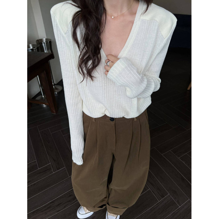 v領上衣女高級感2025新款韓版寬松慵懶風內搭正肩羊毛薄款打底衫