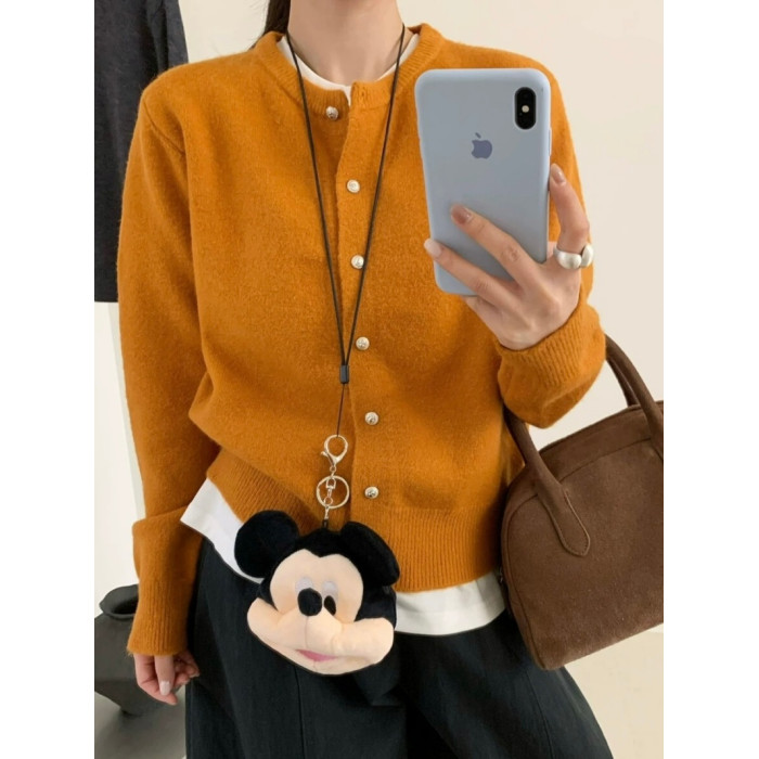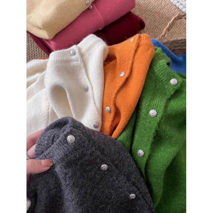 秋冬bi備百搭單品!韓代@e*g 復古小銀釦合身版型針織毛衣外套