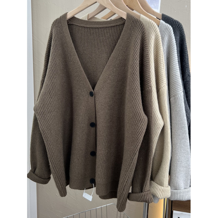 復古V領針織溫柔慵懶風寬松外套女2023新款爆款秋季毛衣開衫