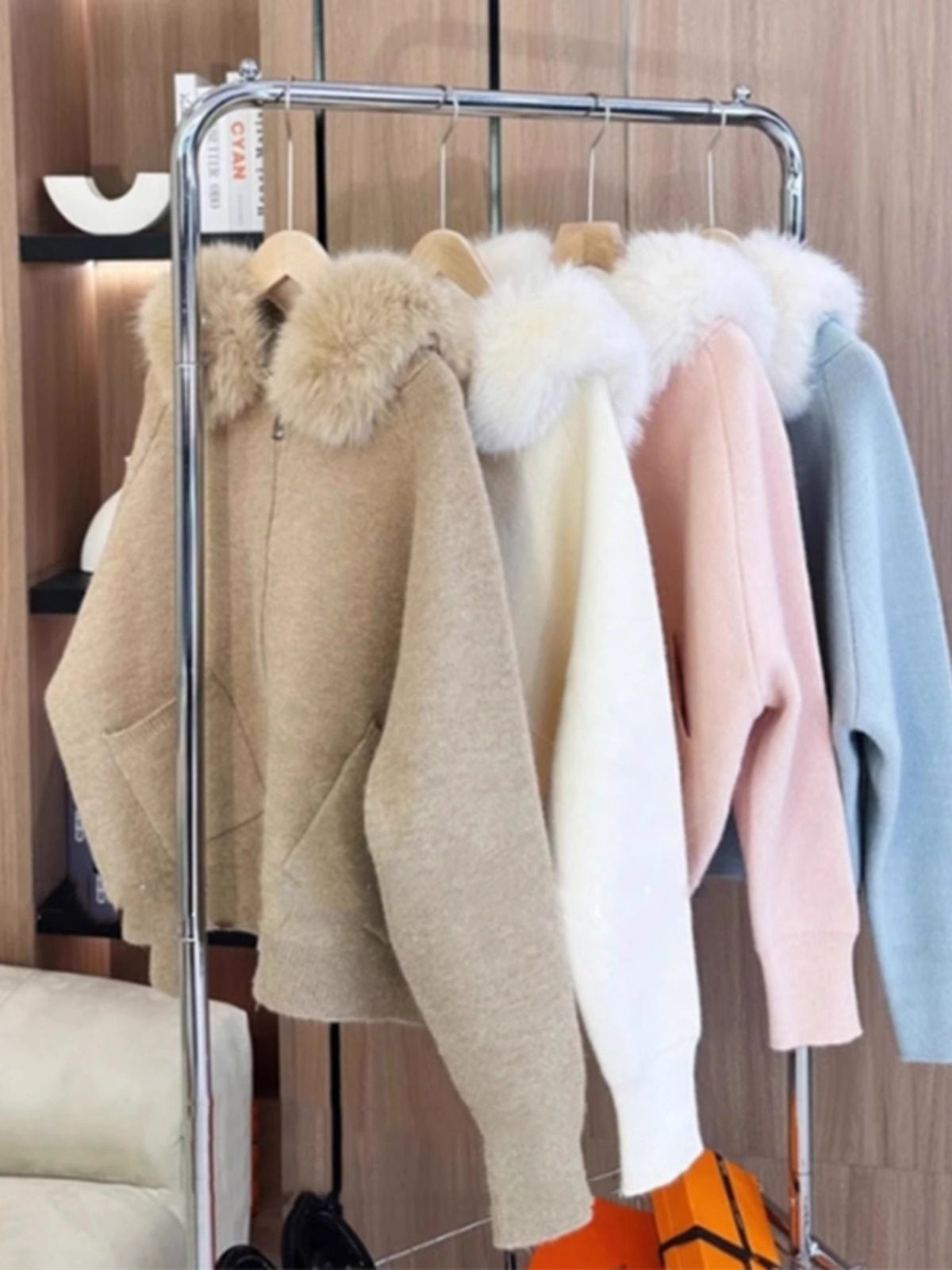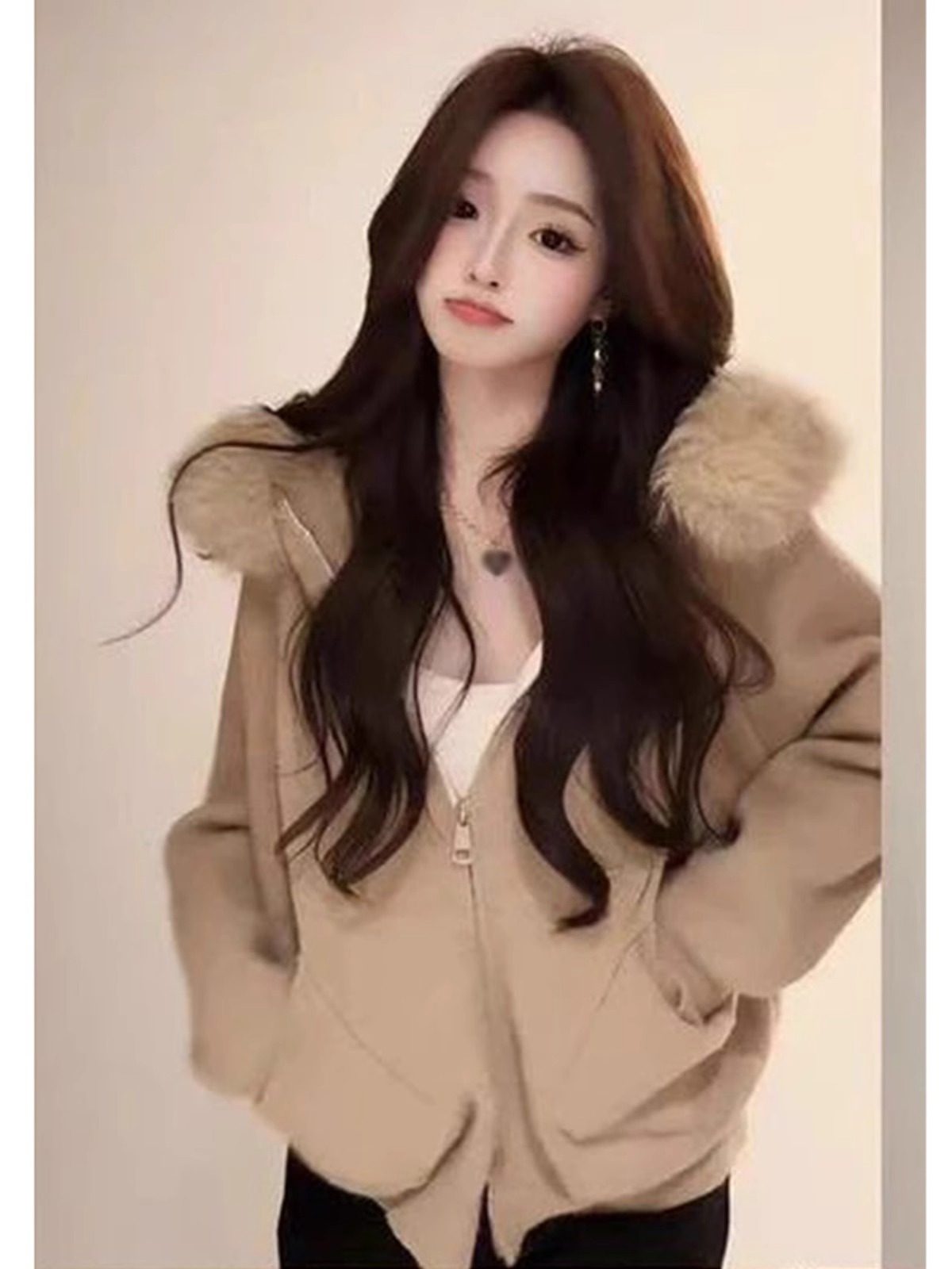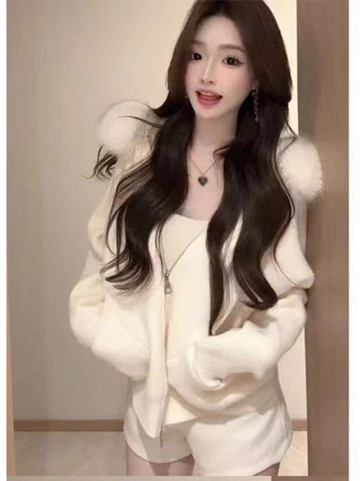 韓系氣質毛領連帽毛衣外套女秋冬新款高級感時尚慵懶針織開衫上衣