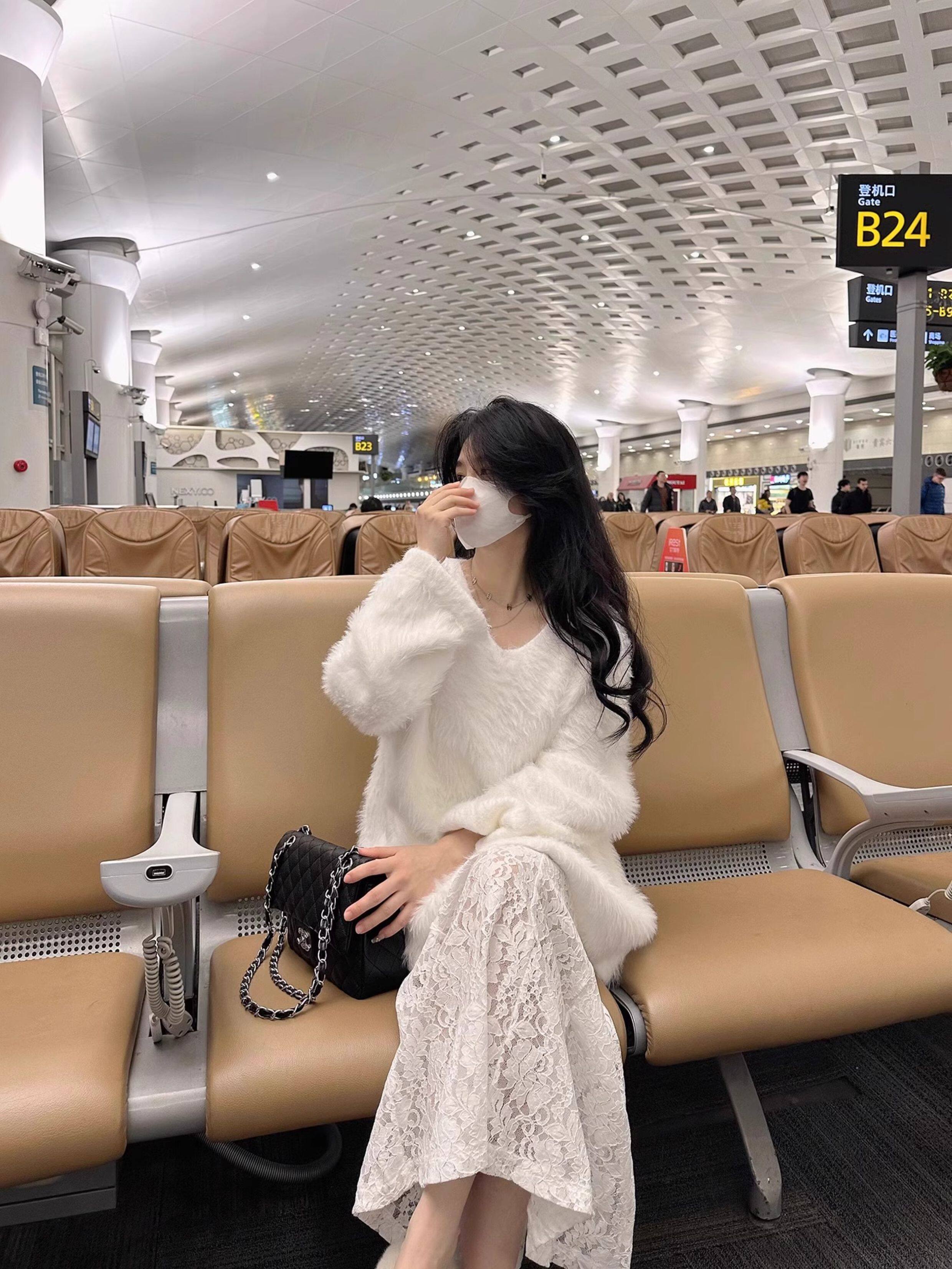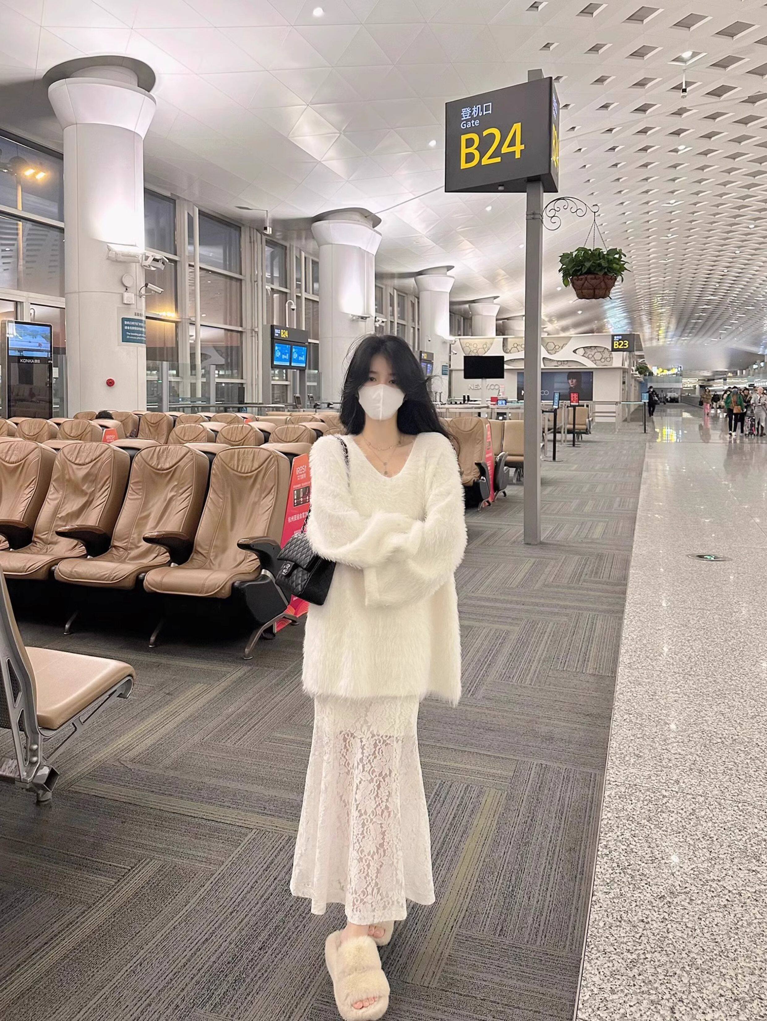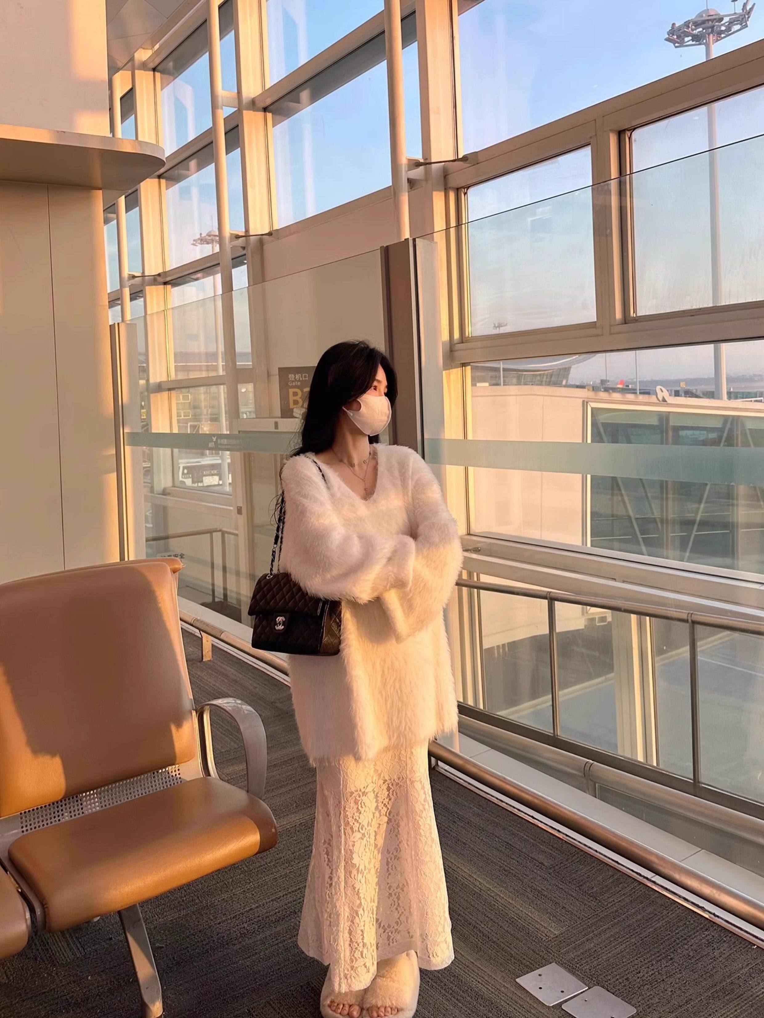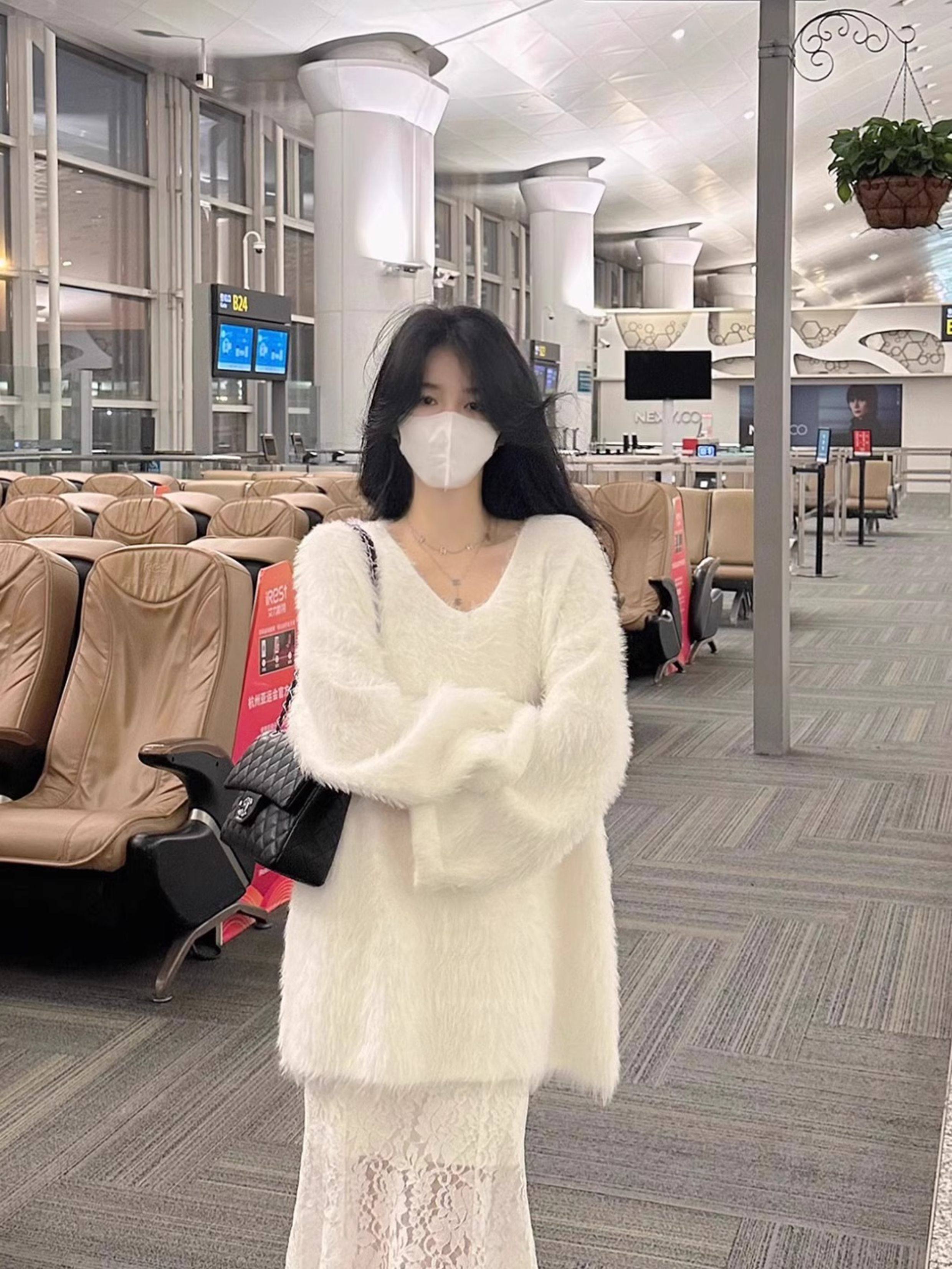 秋冬V領寬鬆慵懶風毛衣加厚仿水貂毛外套女紫色法式洋氣韓版上衣