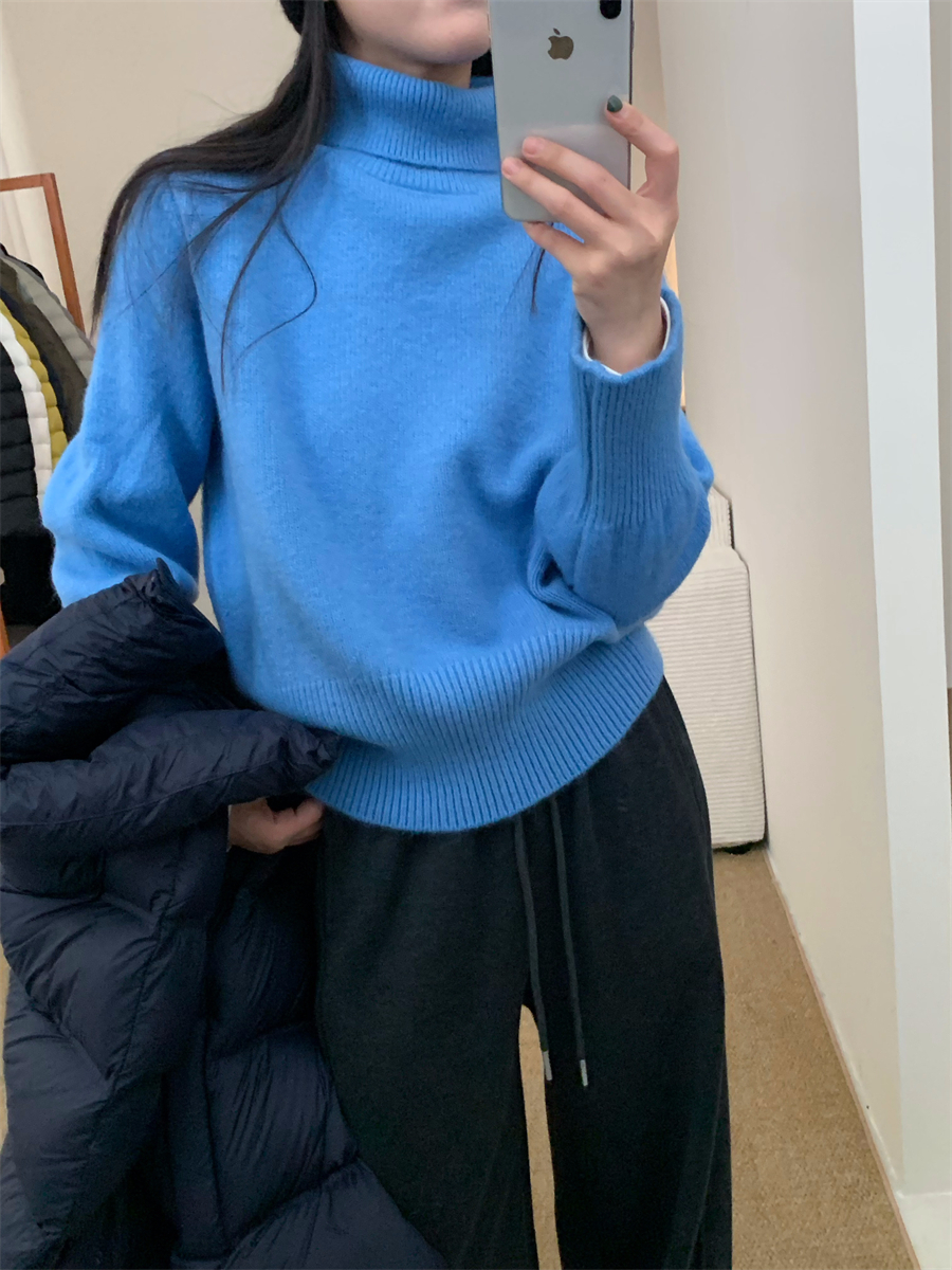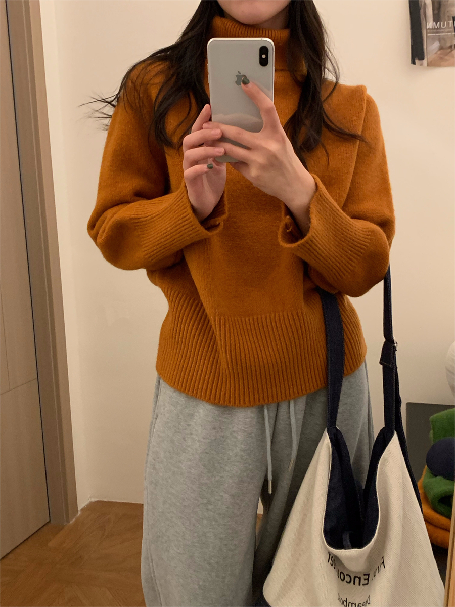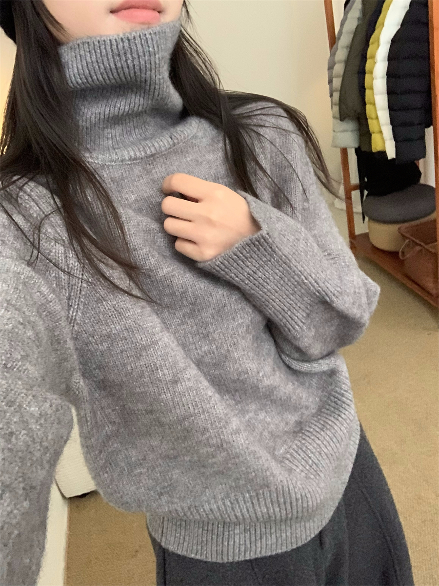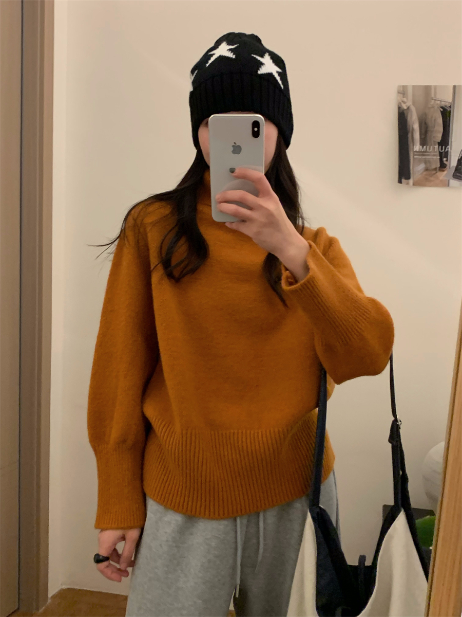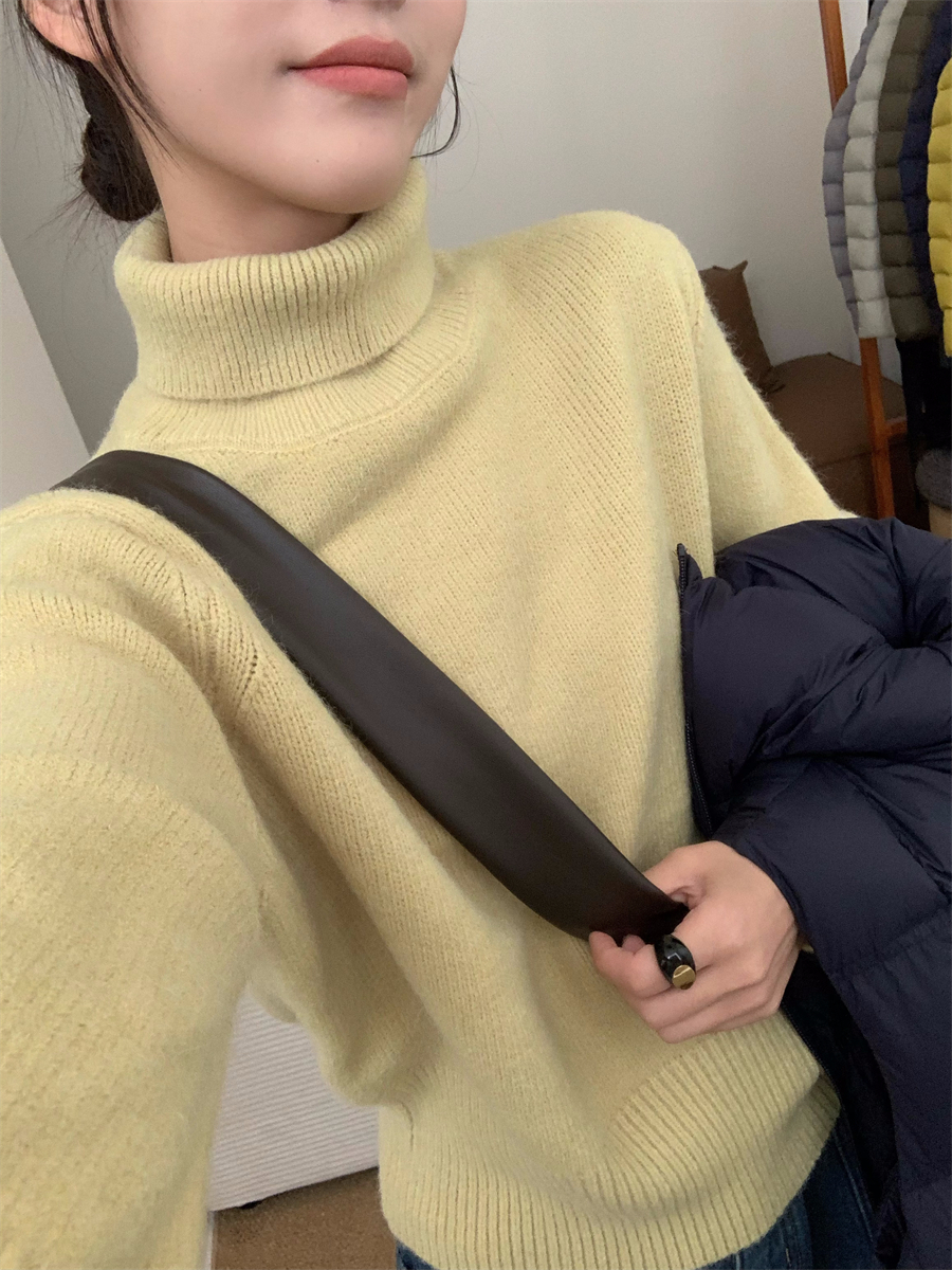 高領套頭毛衣女2025年秋冬季慵懶風軟糯寬松內搭堆堆領針織打底衫
