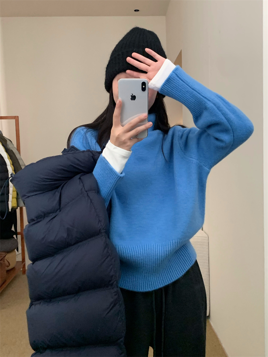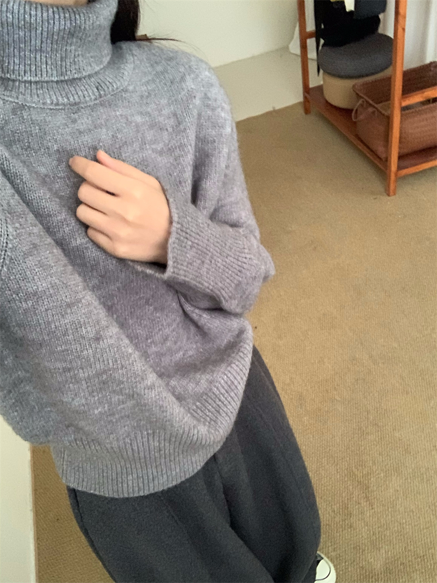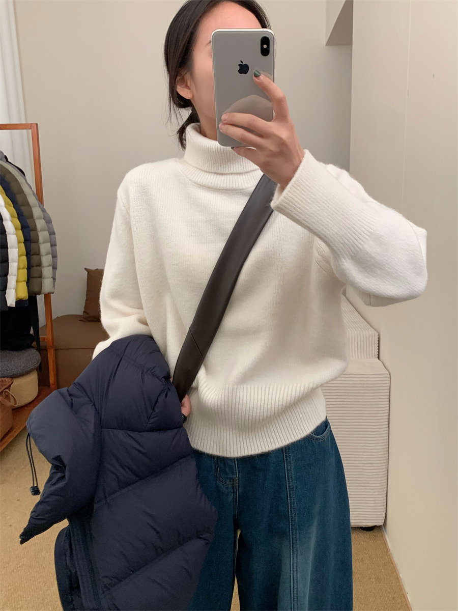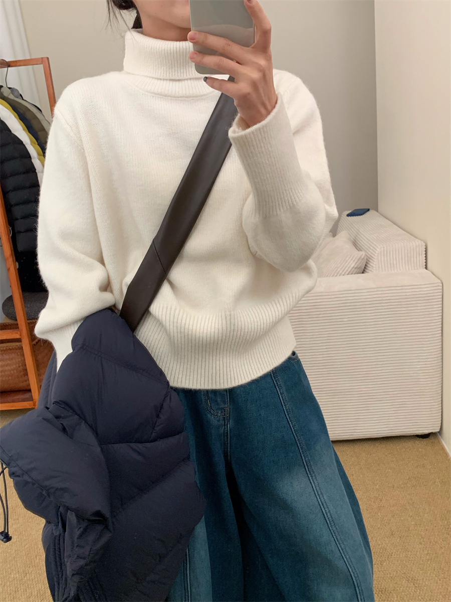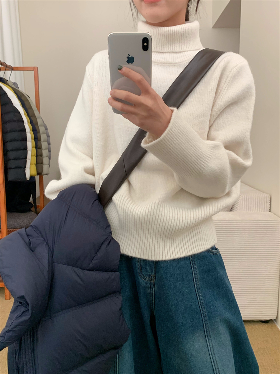 高領套頭毛衣女2025年秋冬季慵懶風軟糯寬松內搭堆堆領針織打底衫
