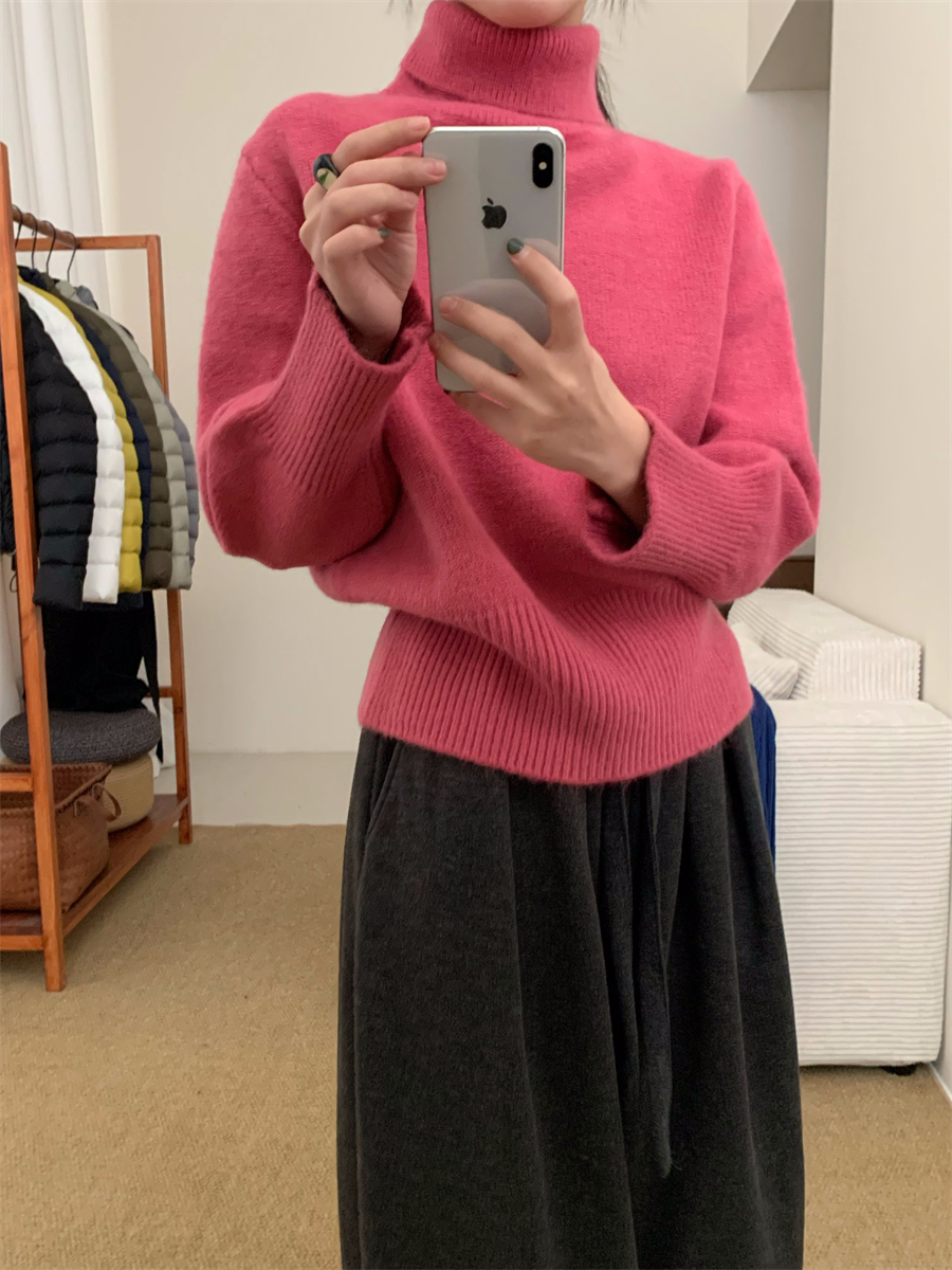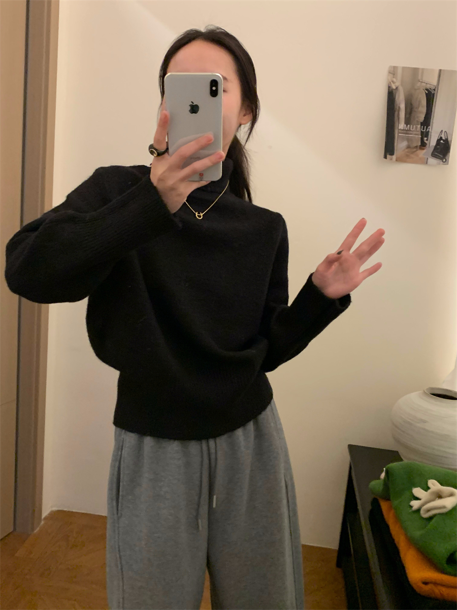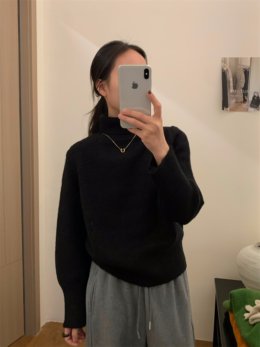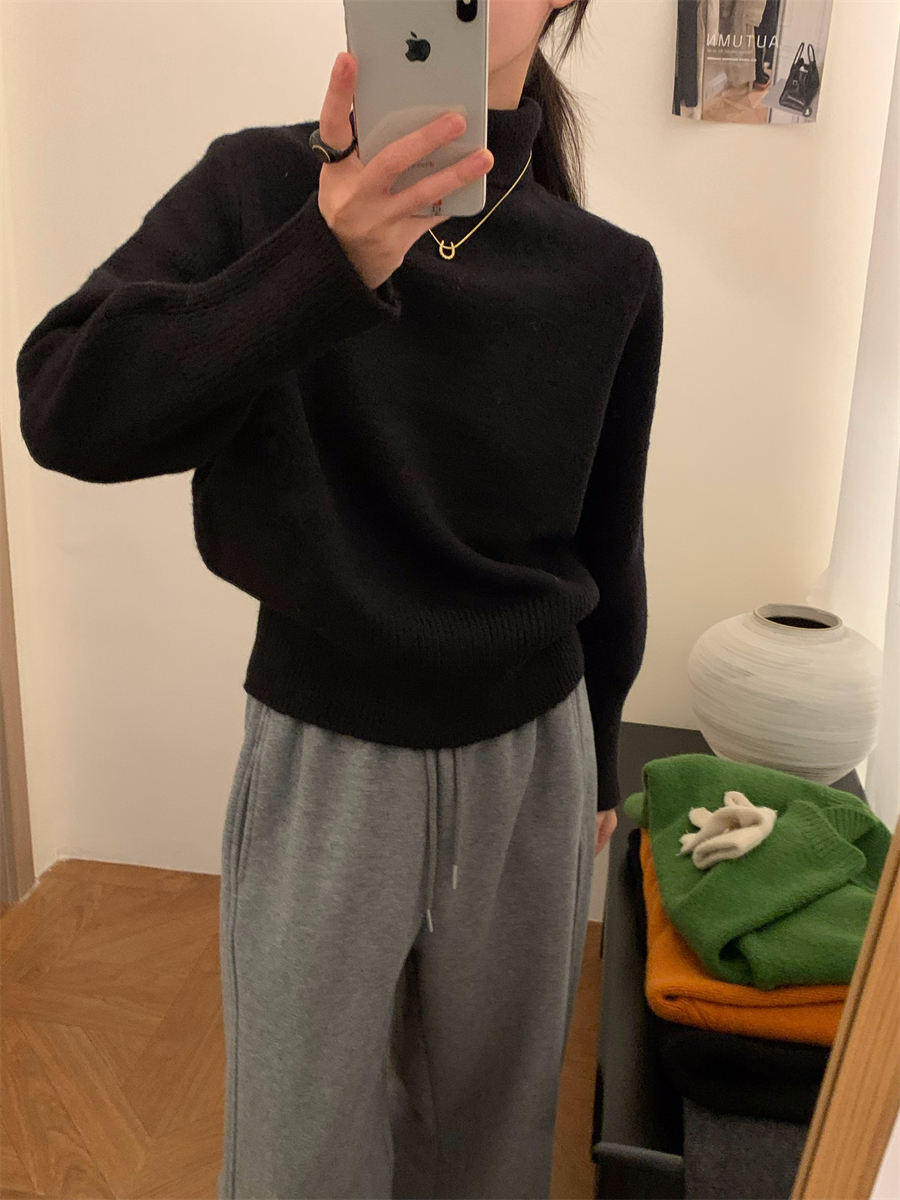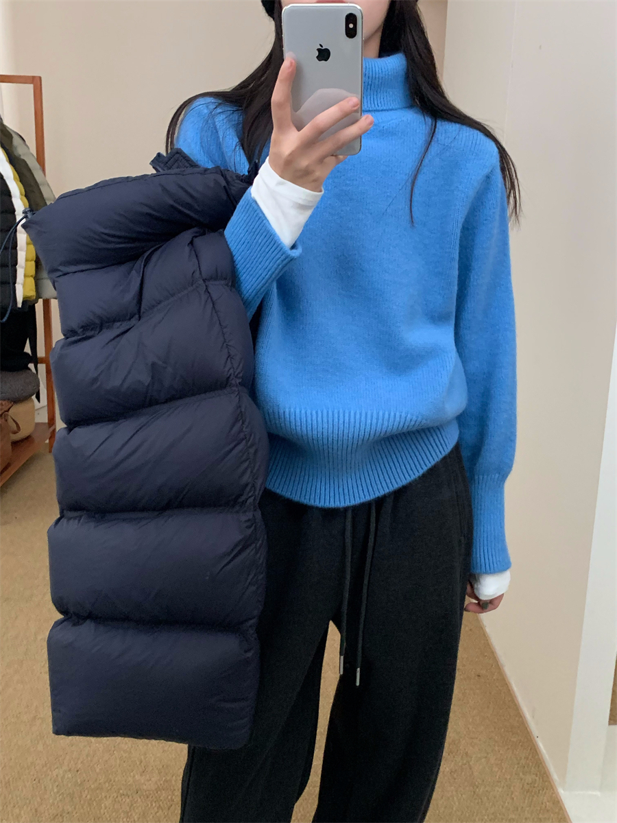 高領套頭毛衣女2025年秋冬季慵懶風軟糯寬松內搭堆堆領針織打底衫