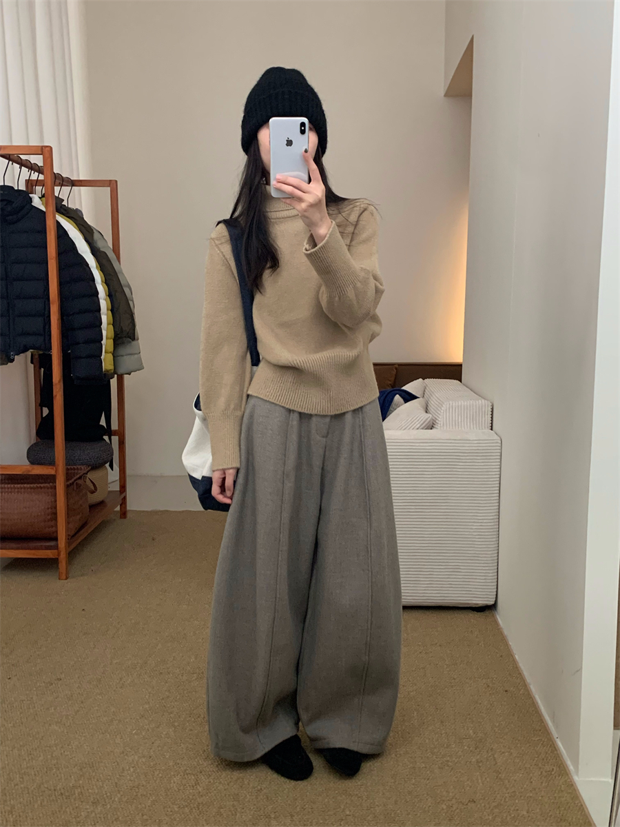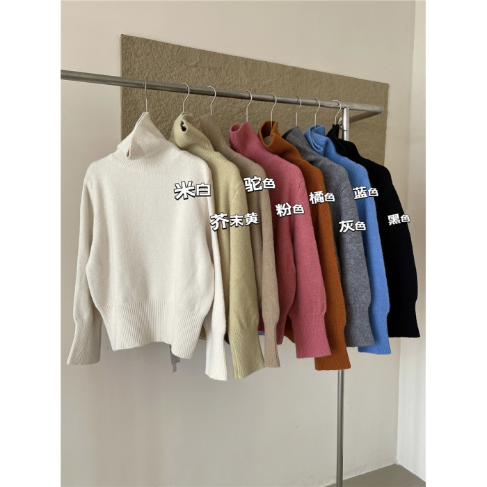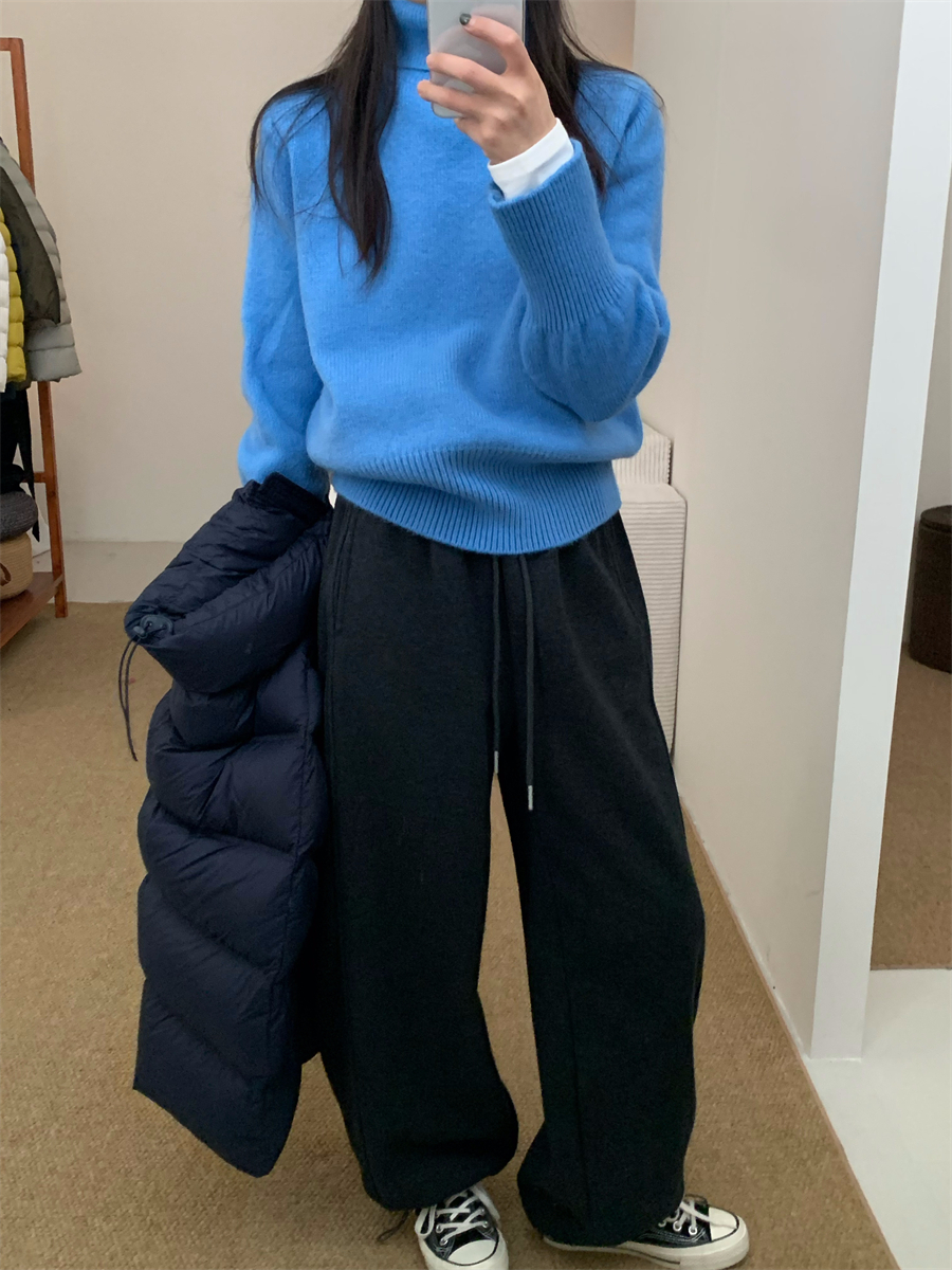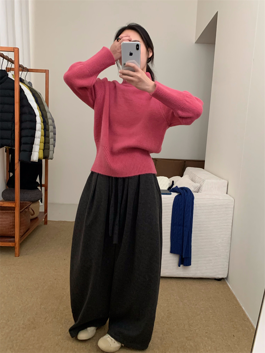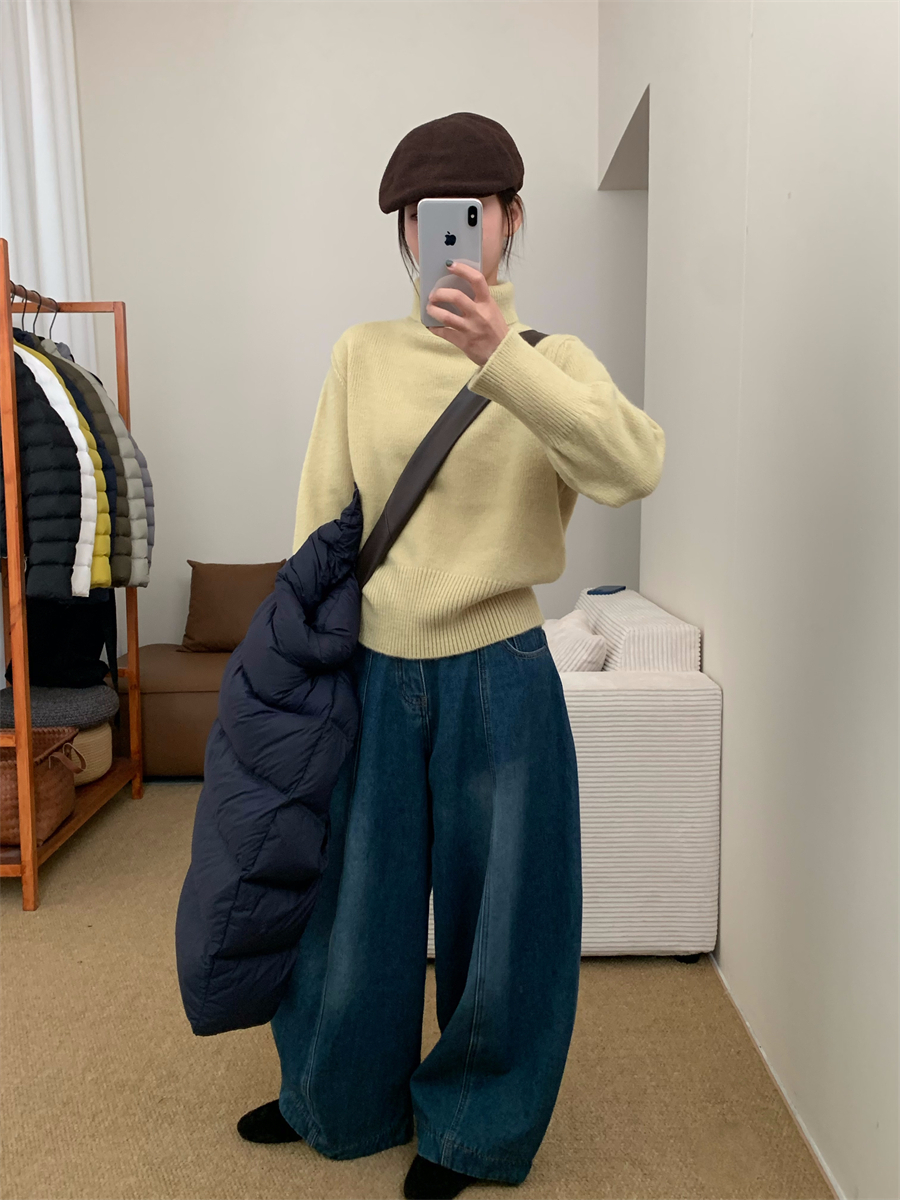 高領套頭毛衣女2025年秋冬季慵懶風軟糯寬松內搭堆堆領針織打底衫