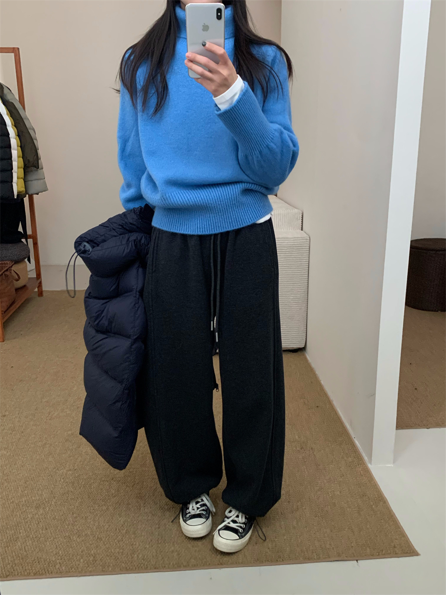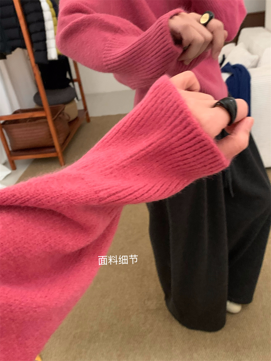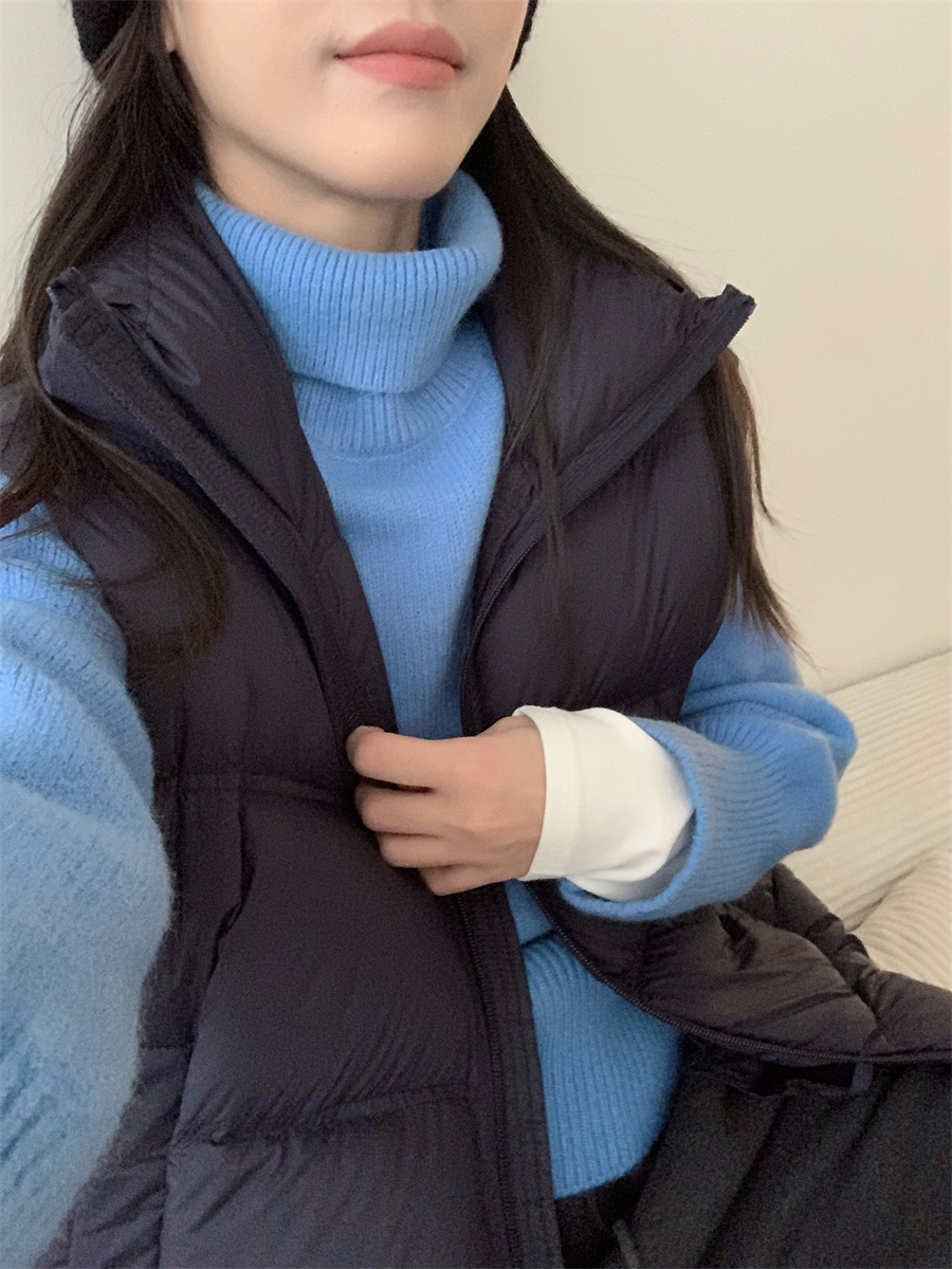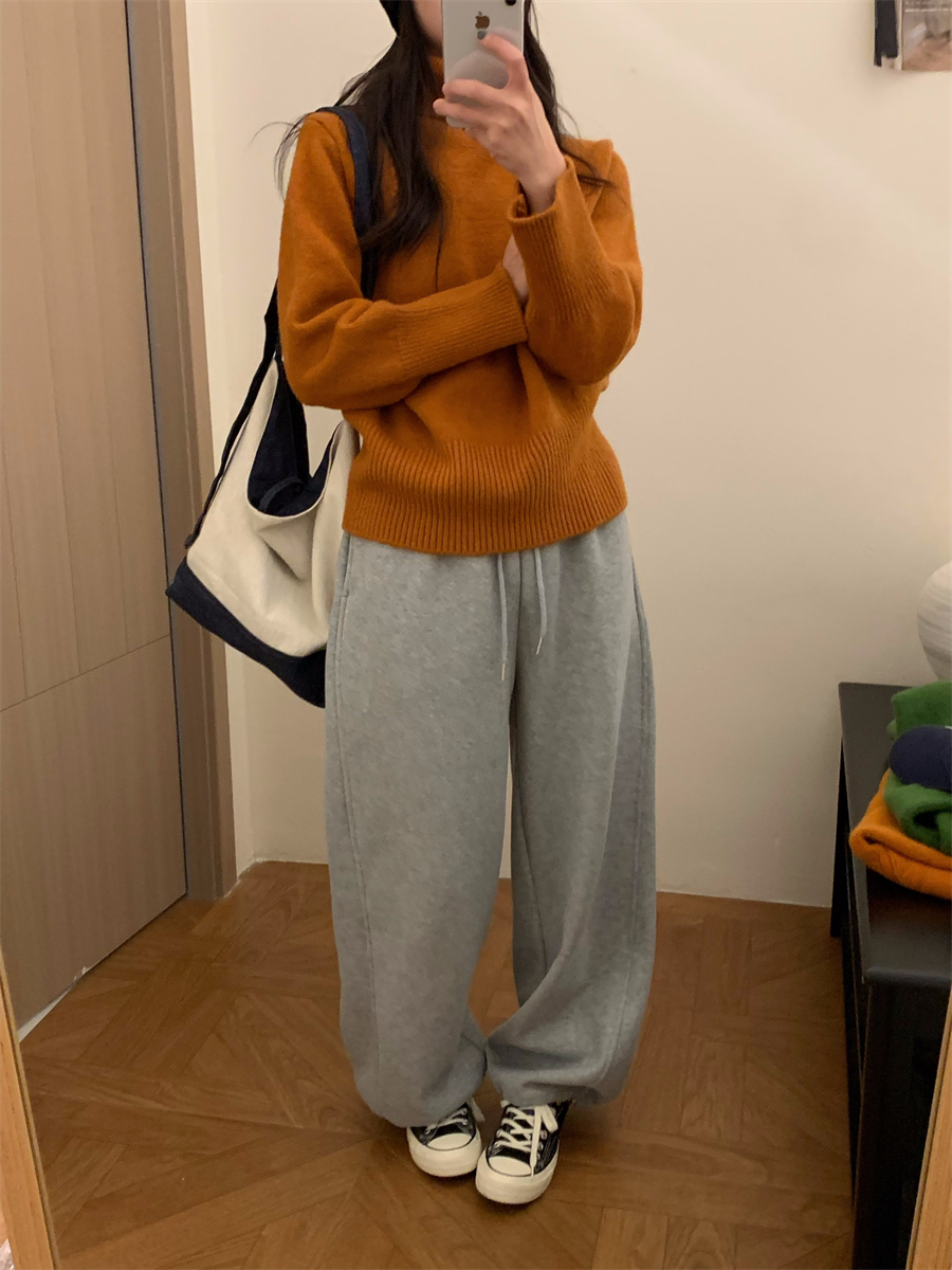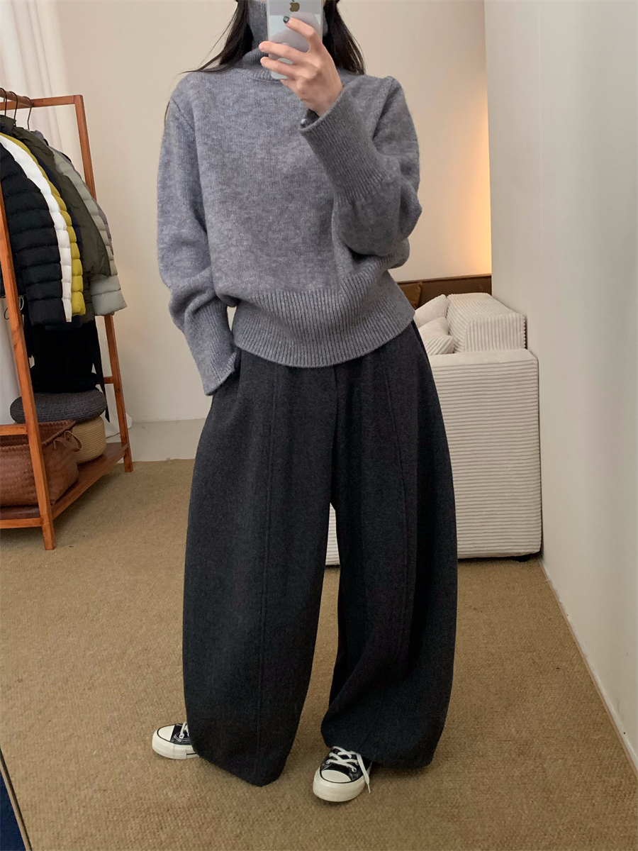 高領套頭毛衣女2025年秋冬季慵懶風軟糯寬松內搭堆堆領針織打底衫