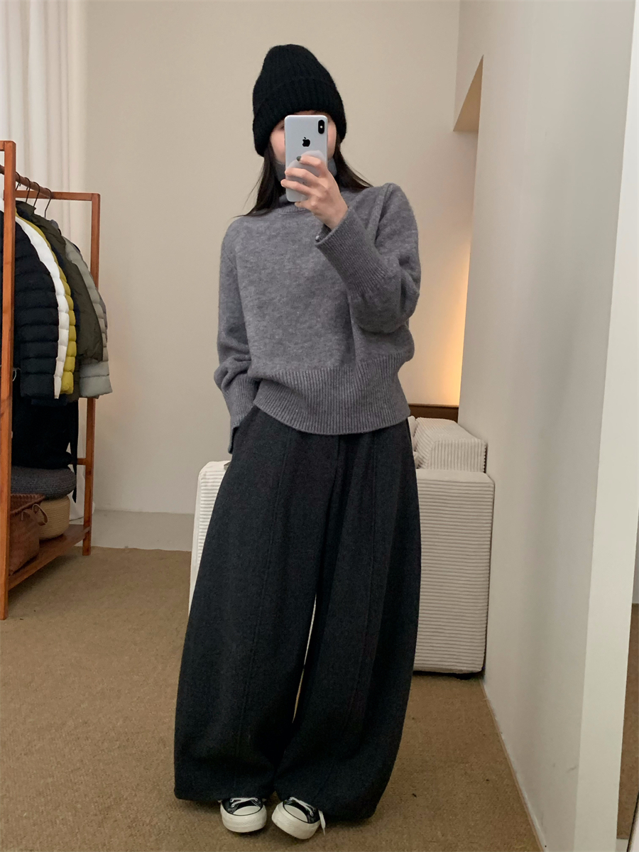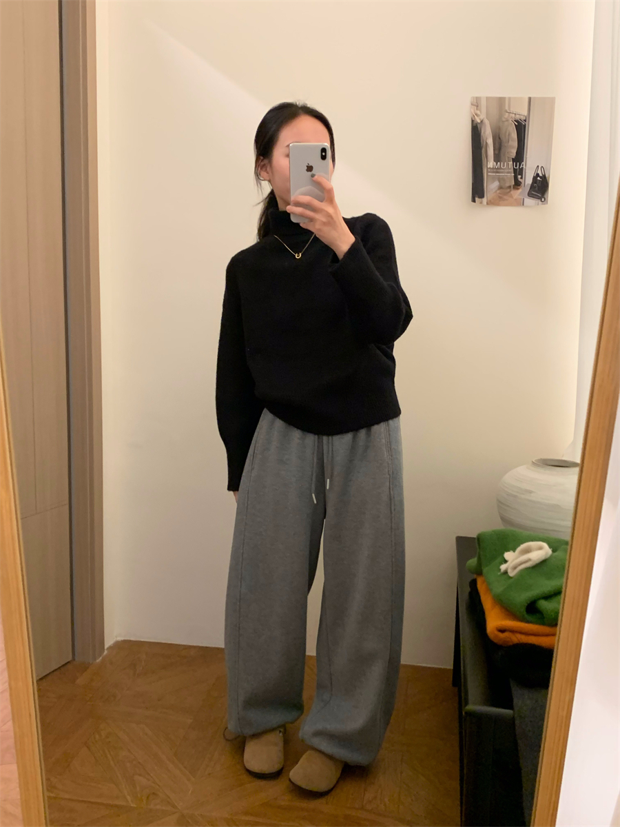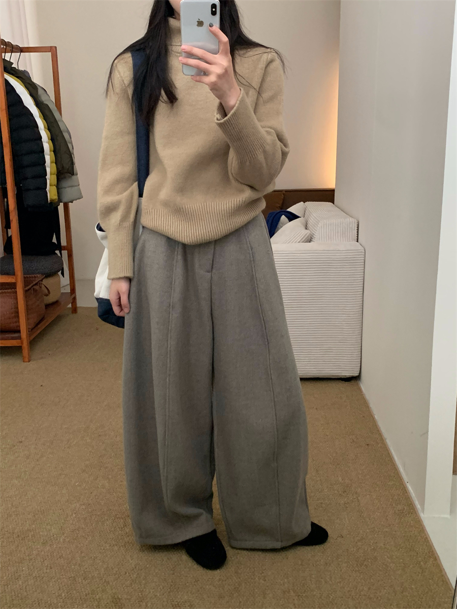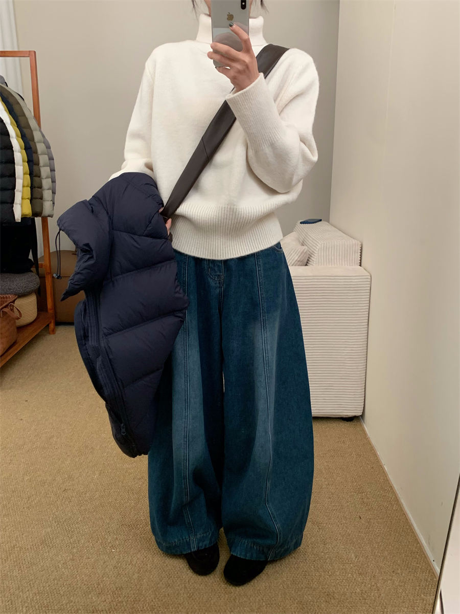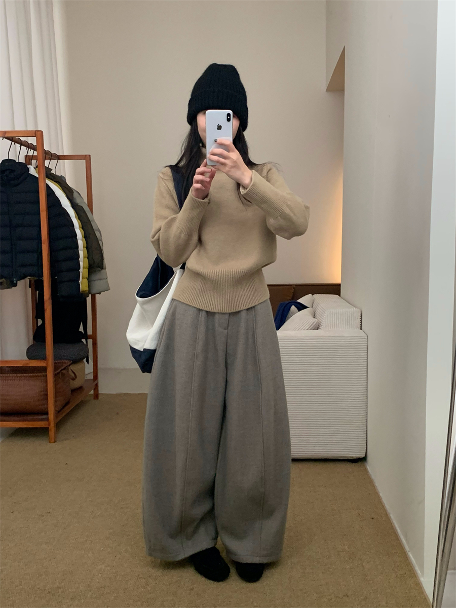 高領套頭毛衣女2025年秋冬季慵懶風軟糯寬松內搭堆堆領針織打底衫