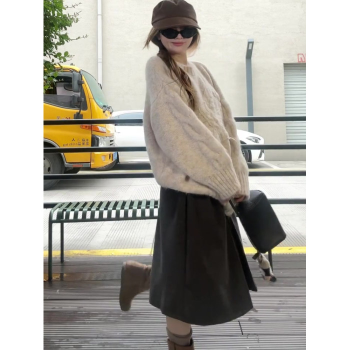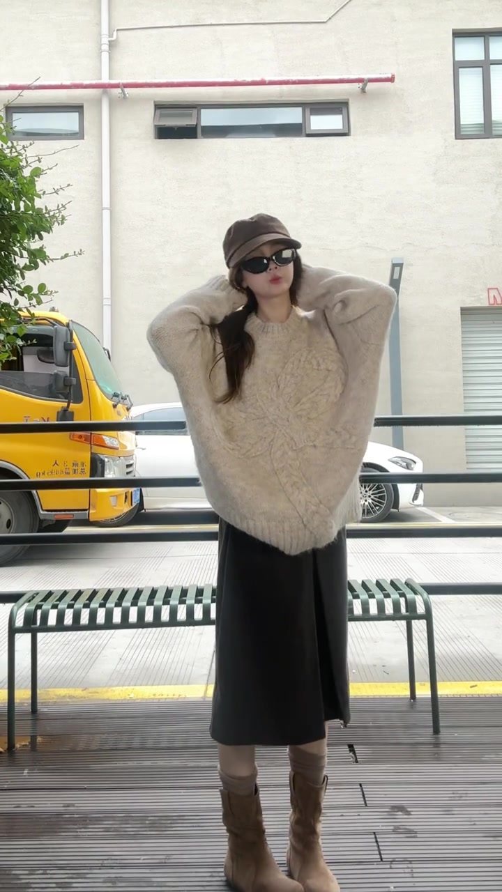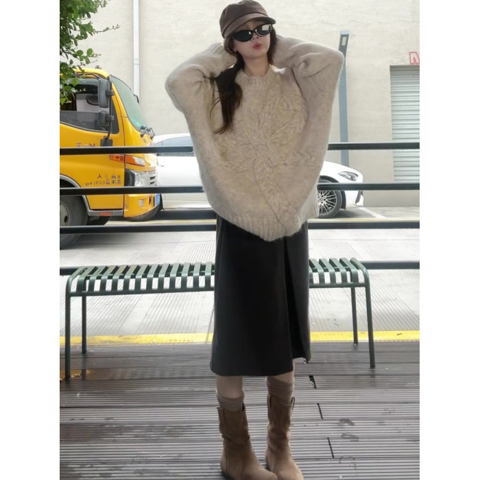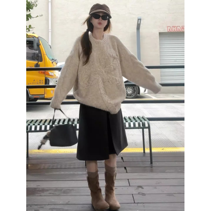 高級感慵懶風蝴蝶結長袖毛衣女2025秋冬新款寬松加厚高級感針織衫