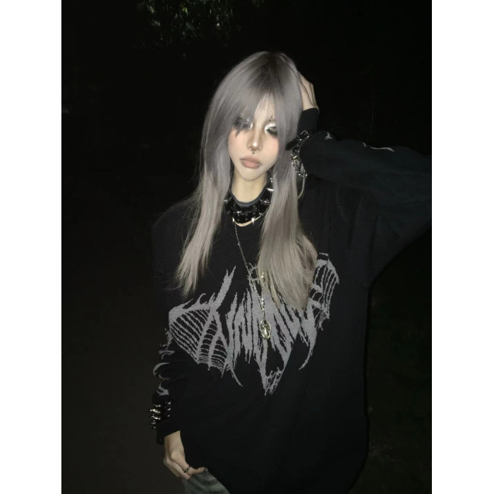 溼體WETBODY 原創小衆暗黑寬松套頭毛衣哥特中性街頭上衣女