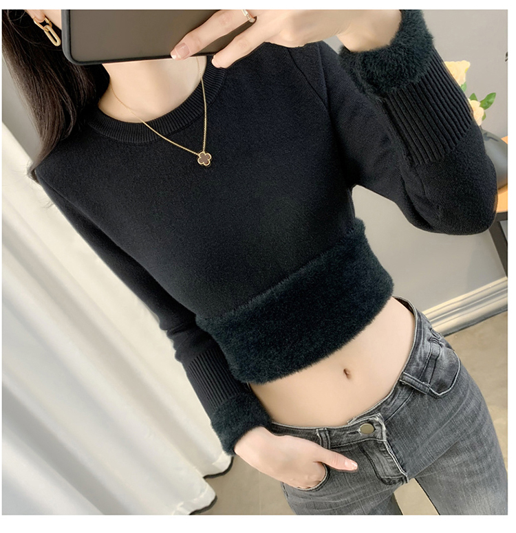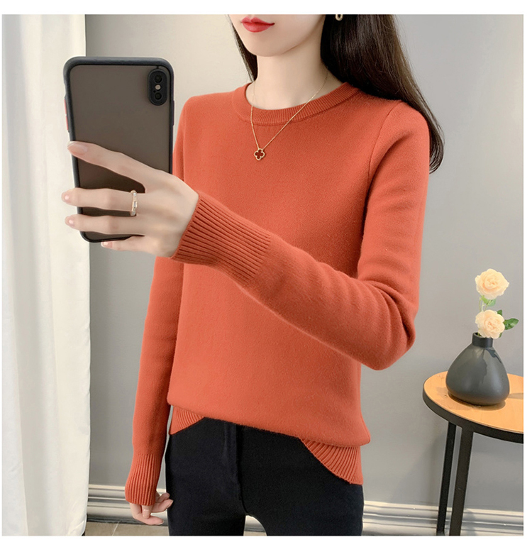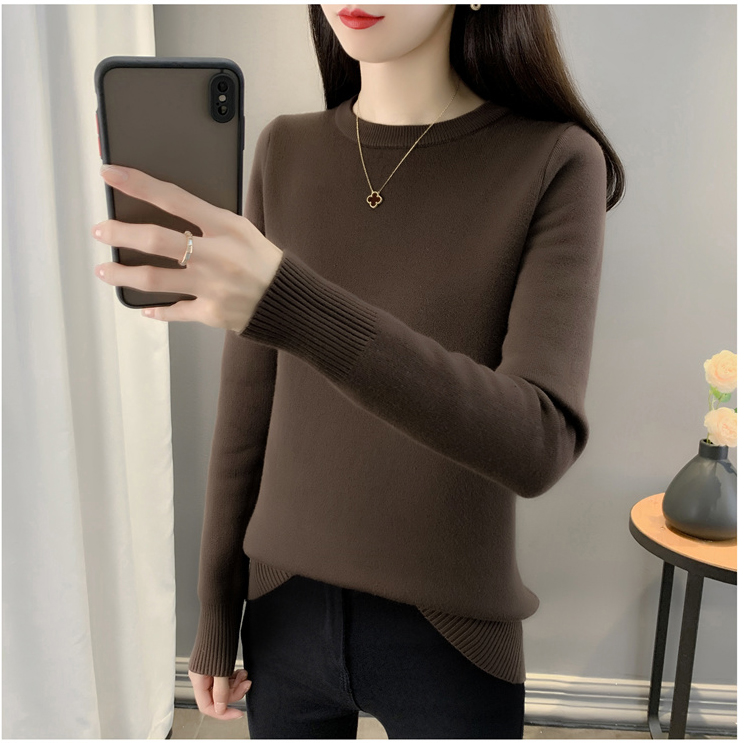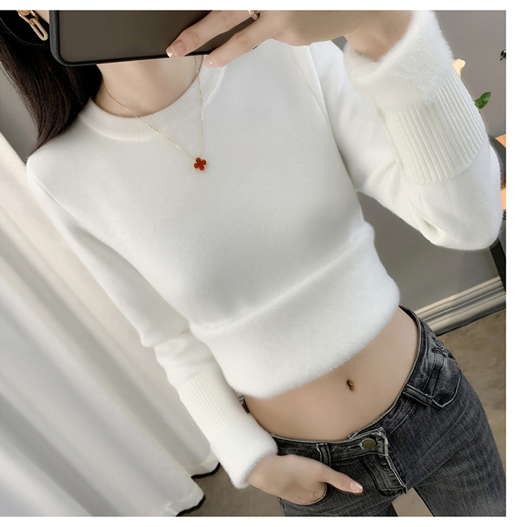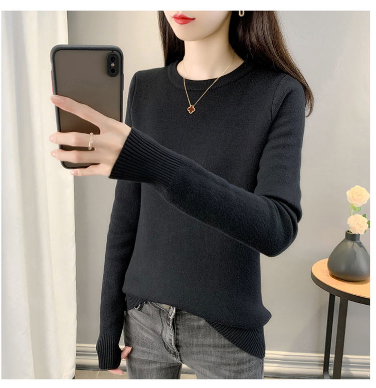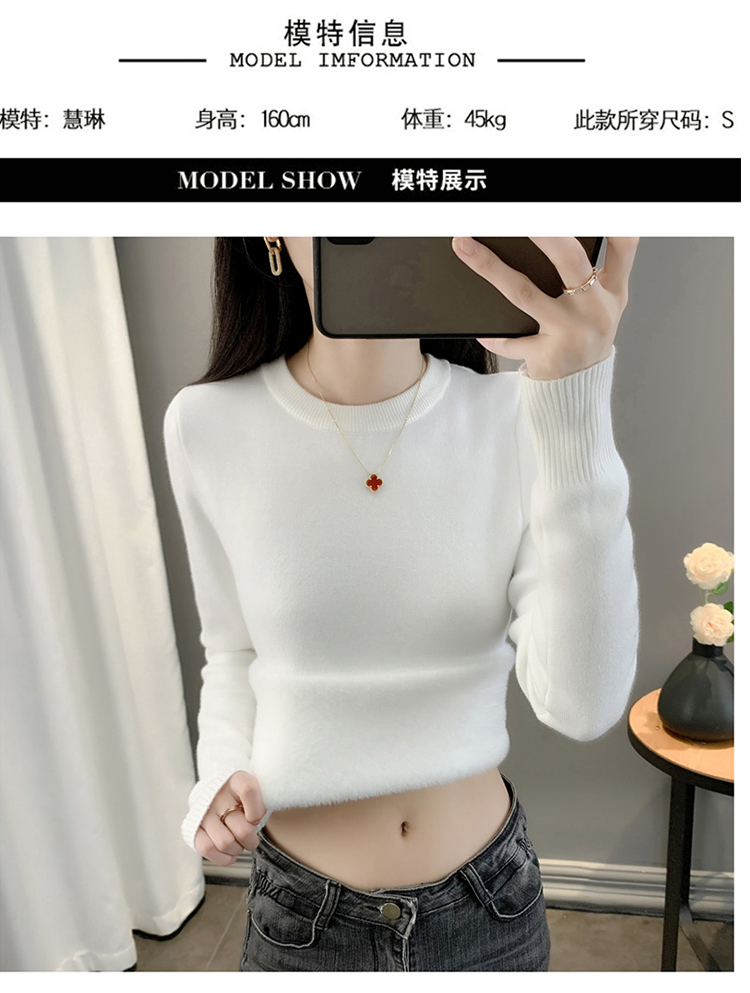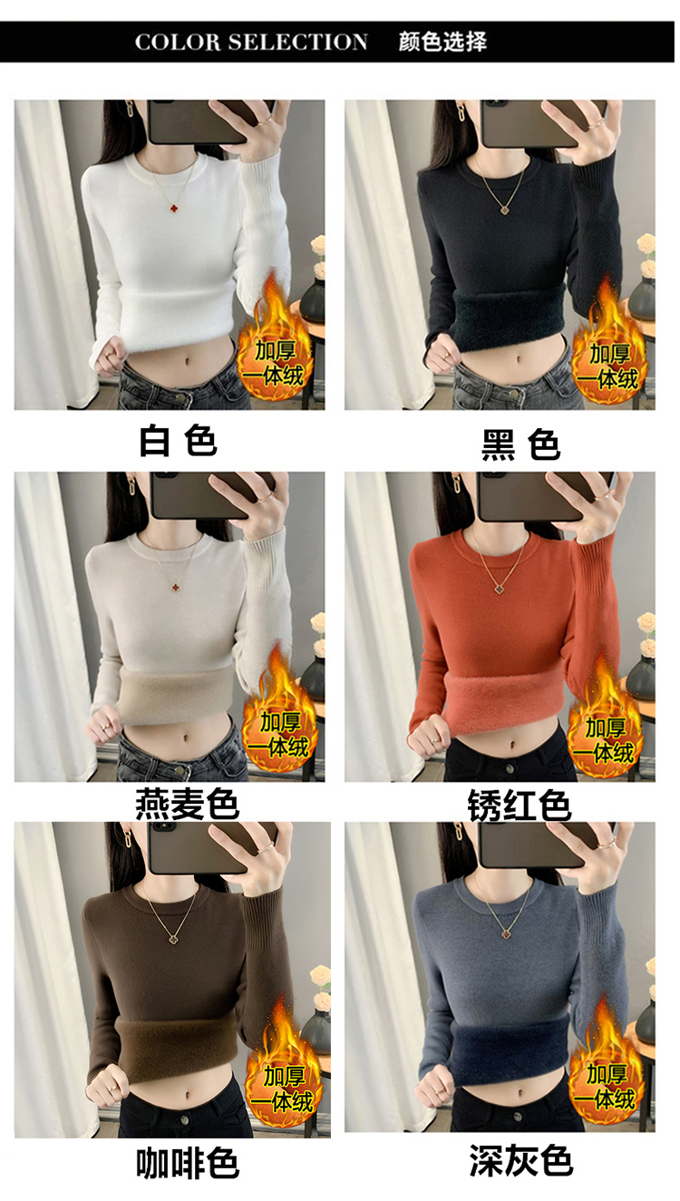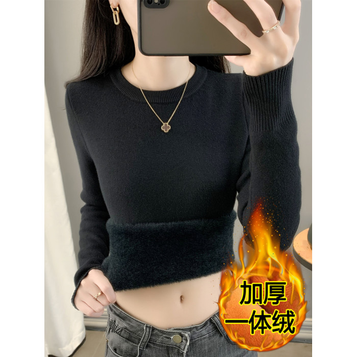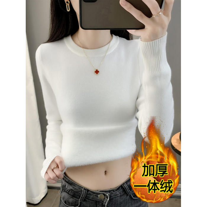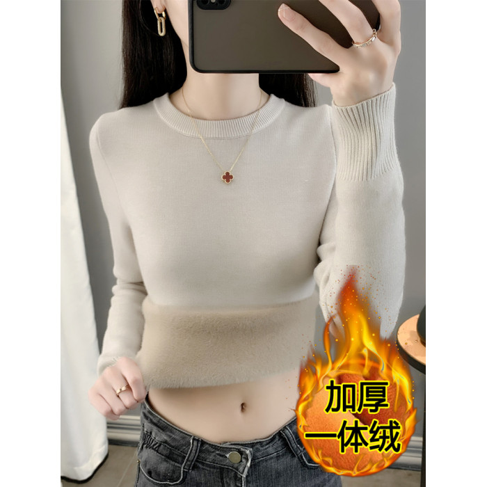 毛衣女秋冬一體絨加絨加厚打底衫內搭套頭針織衫圓領長袖保暖上衣