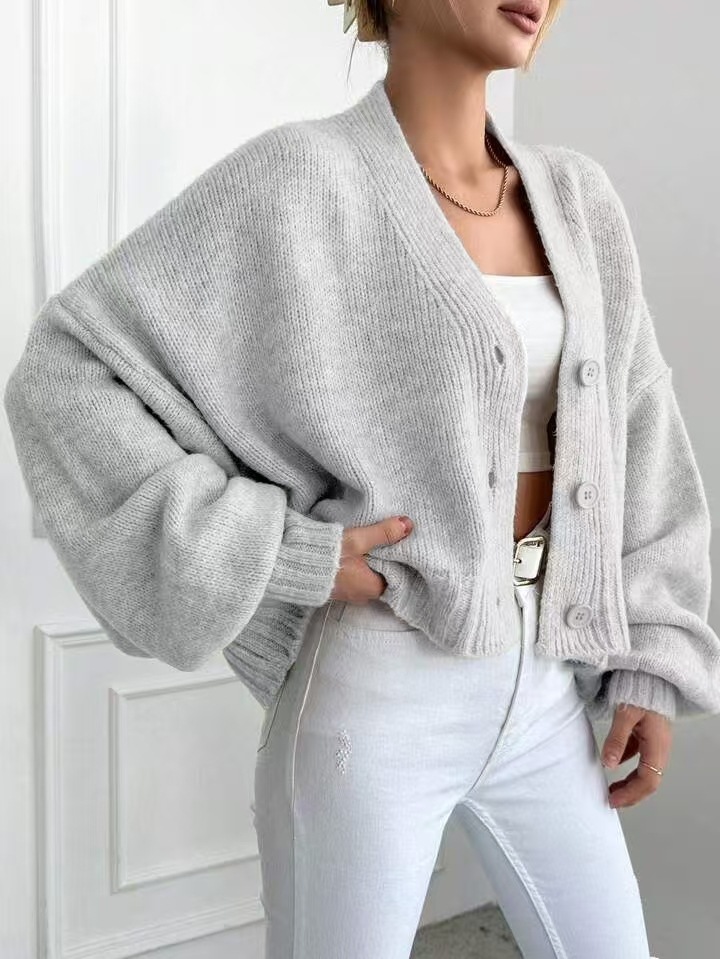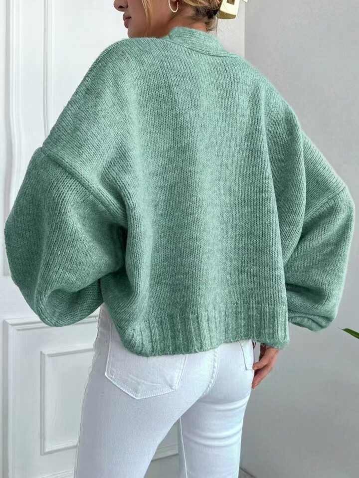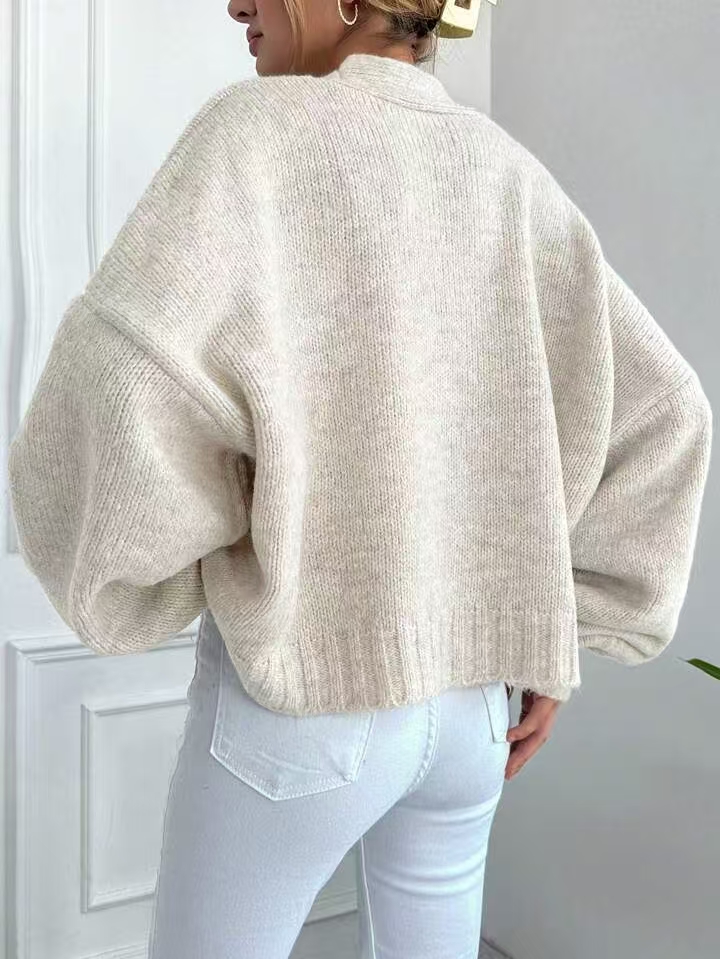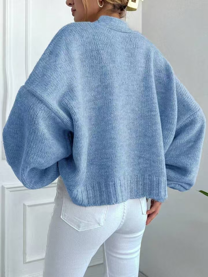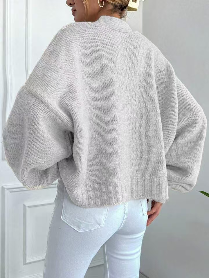 歐美風新款時尚百搭寬松燈籠袖針織毛衣開衫外套 Knitted sweater
