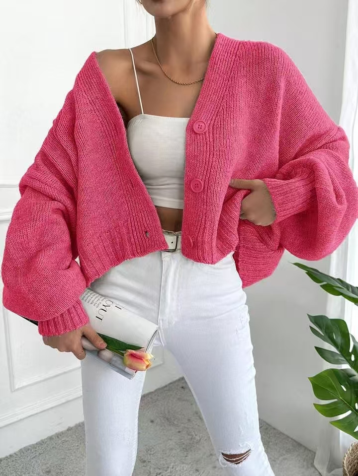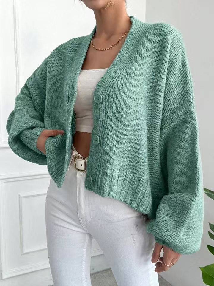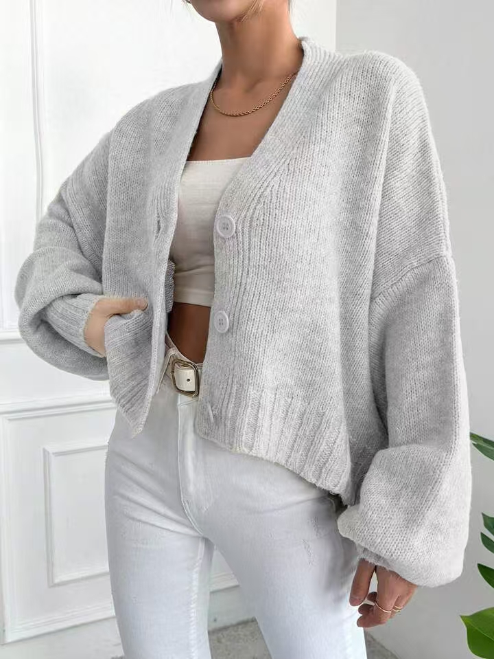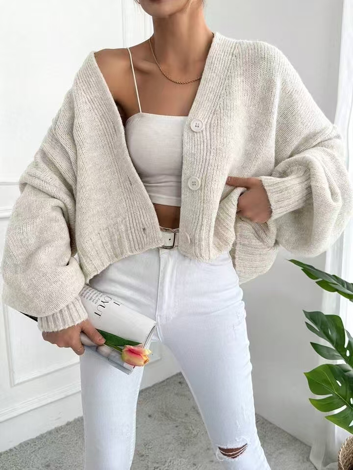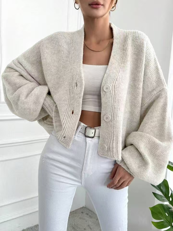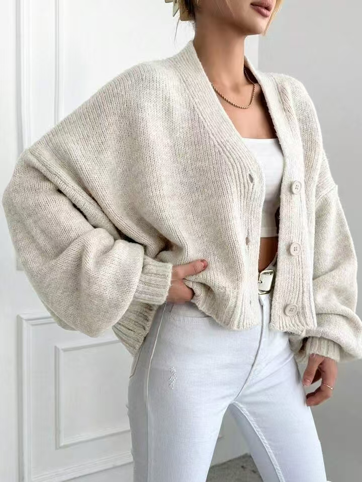 歐美風新款時尚百搭寬松燈籠袖針織毛衣開衫外套 Knitted sweater