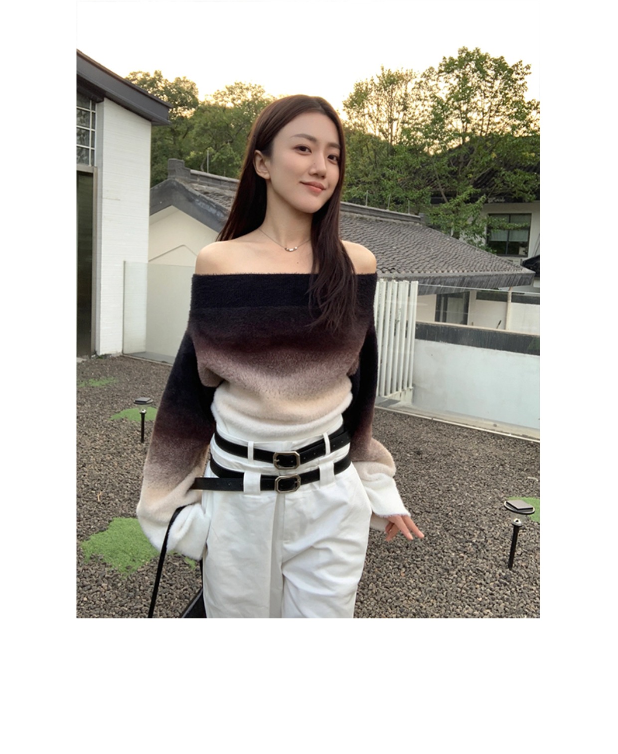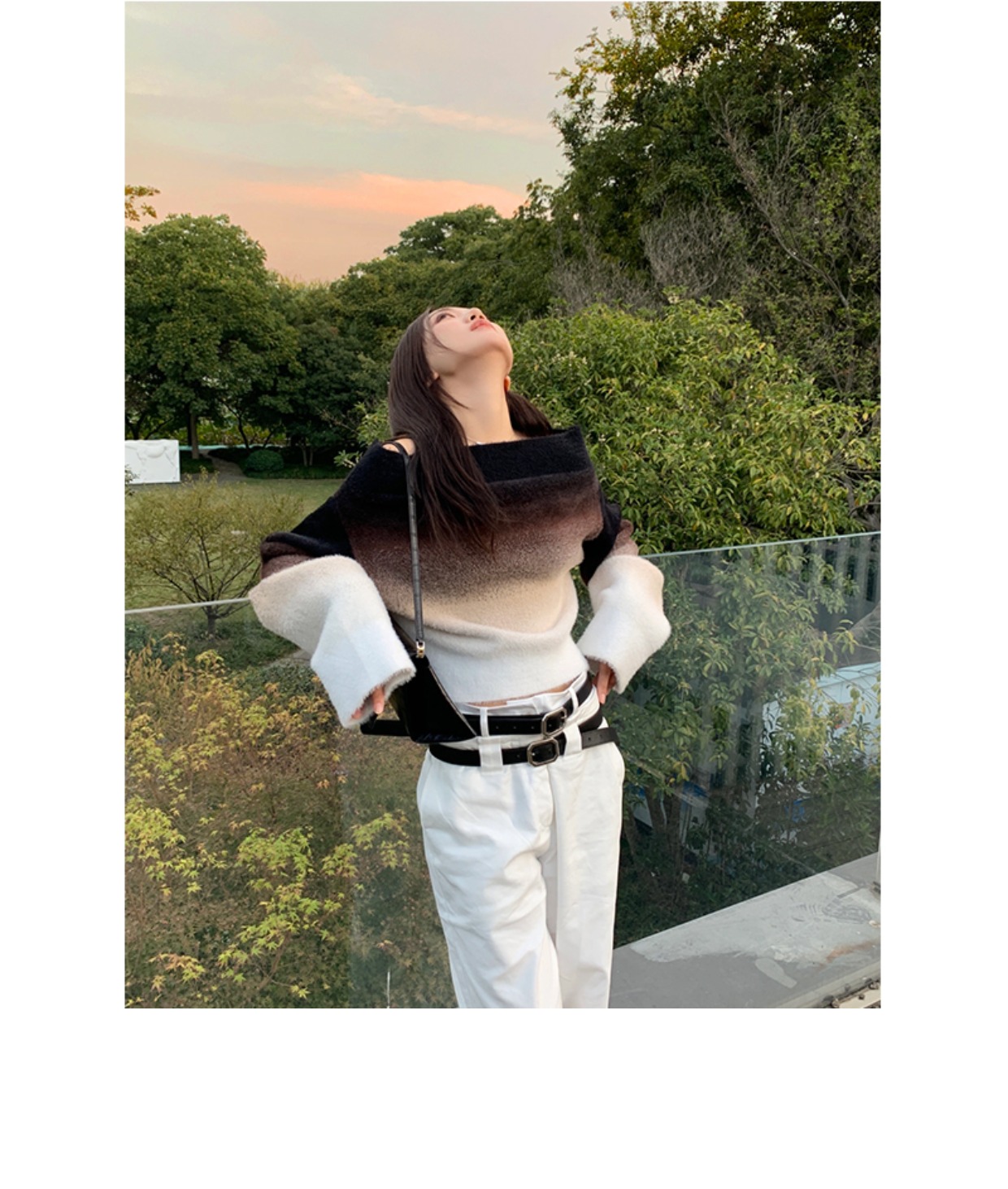 Exclusive type 純欲辣妹一字領漏肩毛衣外套女ins潮性感兩穿上衣