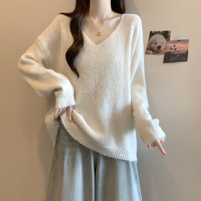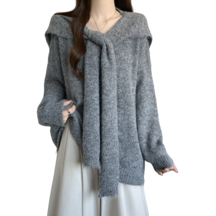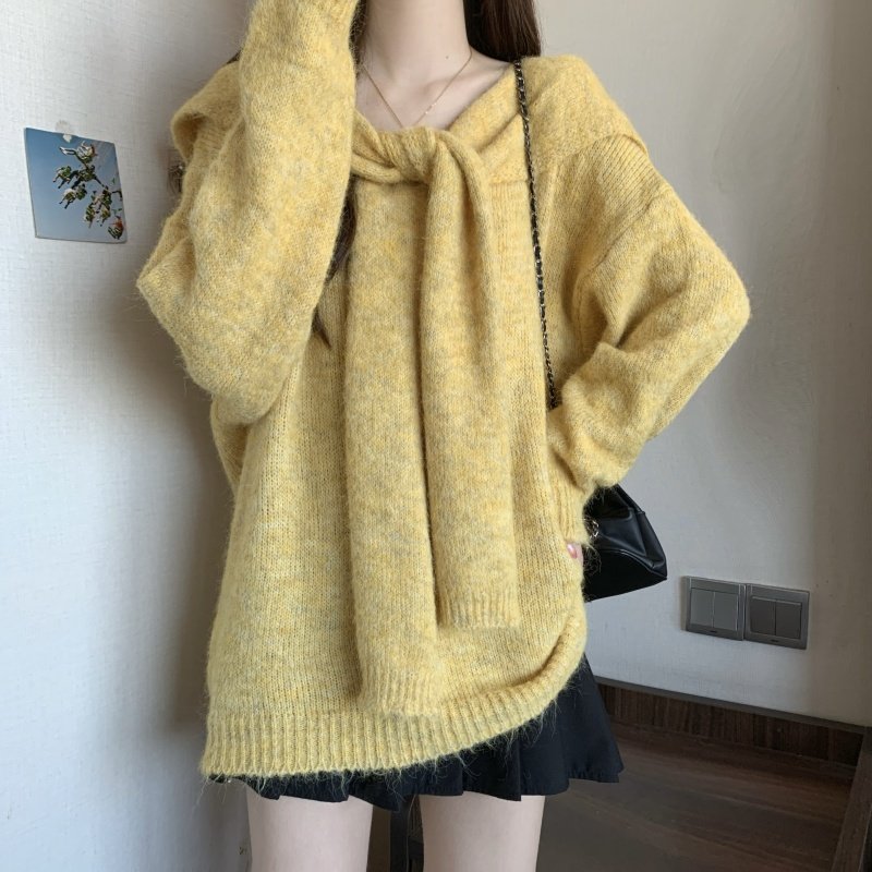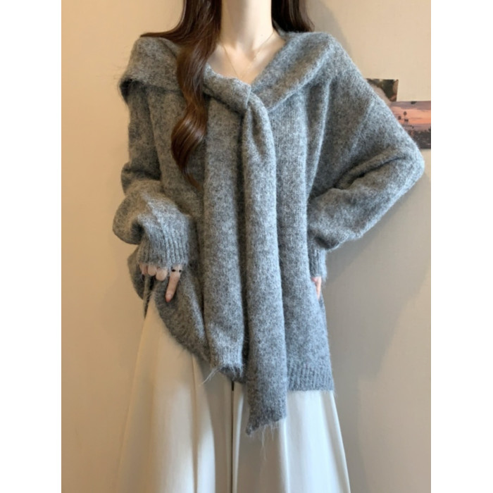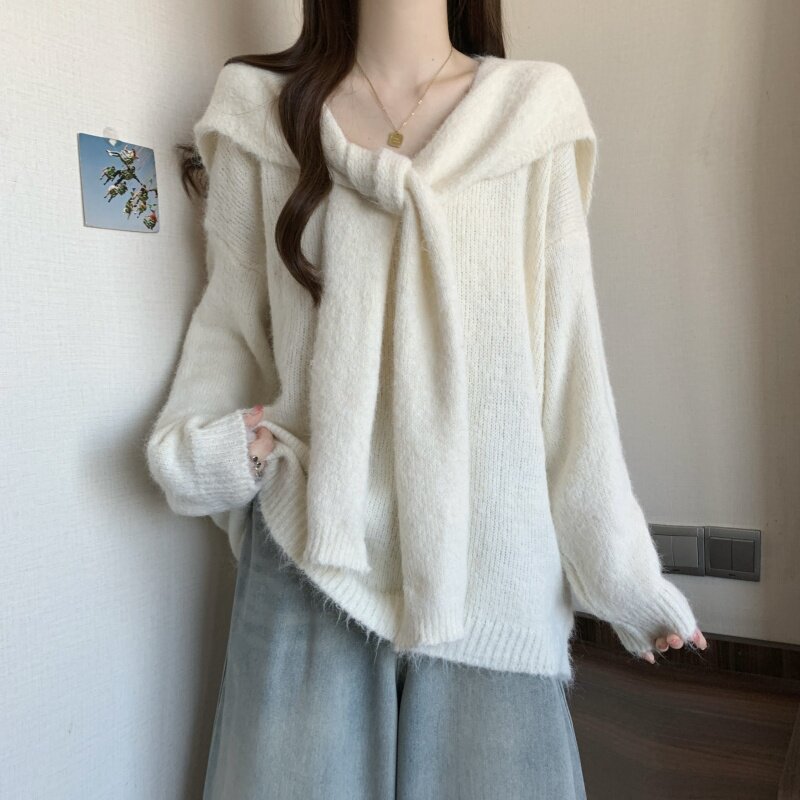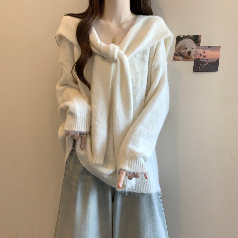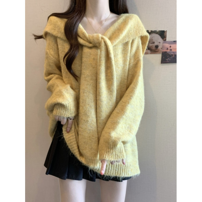 奶呼呼軟糯針織衫女春秋大碼胖mm寬松慵懶風毛衣披肩海軍領兩件套