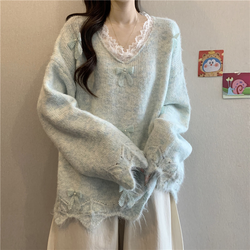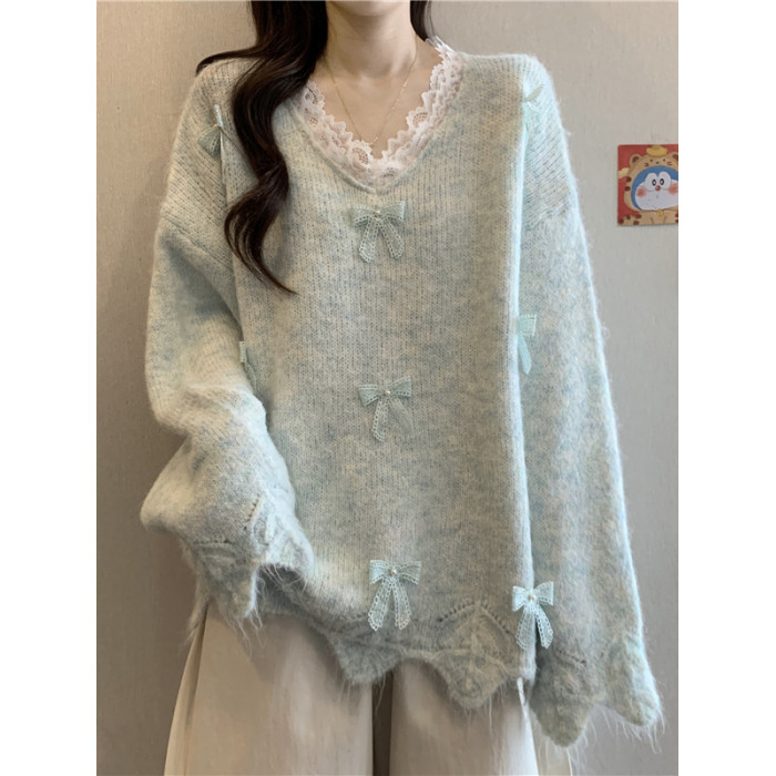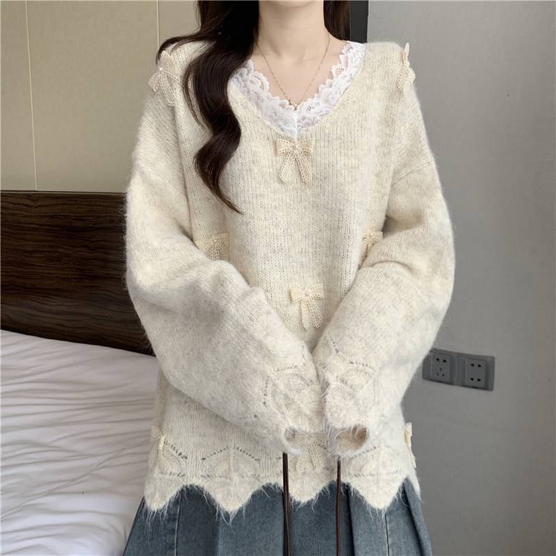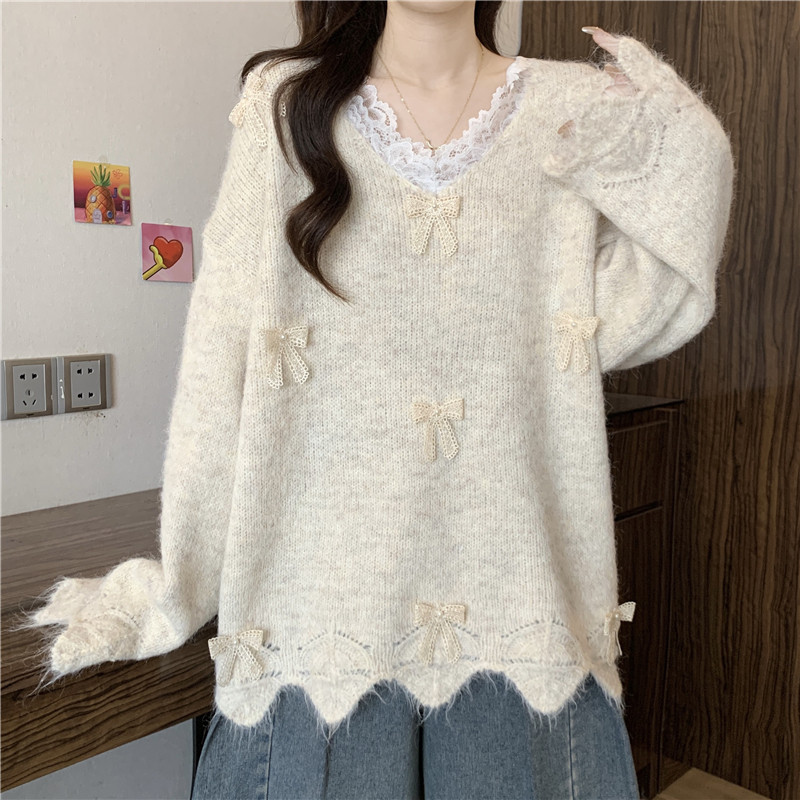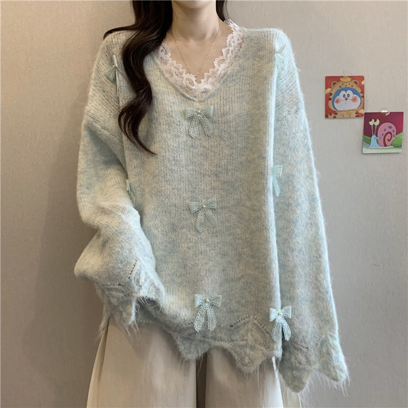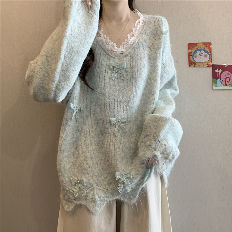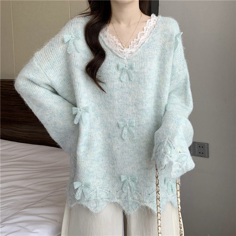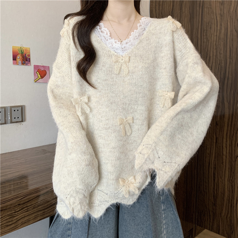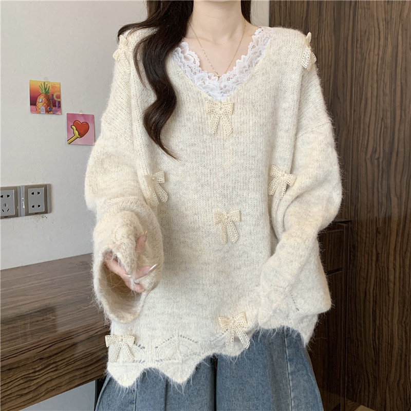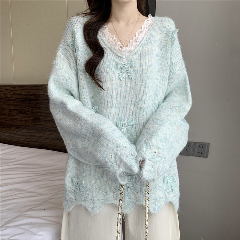 巨好看蕾絲V領灰色毛衣秋季2025新款大碼女裝胖mm長袖針織衫上衣