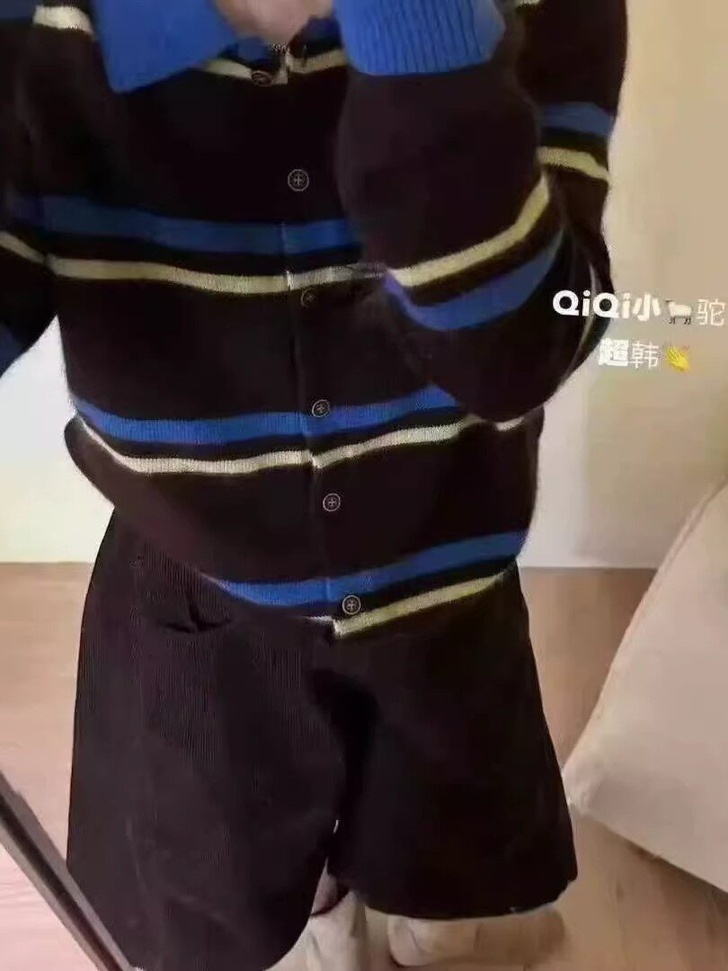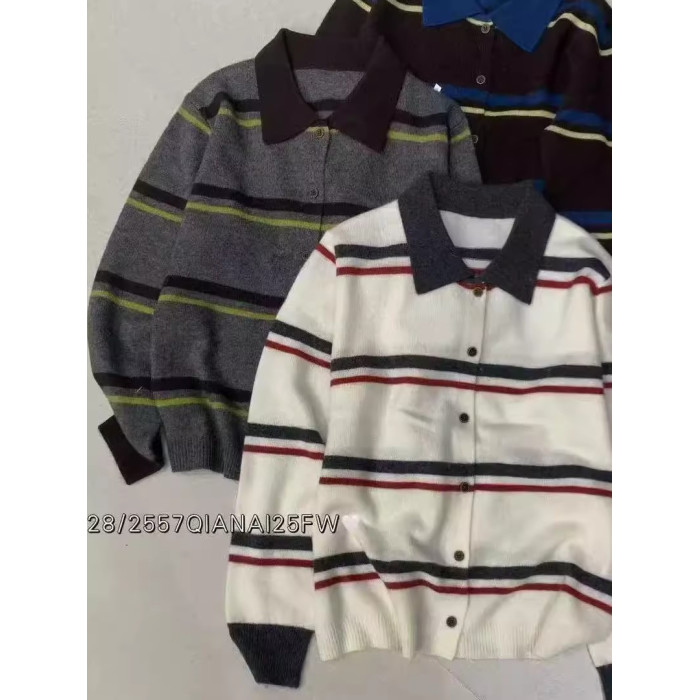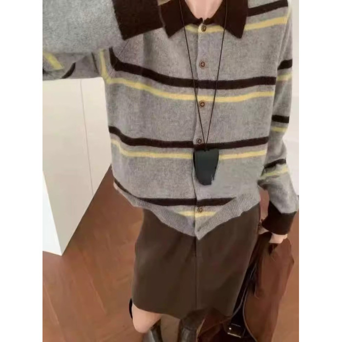 韓國東大門秋冬新款圓領撞色氛圍感針織衫女寬松顯瘦百搭毛衣上衣