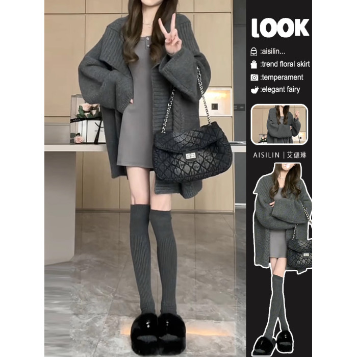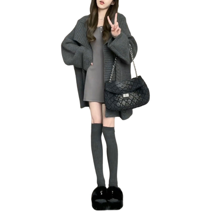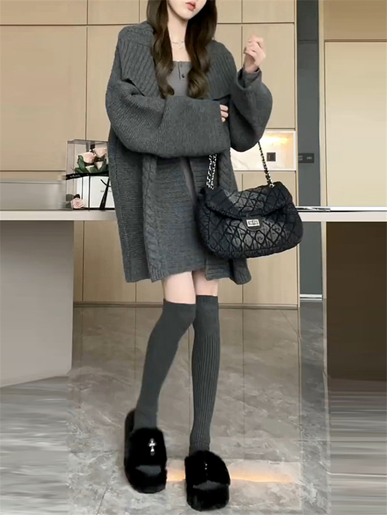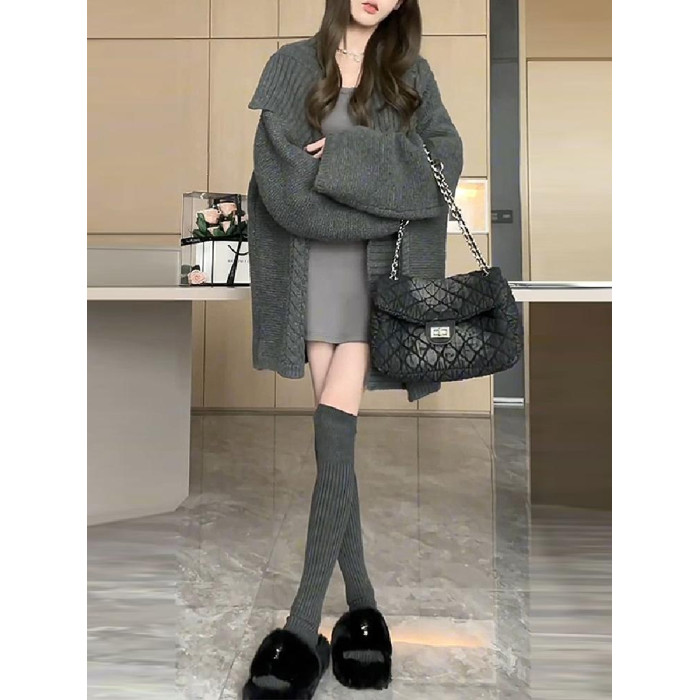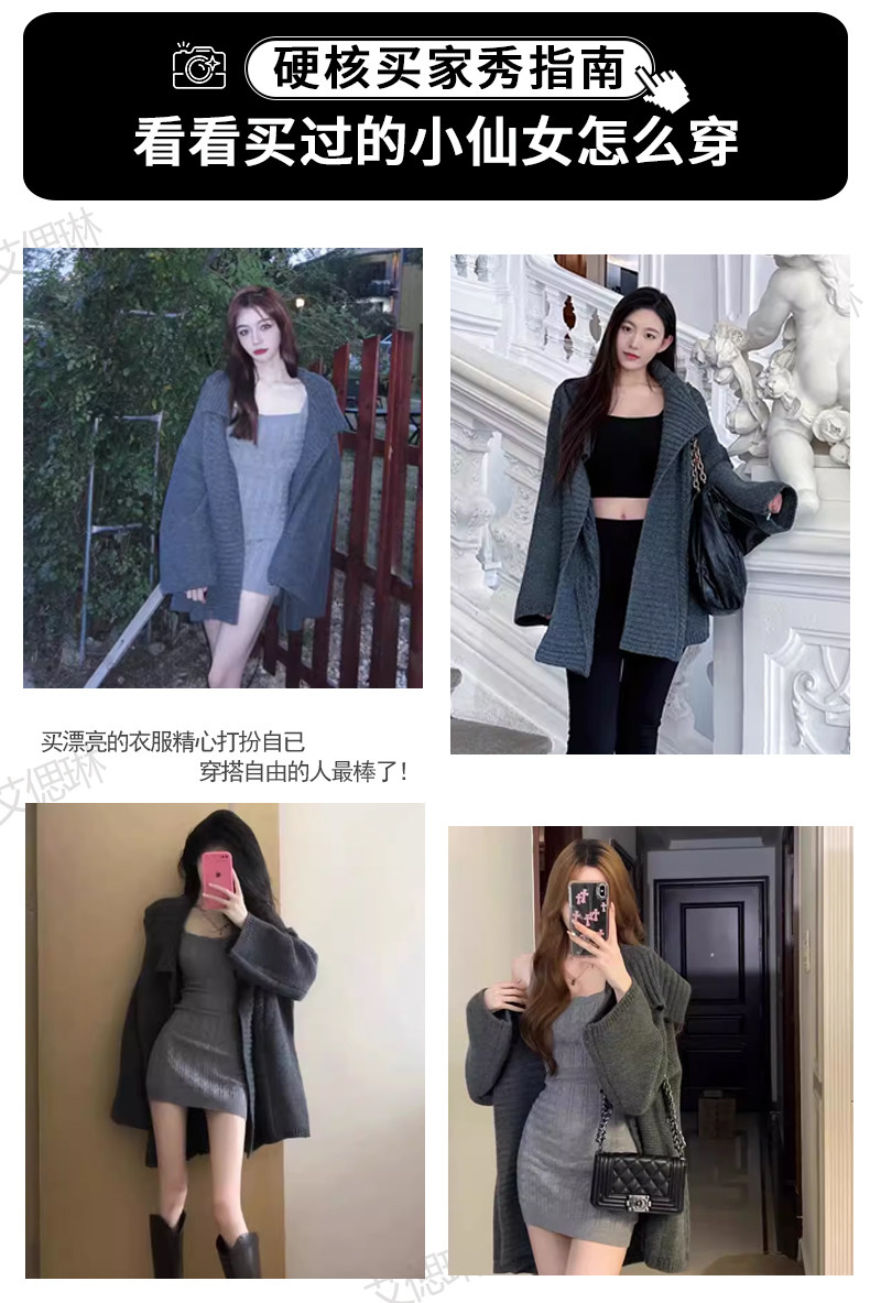 灰色慵懶風毛衣外套女秋冬季2025新款高級感寬松加厚針織開衫上衣