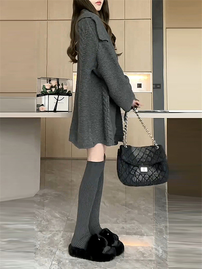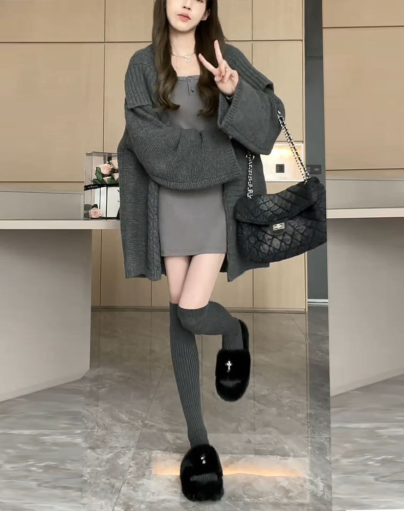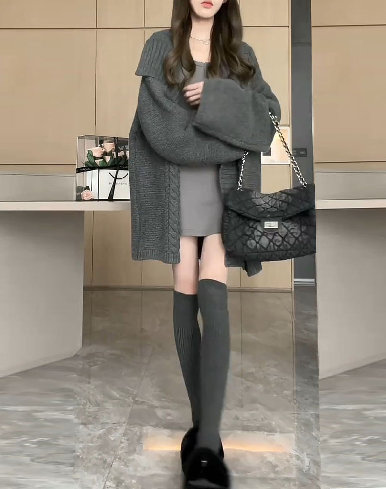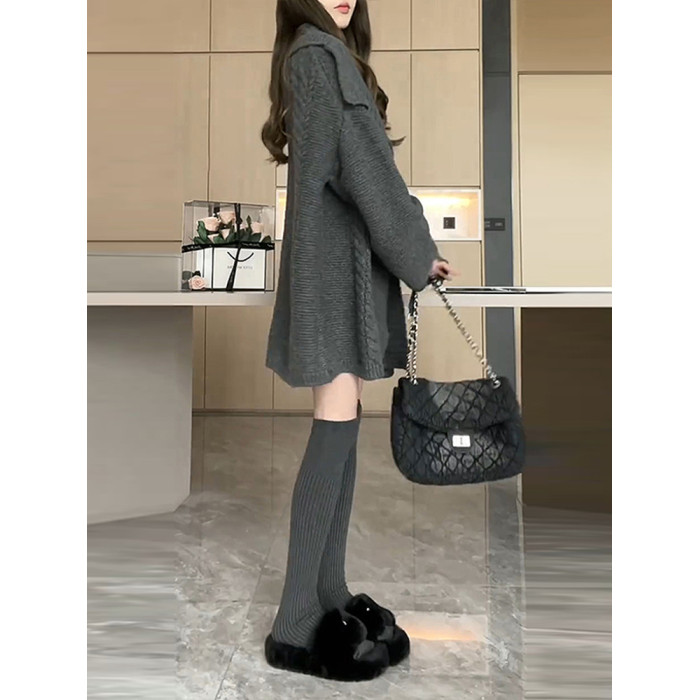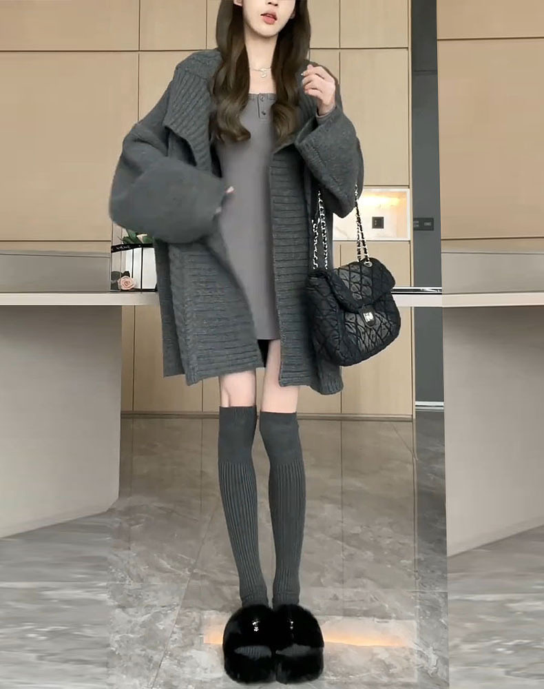 灰色慵懶風毛衣外套女秋冬季2025新款高級感寬松加厚針織開衫上衣