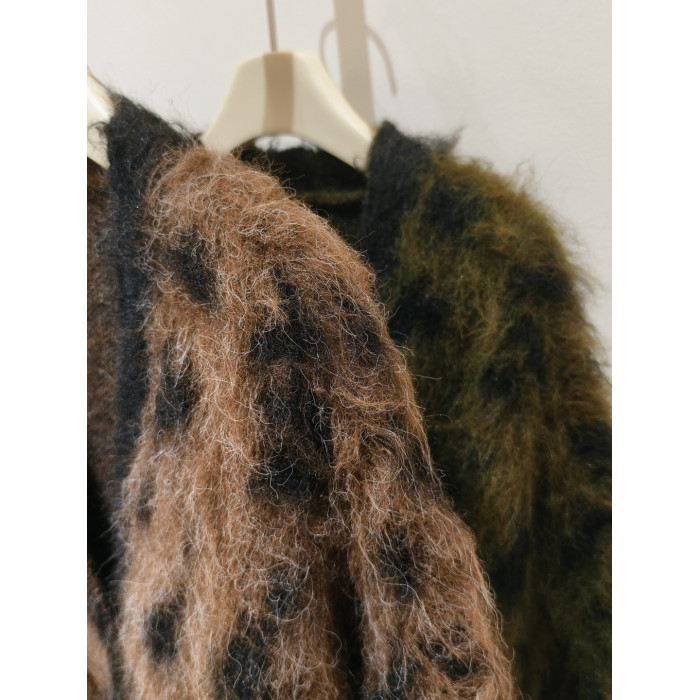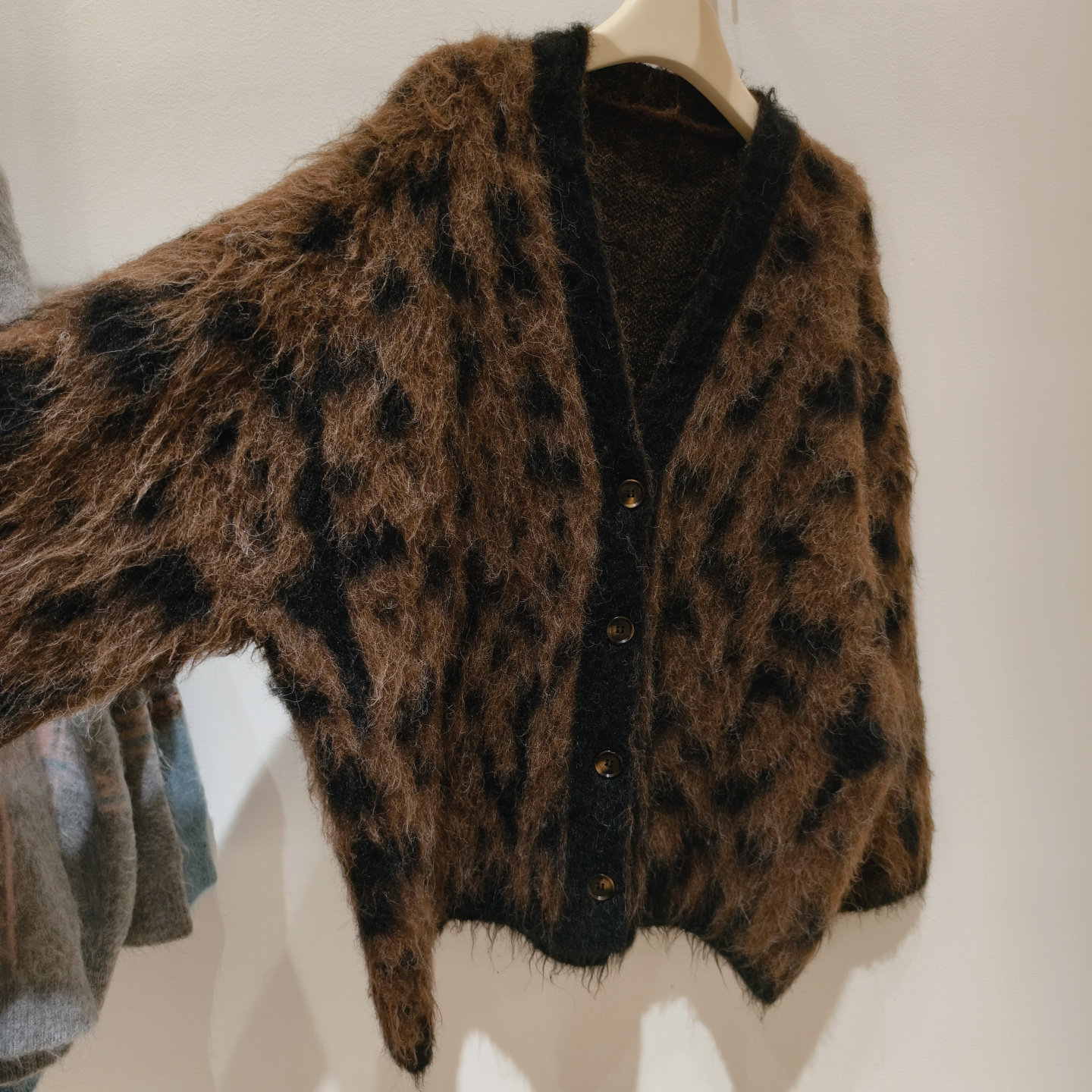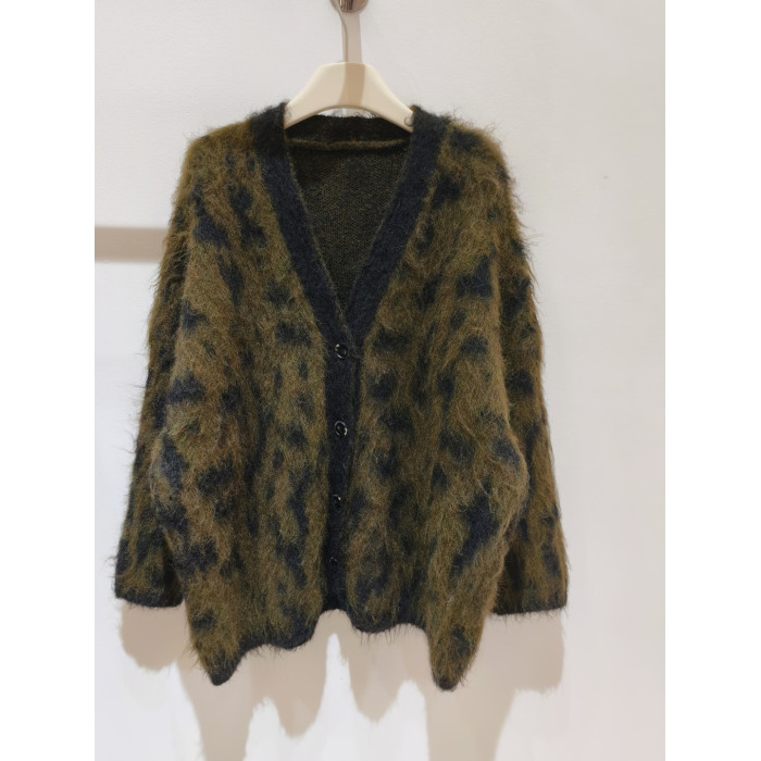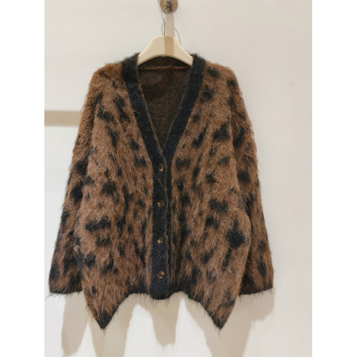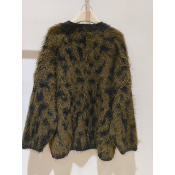 美式松弛感時髦豹紋毛衣外套女秋冬新款毛絨針織開衫慵懶寬松上衣