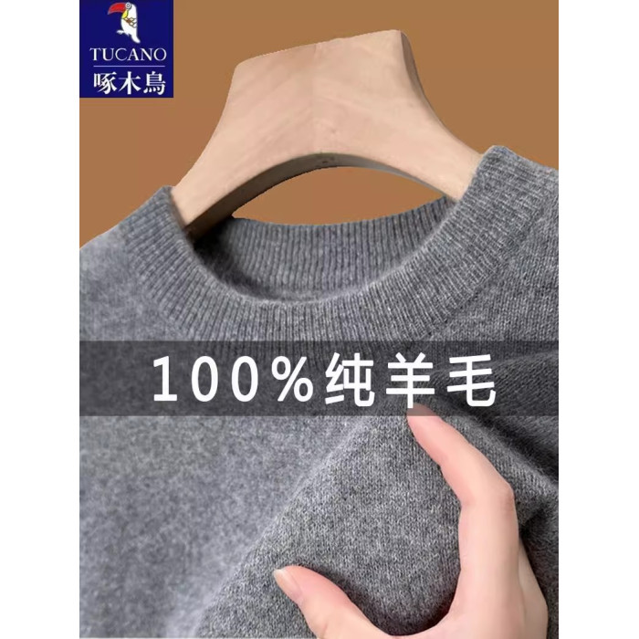 啄木鳥冬季羊毛衫男士圓領加厚毛衣加絨半高領針織衫中年羊絨線衫