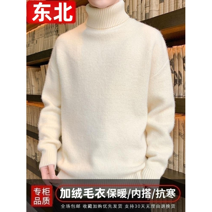 零下40度防寒高領東北毛衣男士寬松加絨加厚款冬季保暖打底針織衫