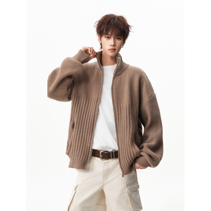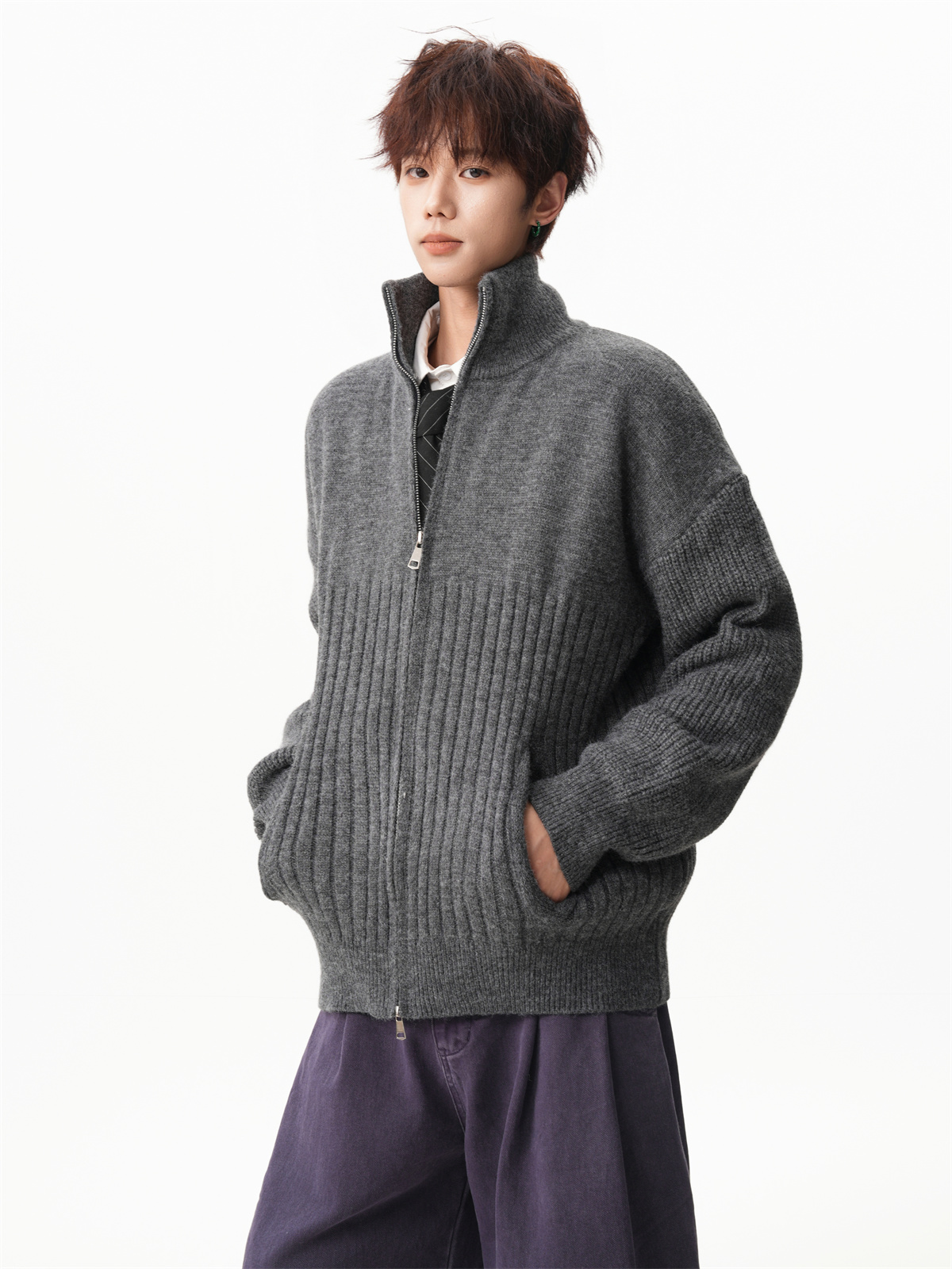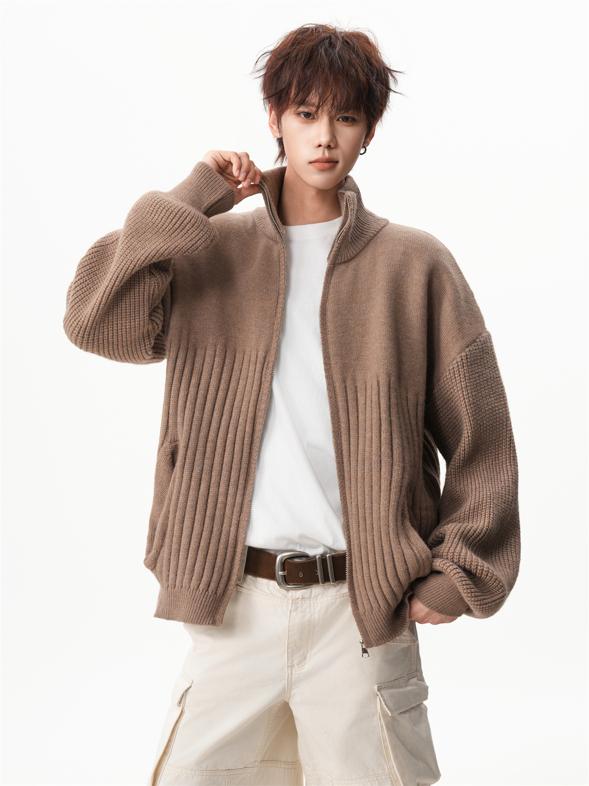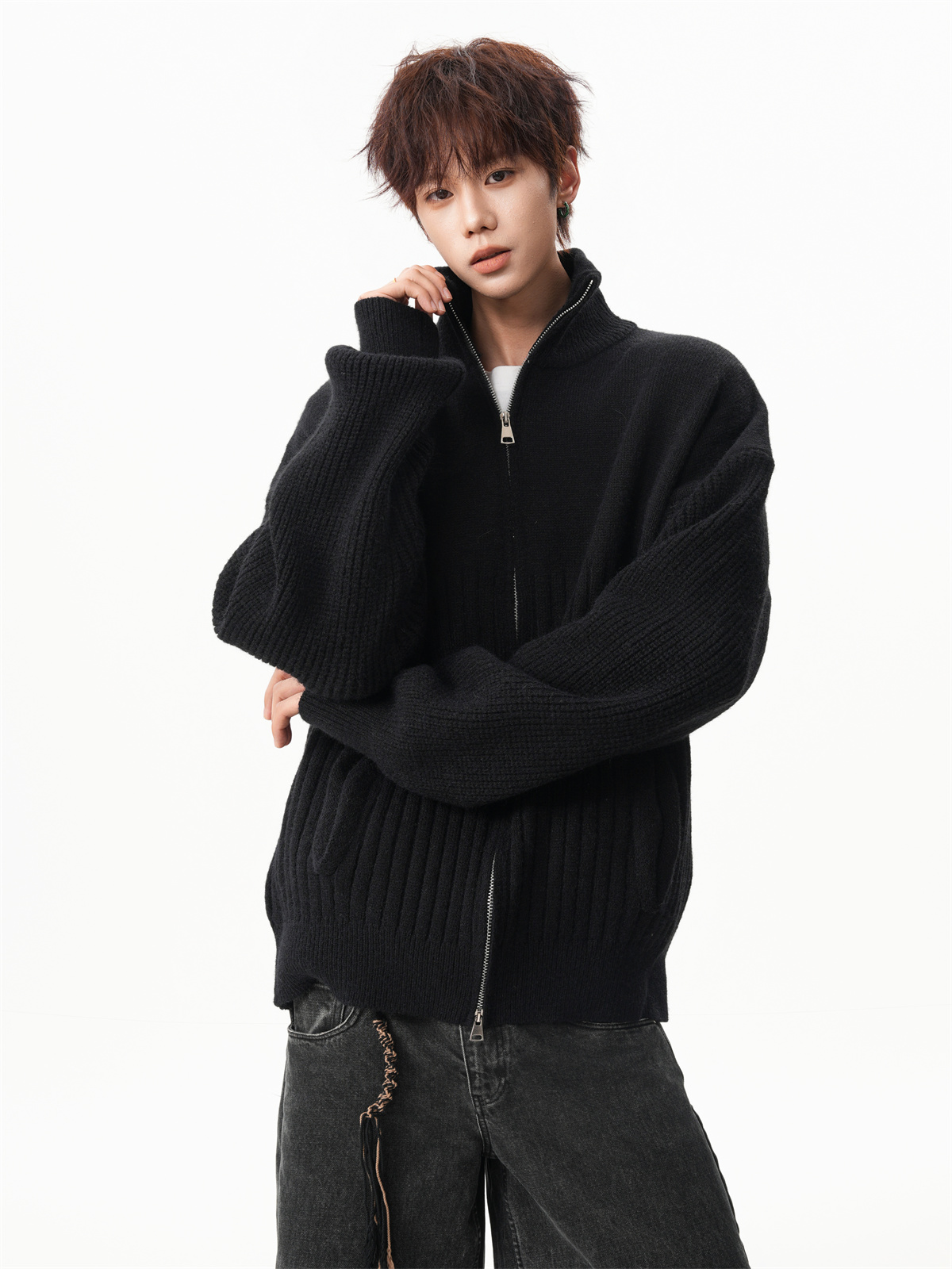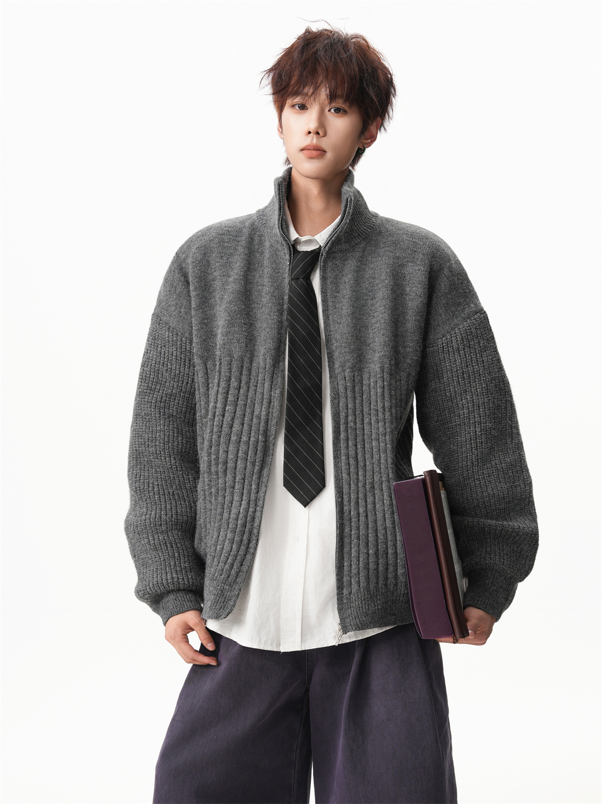 美拉德肌理感毛衣開衫男女秋冬cleanfit寬松慵懶感大碼立領針織衫