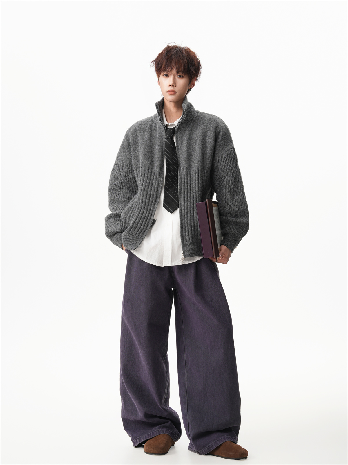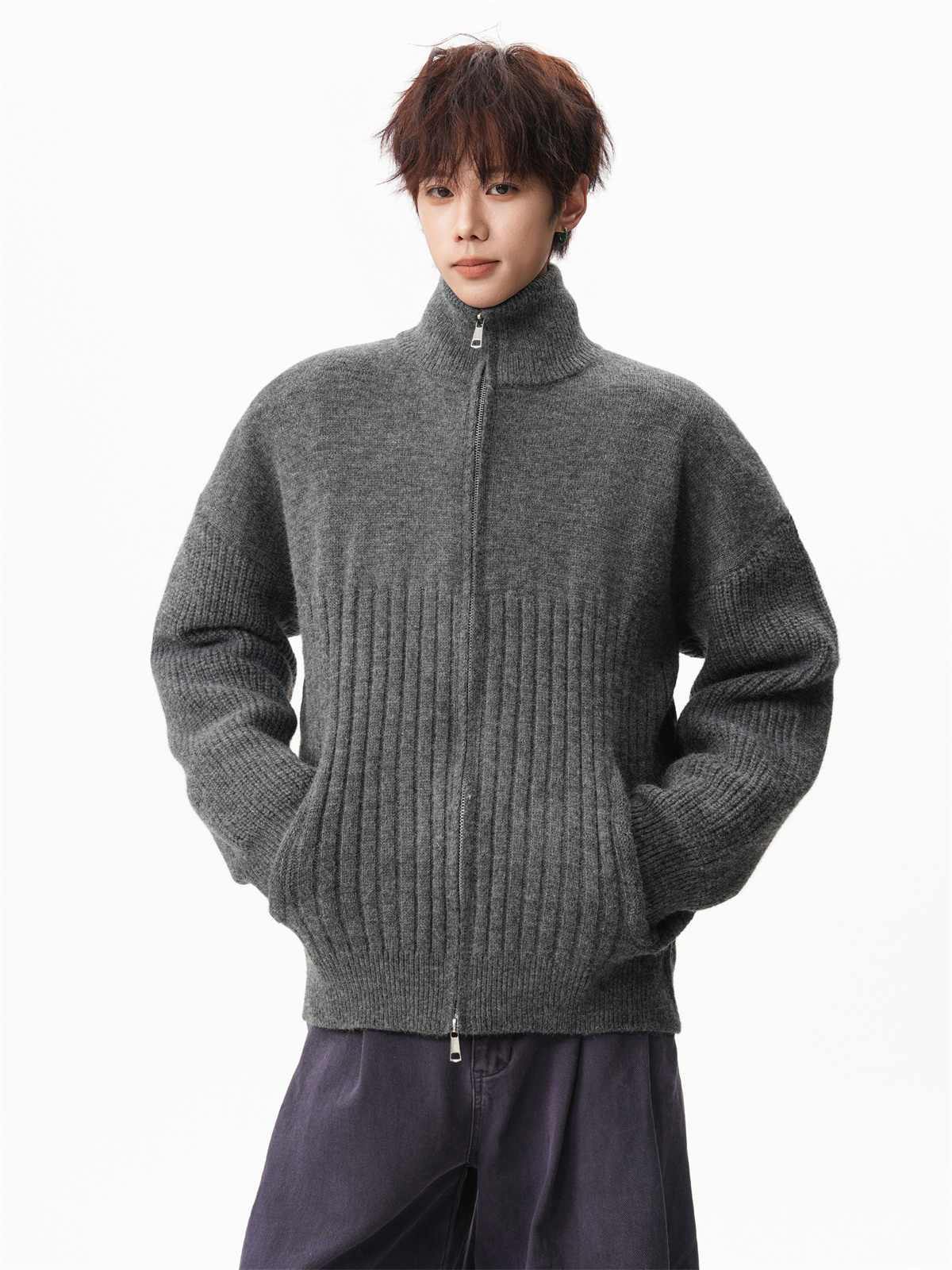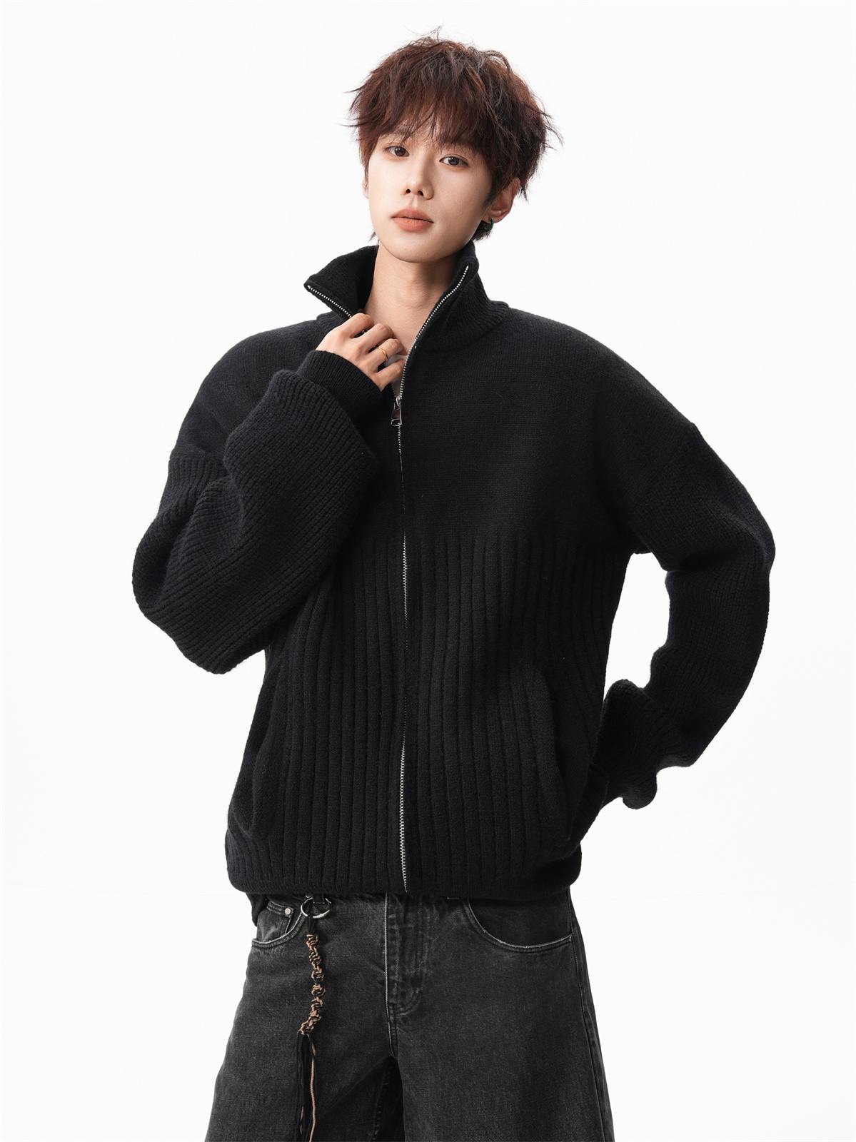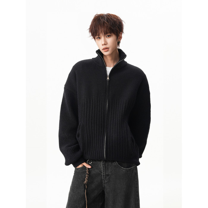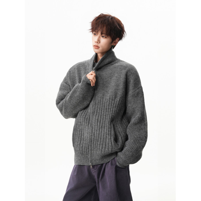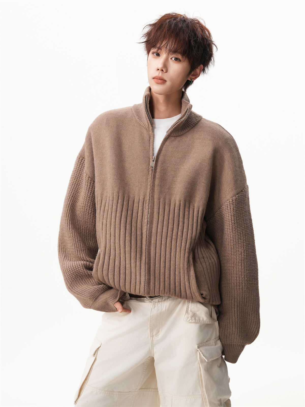 美拉德肌理感毛衣開衫男女秋冬cleanfit寬松慵懶感大碼立領針織衫