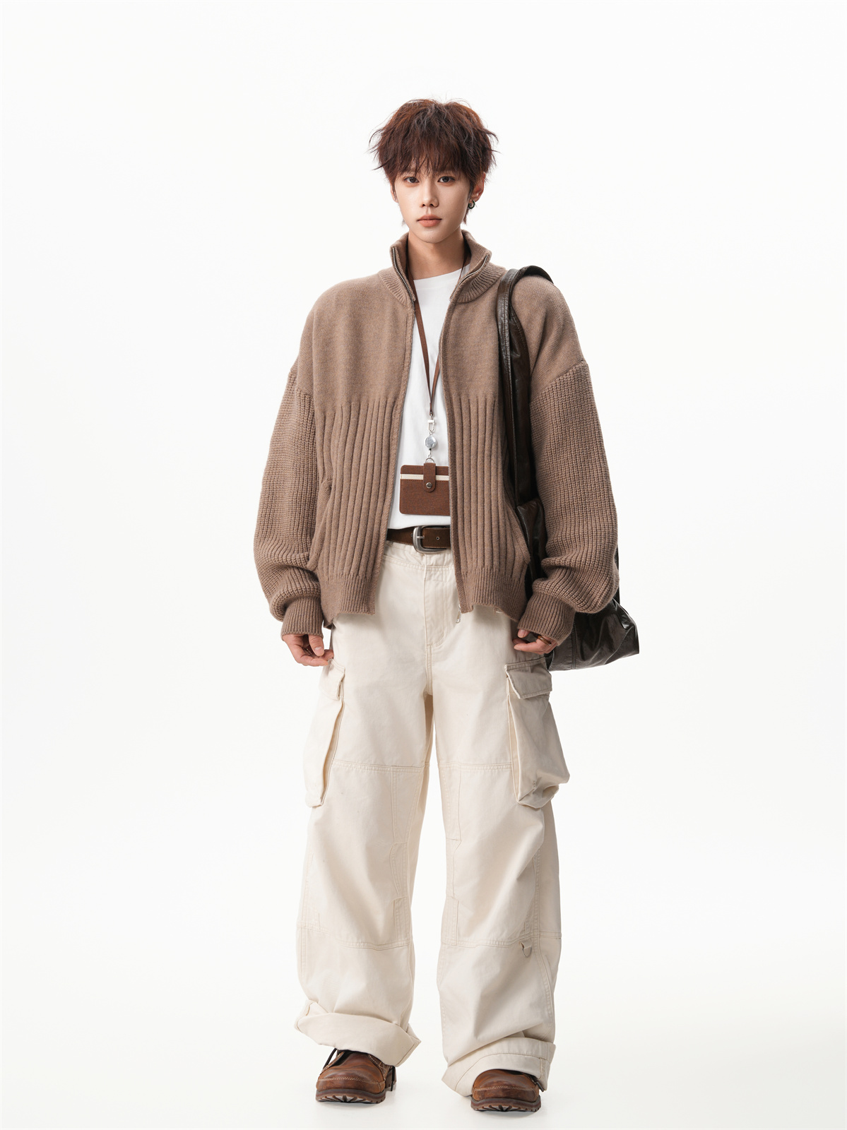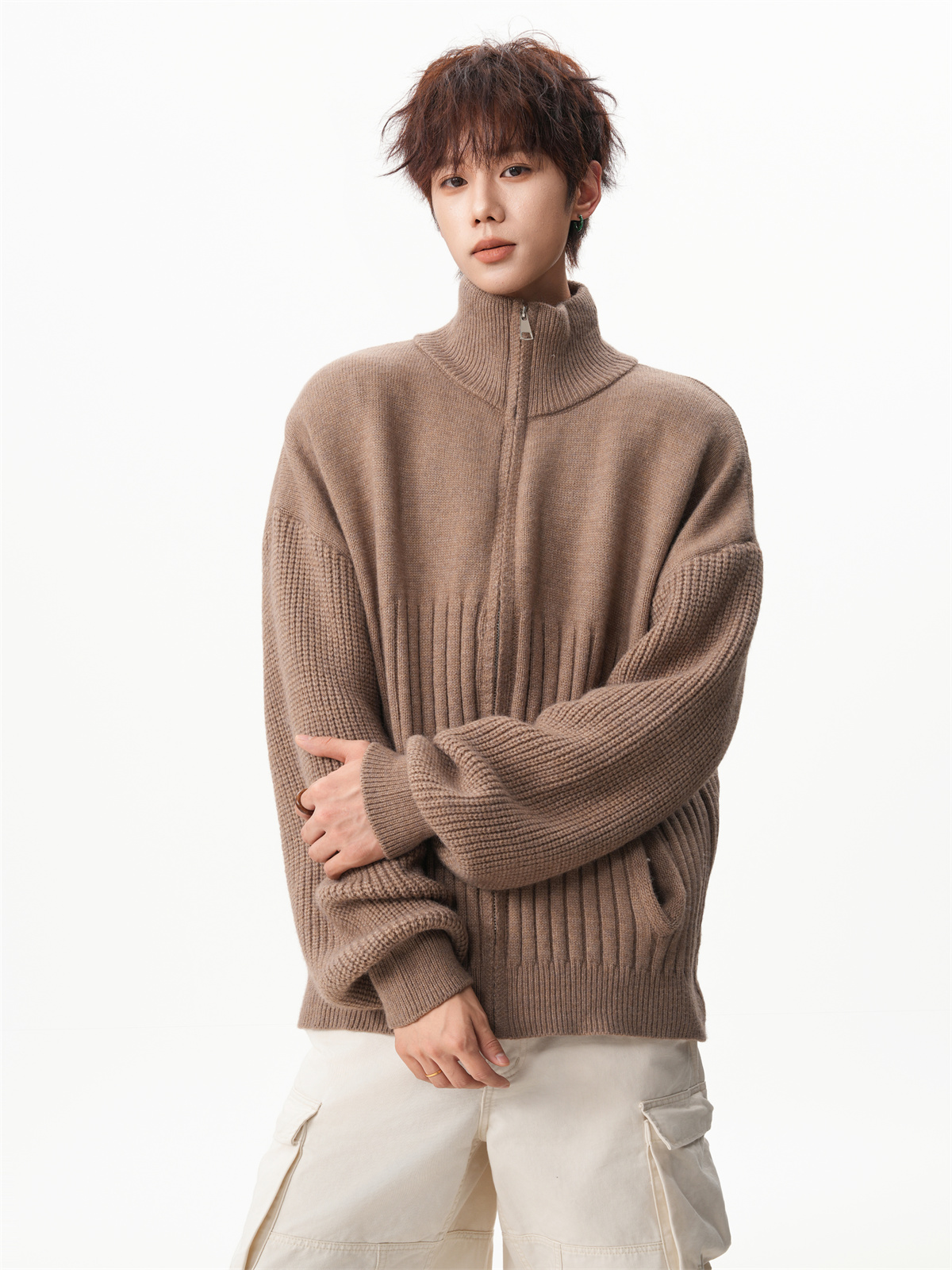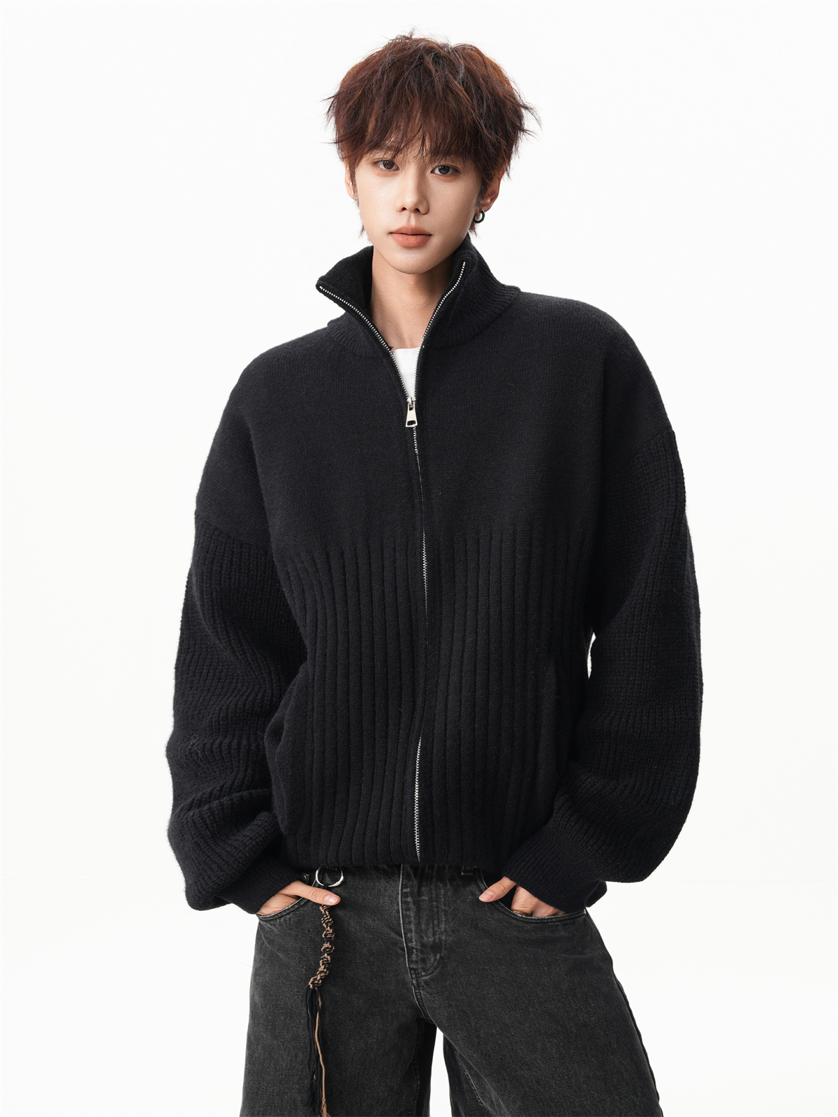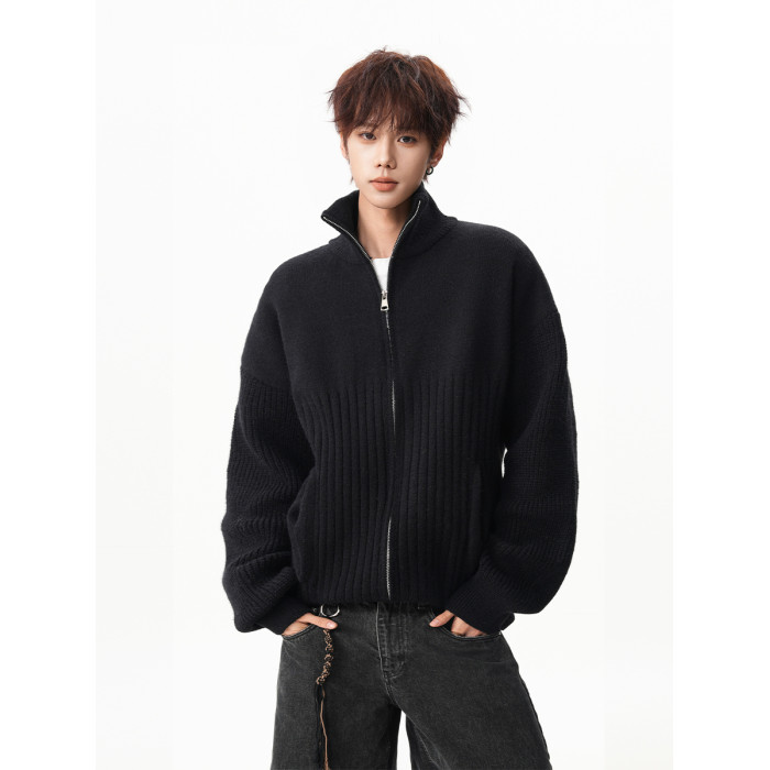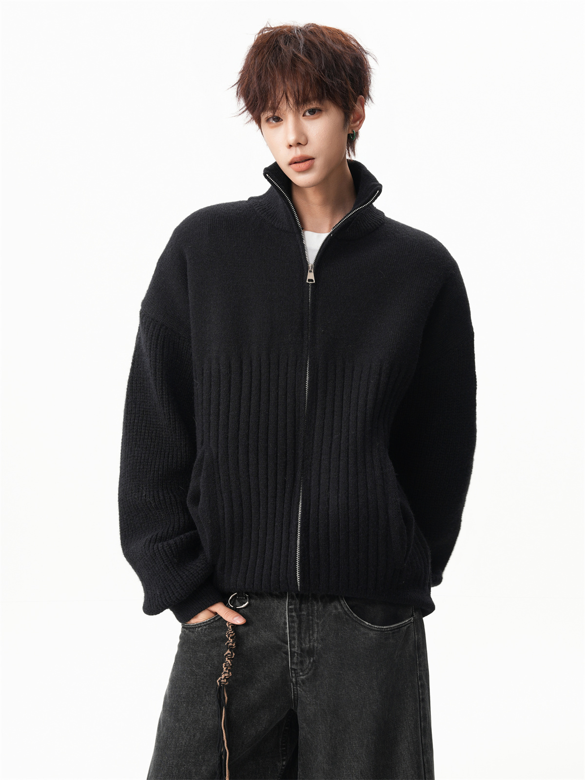 美拉德肌理感毛衣開衫男女秋冬cleanfit寬松慵懶感大碼立領針織衫