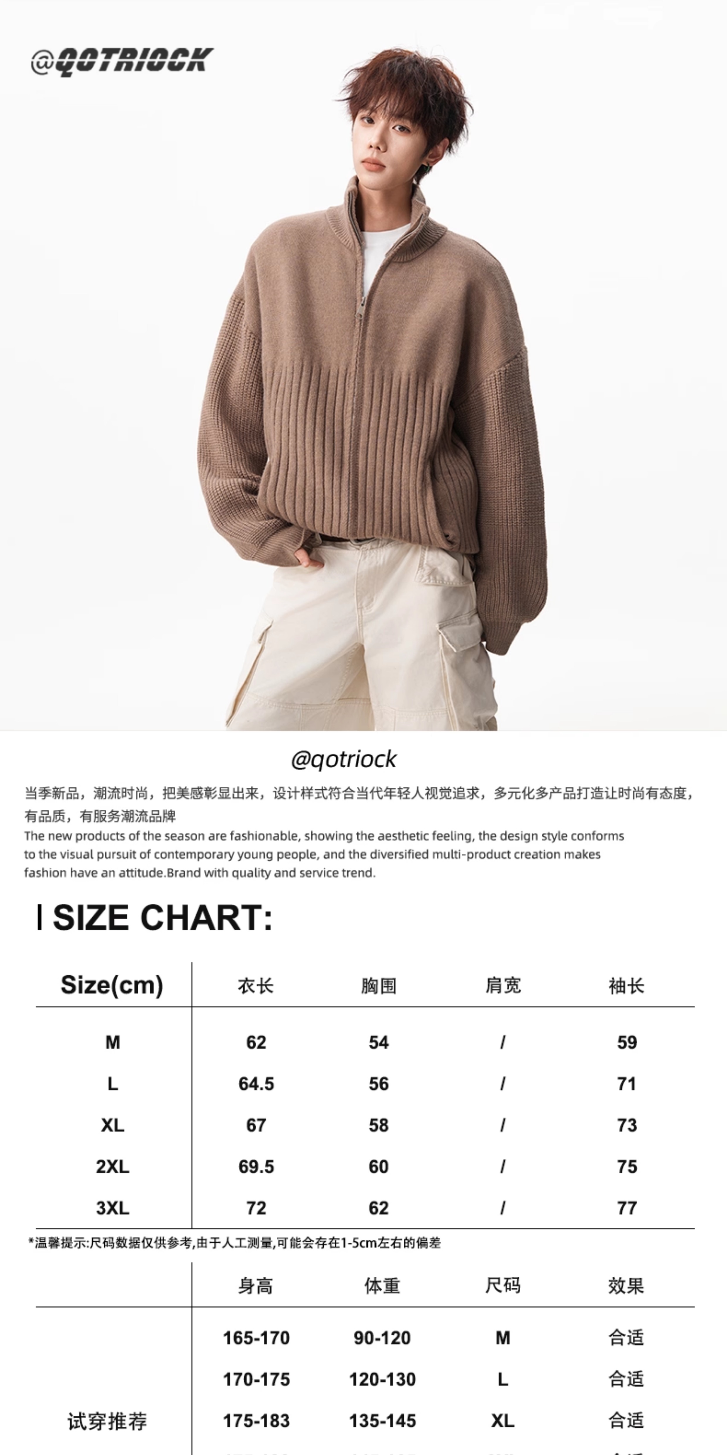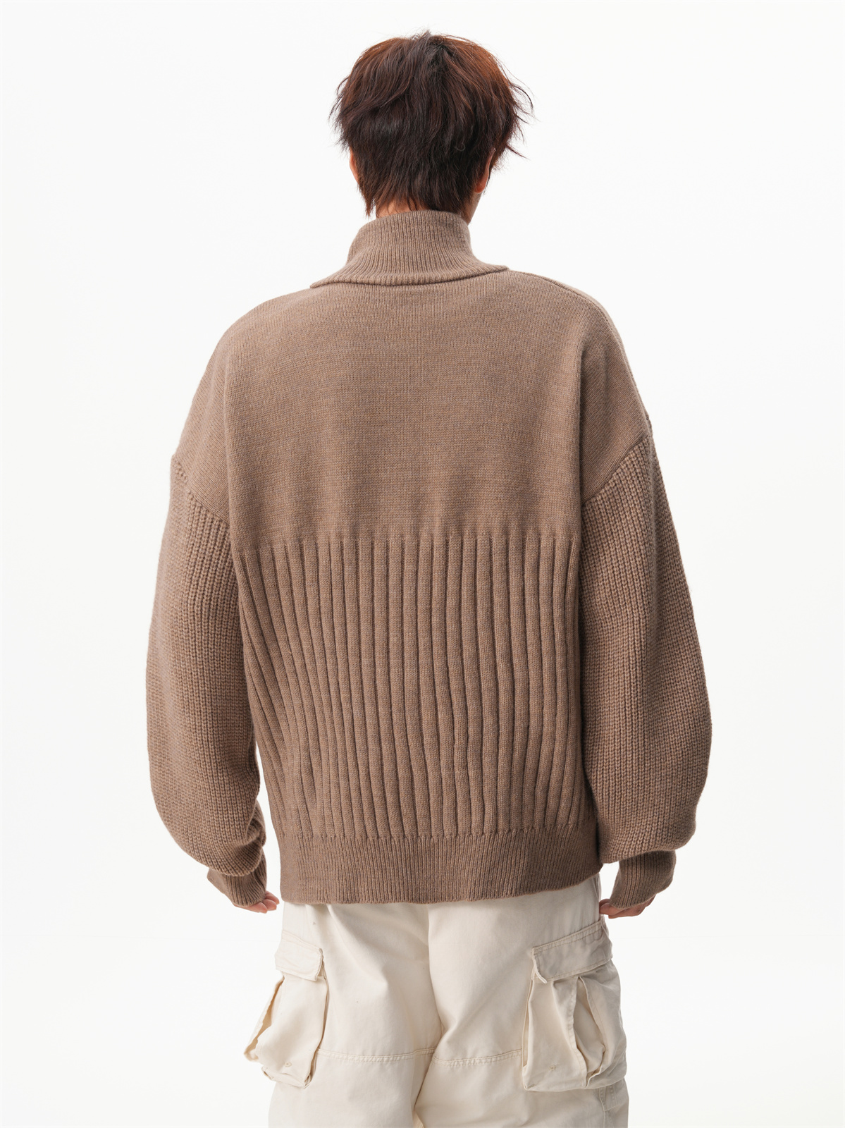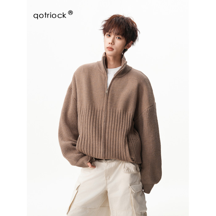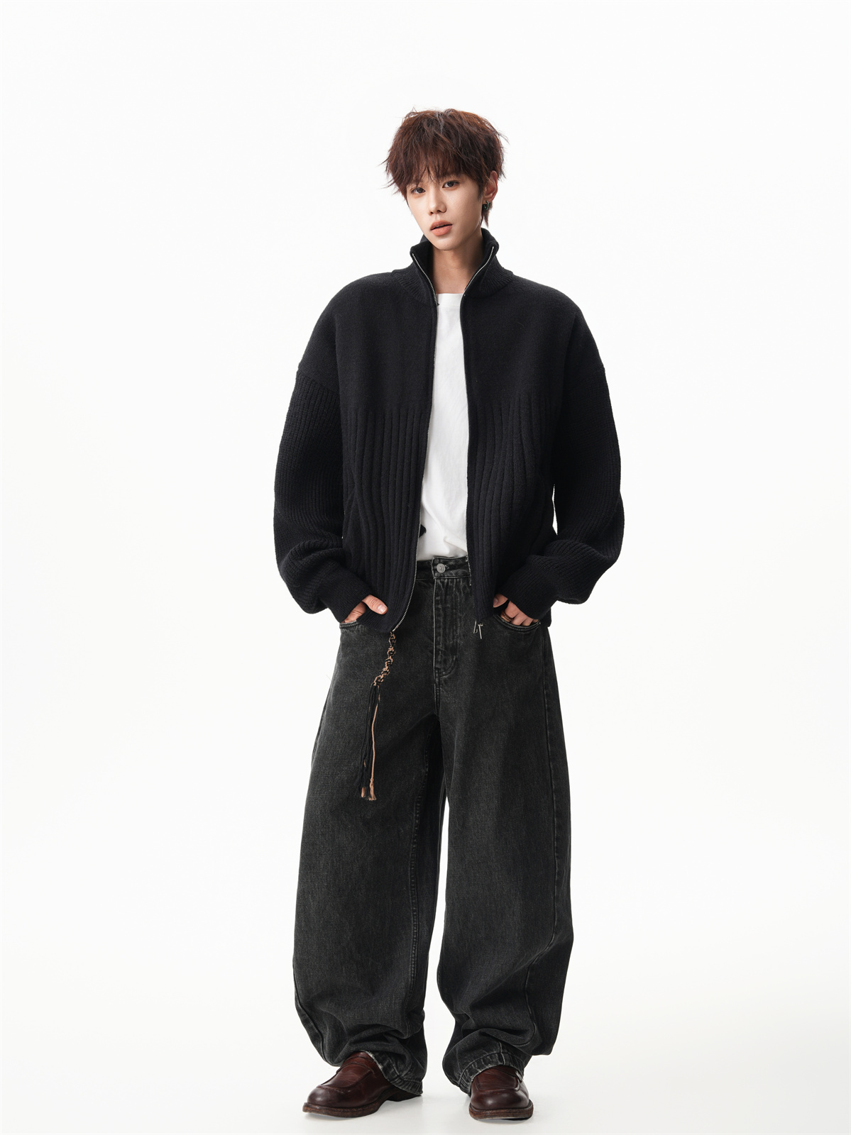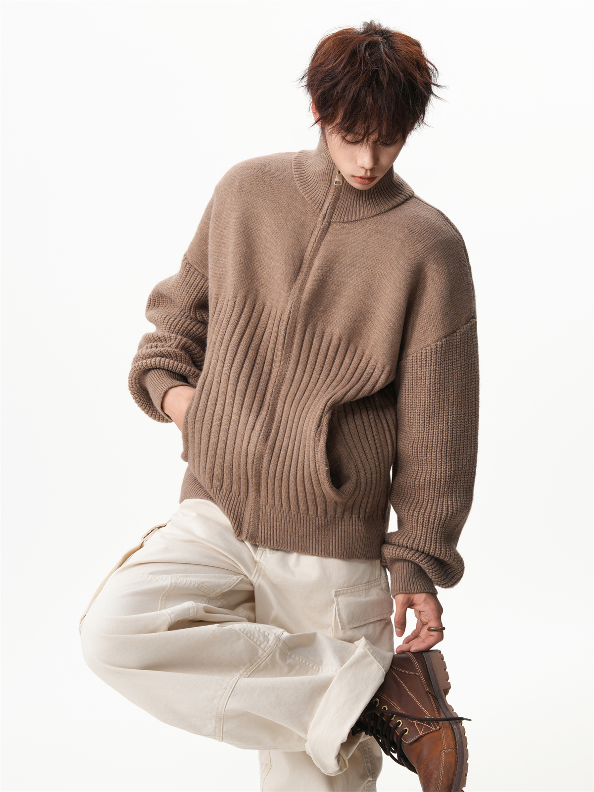 美拉德肌理感毛衣開衫男女秋冬cleanfit寬松慵懶感大碼立領針織衫