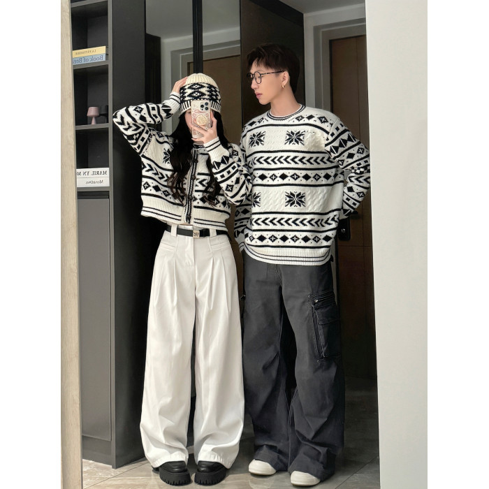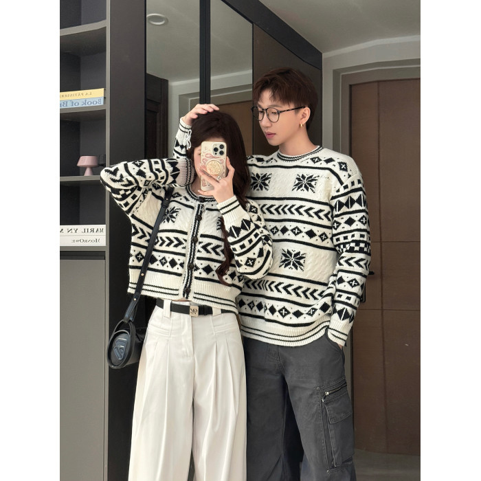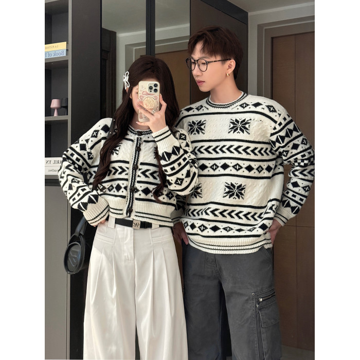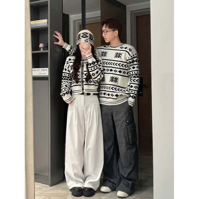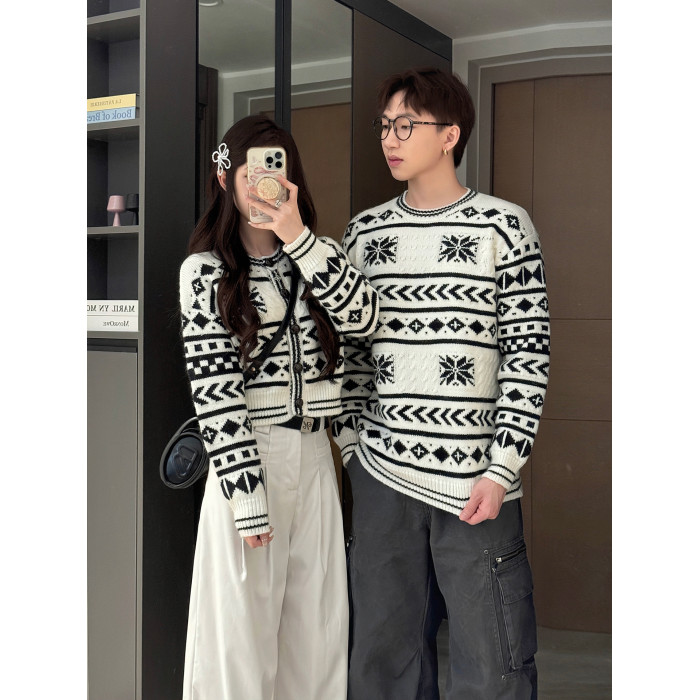 費爾島毛衣情侶裝秋冬ins超火小衆高級感聖誕針織衫一長一短上衣