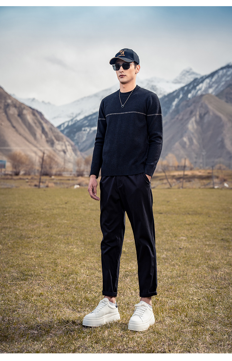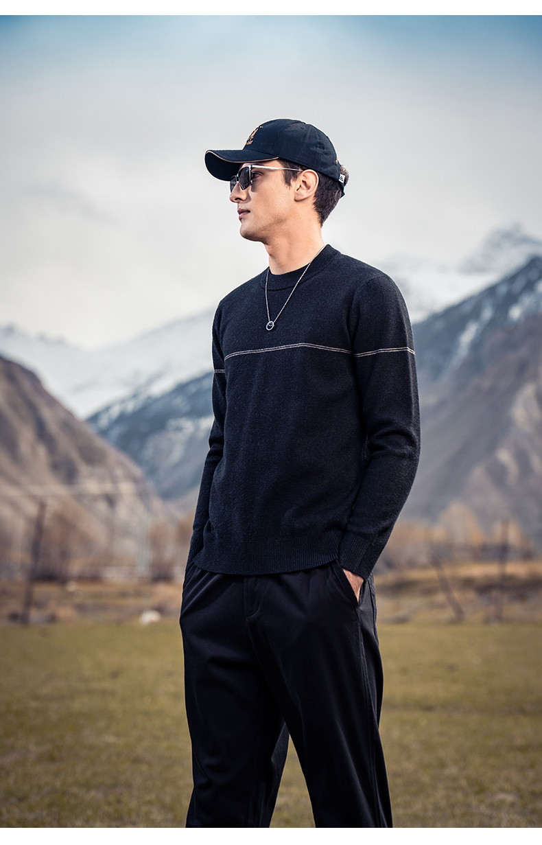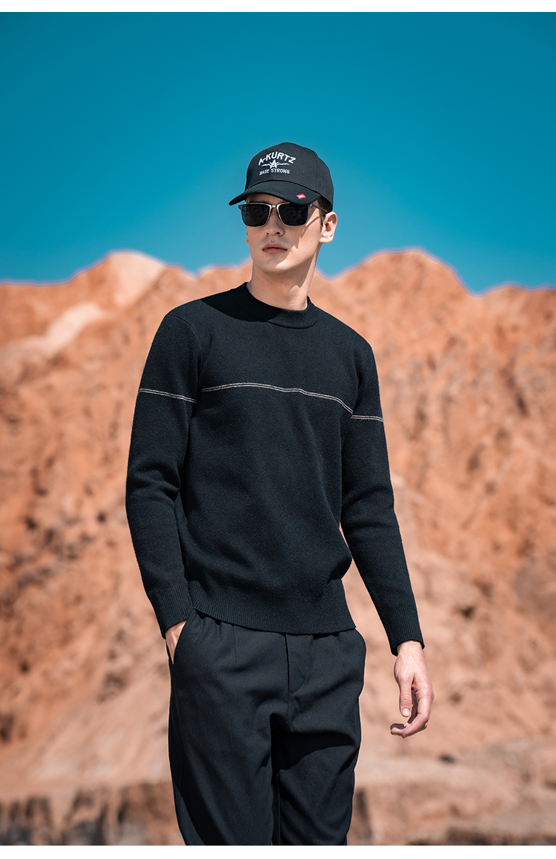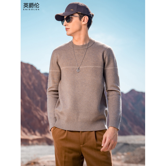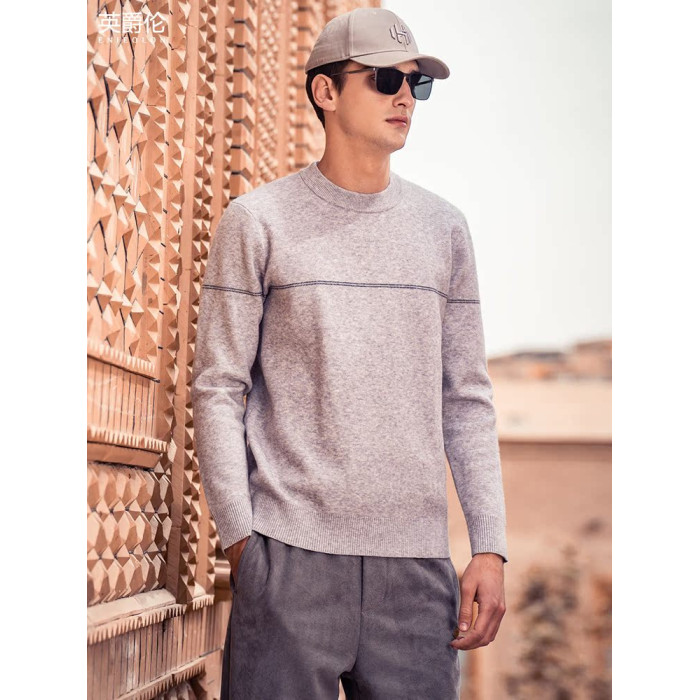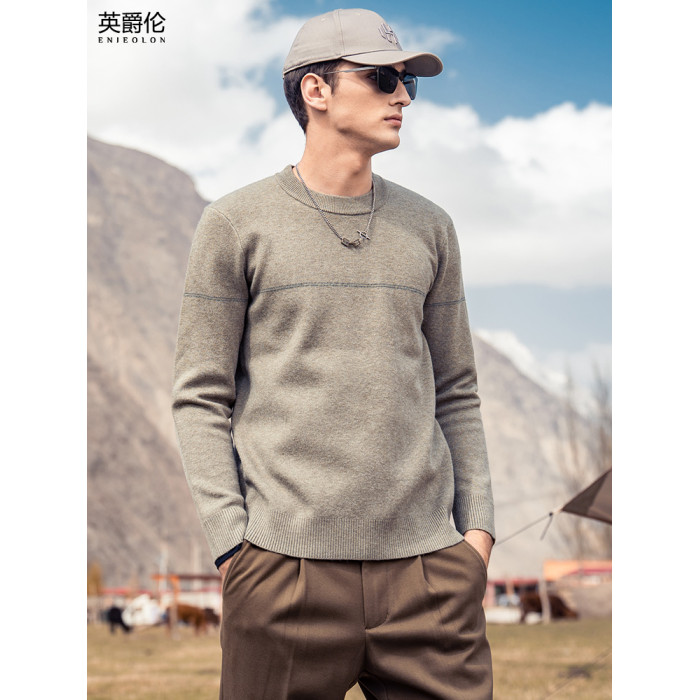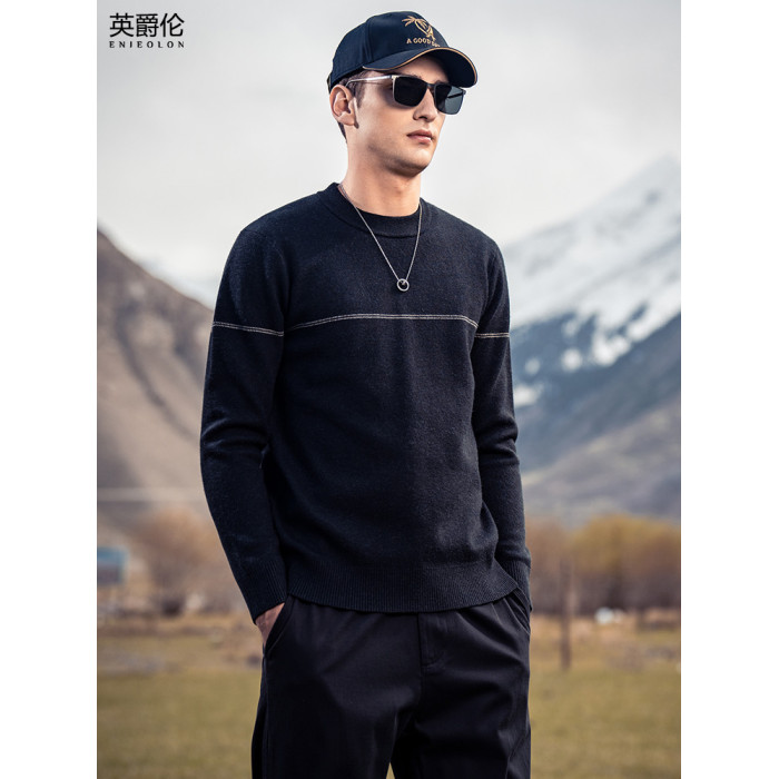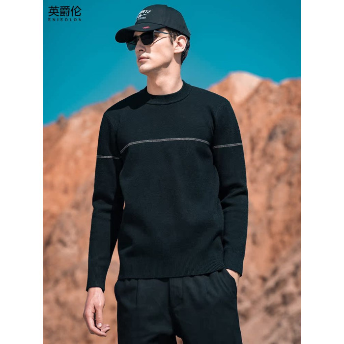 英爵倫 高級感線條提花 男士針織衫秋冬季毛衣青年線衣內搭打底衫