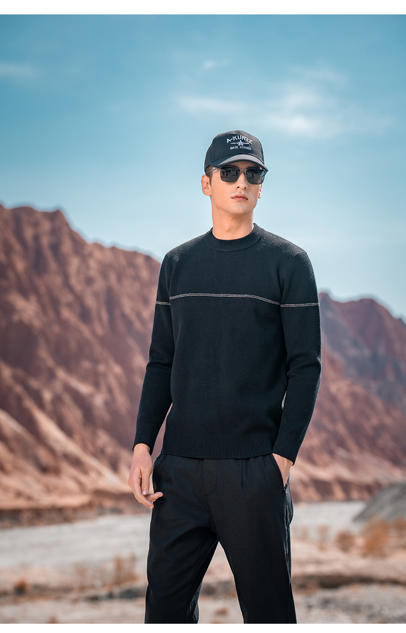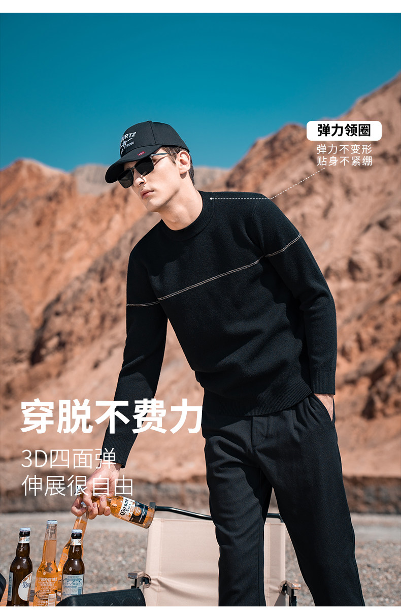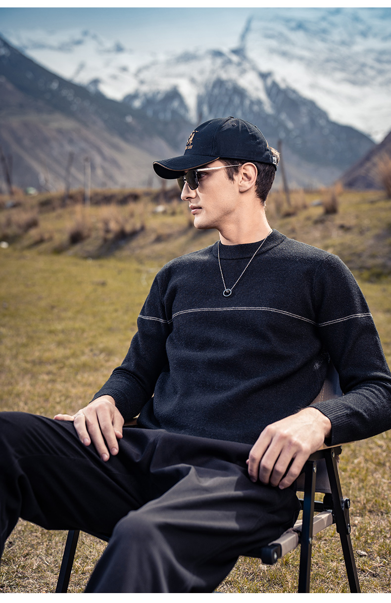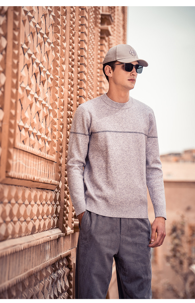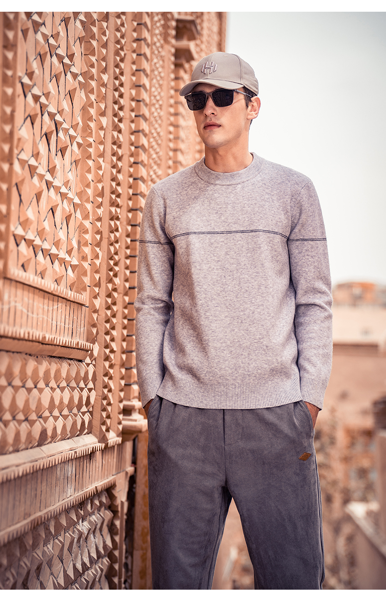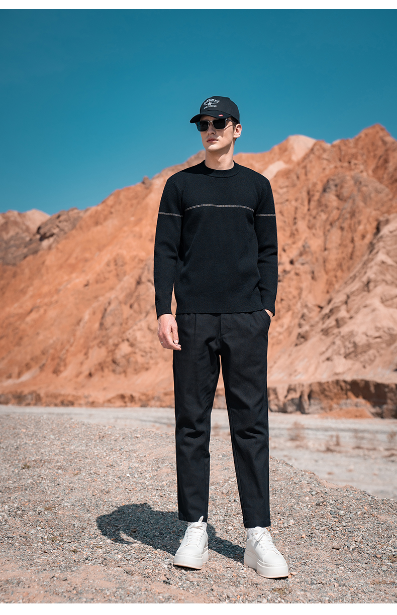 英爵倫 高級感線條提花 男士針織衫秋冬季毛衣青年線衣內搭打底衫