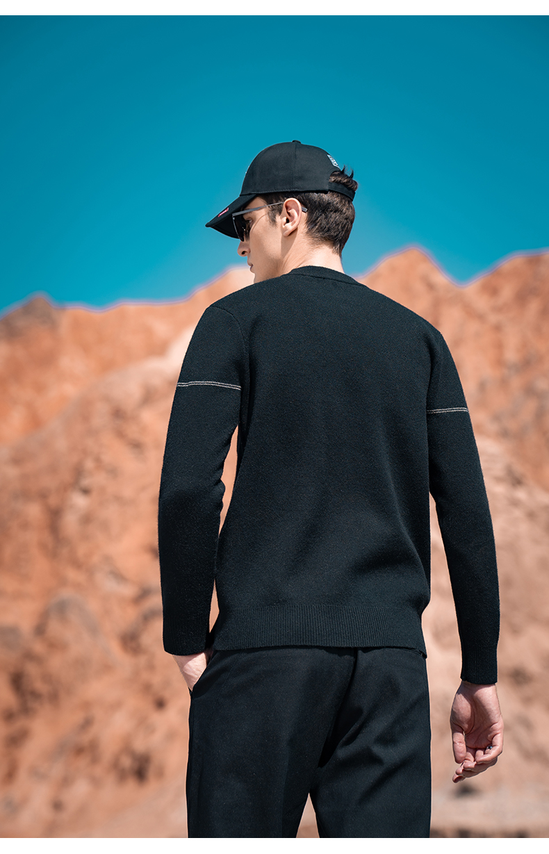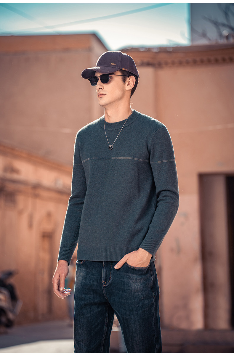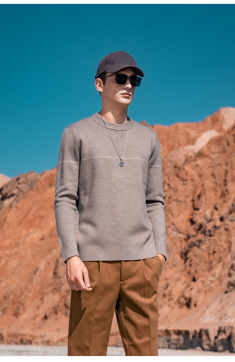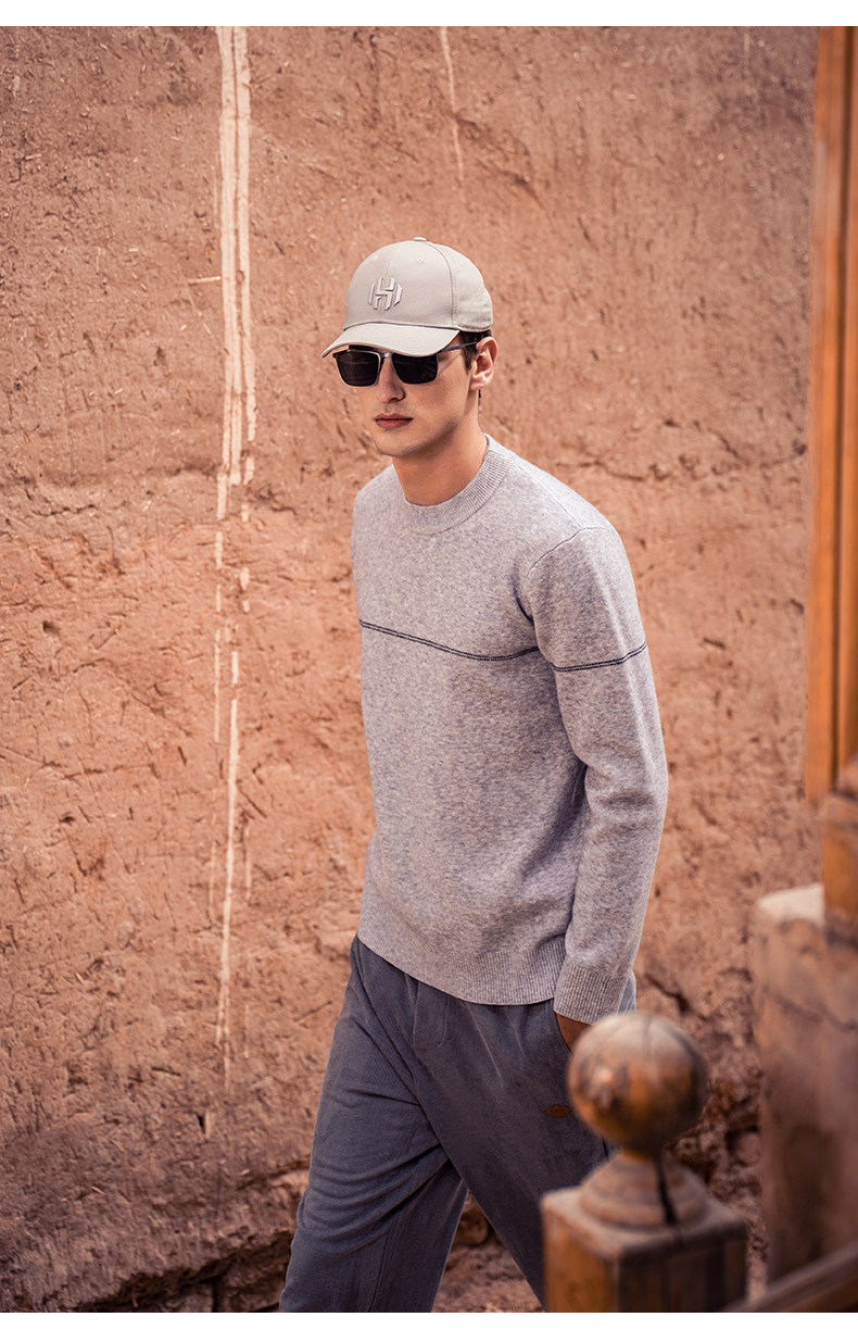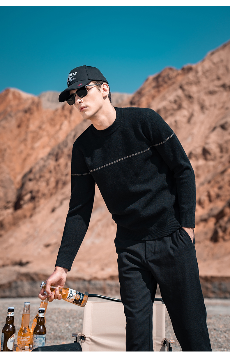 英爵倫 高級感線條提花 男士針織衫秋冬季毛衣青年線衣內搭打底衫