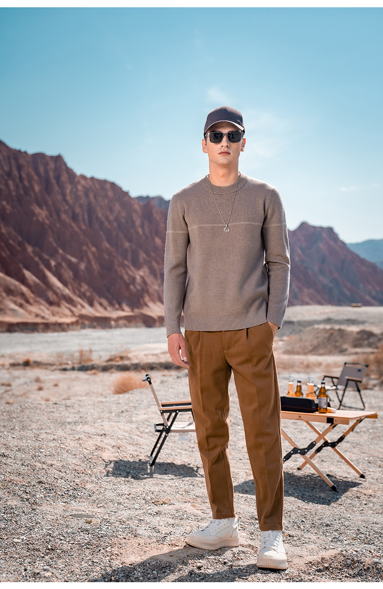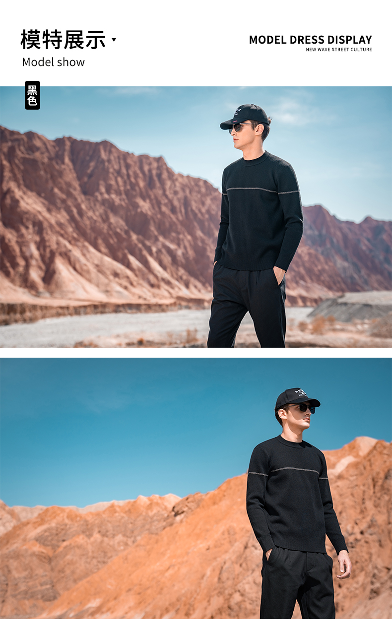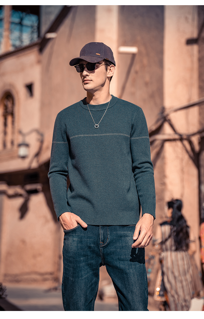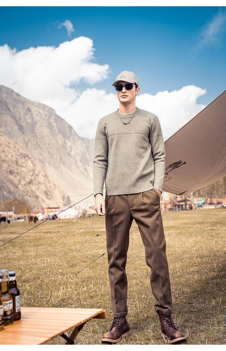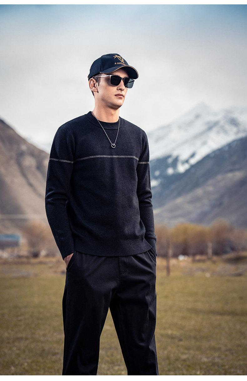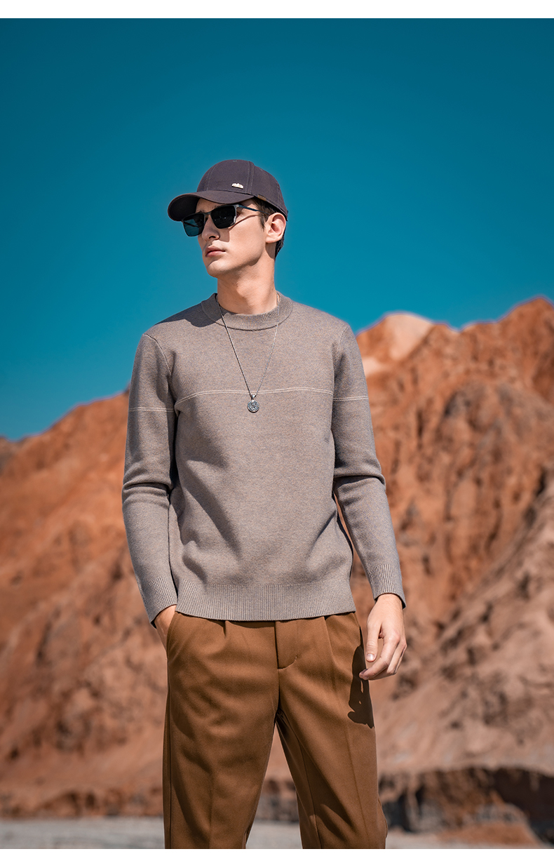 英爵倫 高級感線條提花 男士針織衫秋冬季毛衣青年線衣內搭打底衫